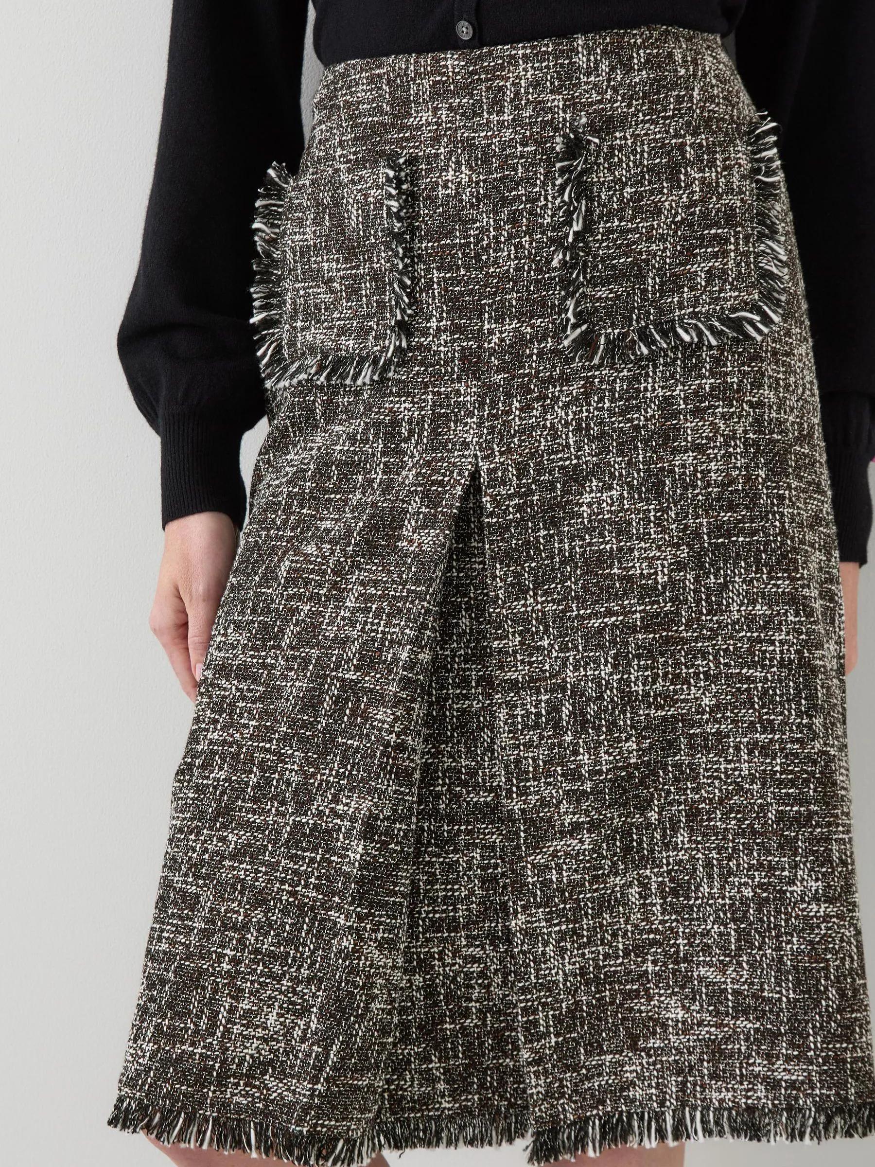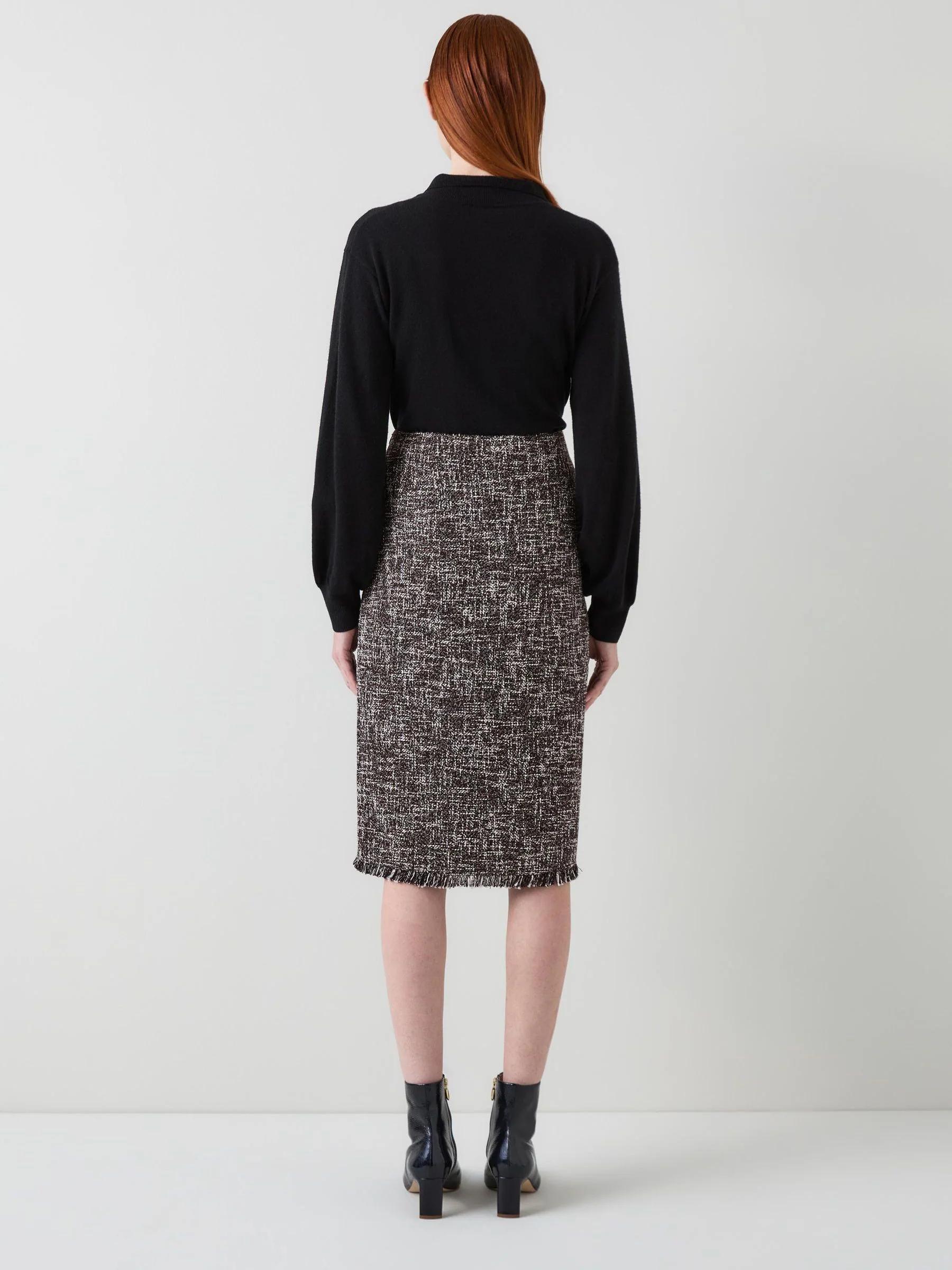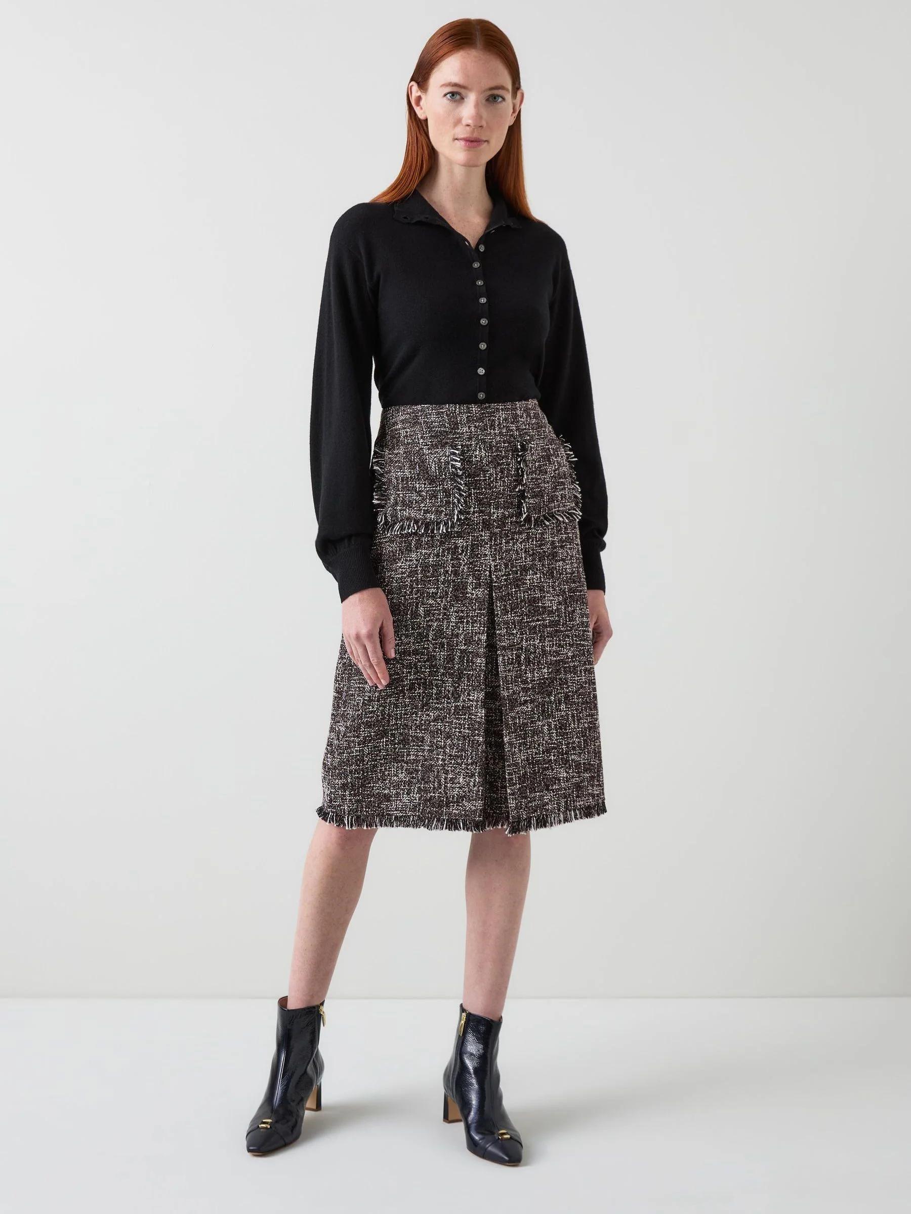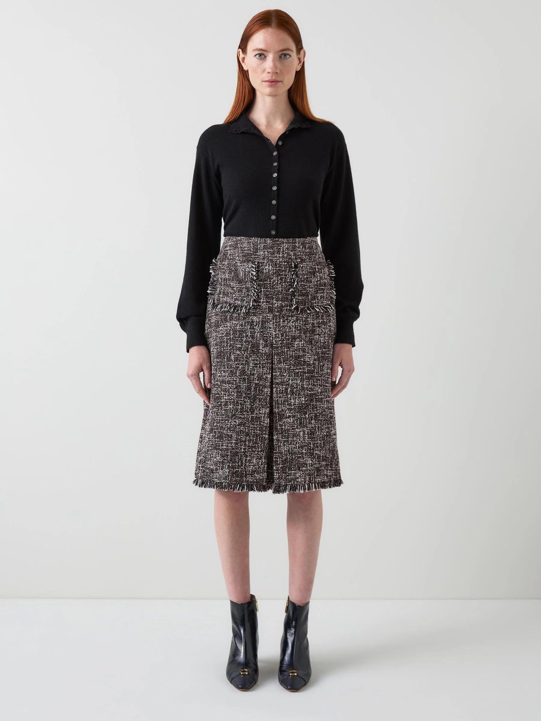 LK Bennett Red Gwen Tweed Cotton Midi Skirt