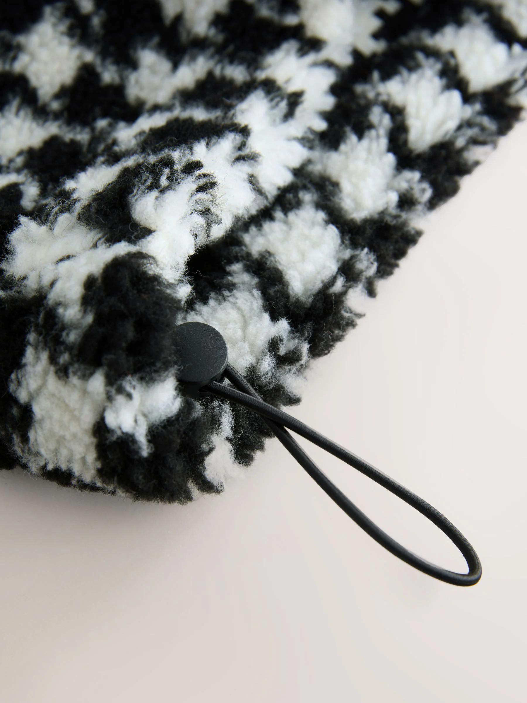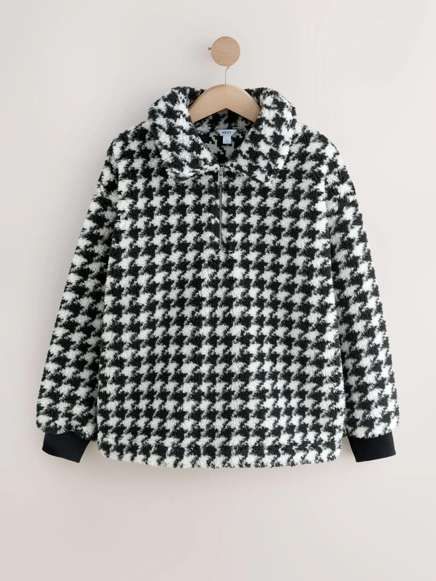 Black/White Houndstooth Check Jacquard Teddy Borg Quarter Zip Fleece Sweatshirt