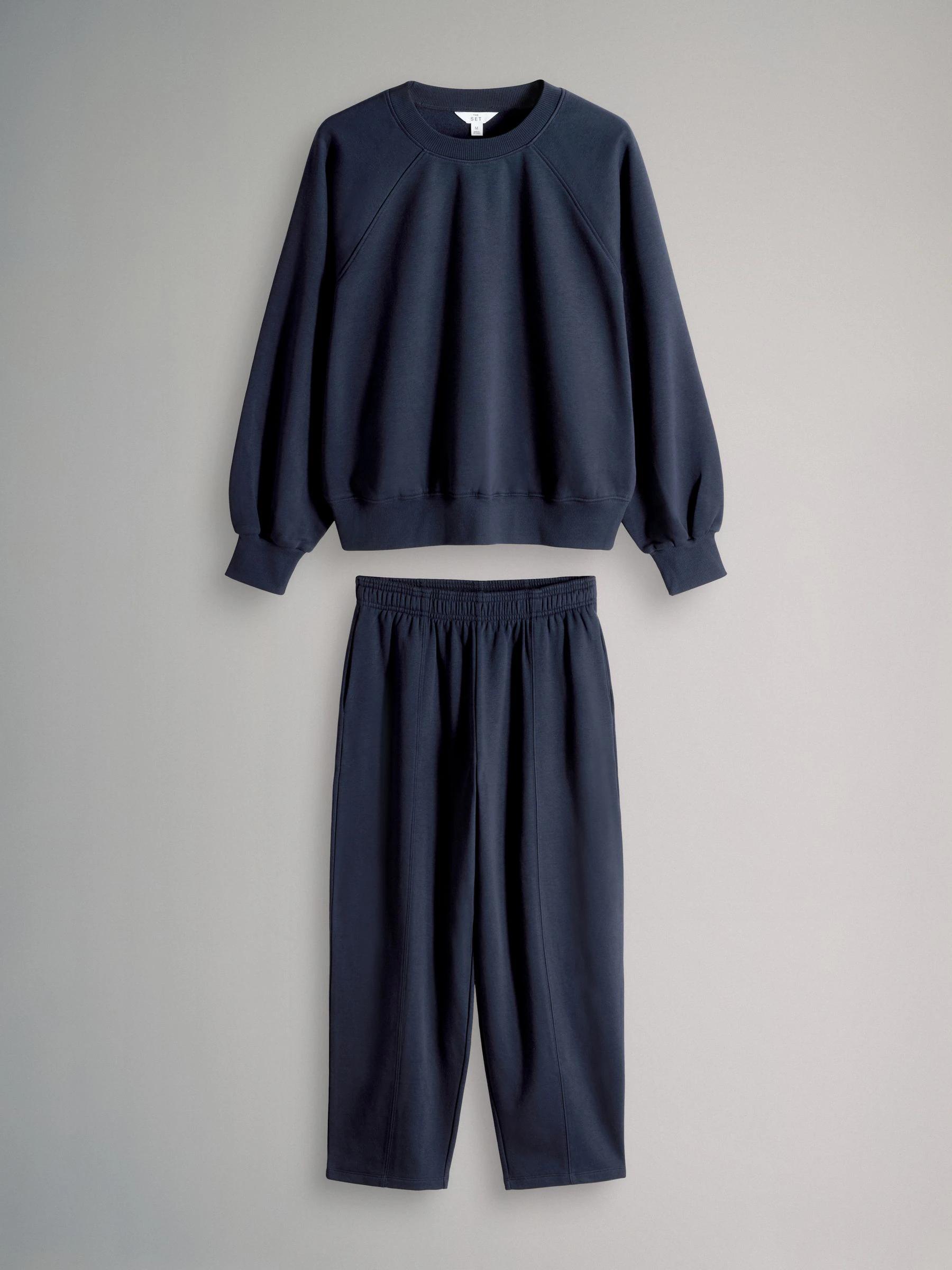 The Set Navy 2 Pack Raglan Crew Neck Sweatshirt And Barrel Leg Joggers Set