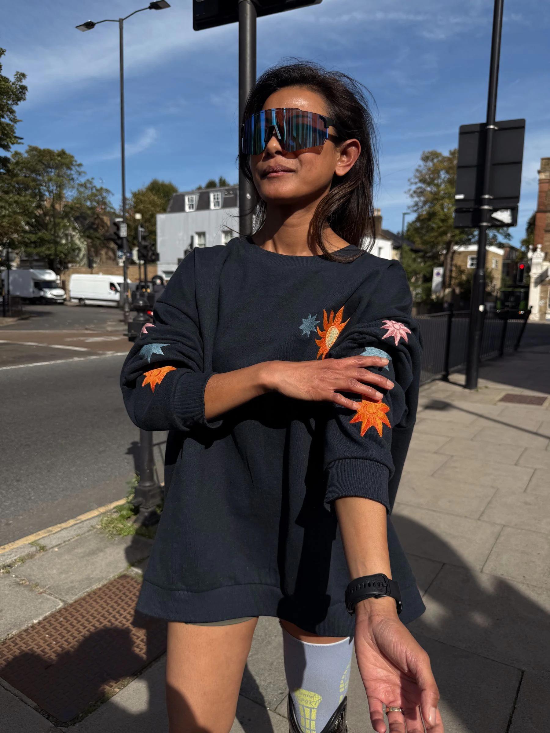 Never Fully Dressed Navy Embroidery Cotton Sweatshirt