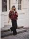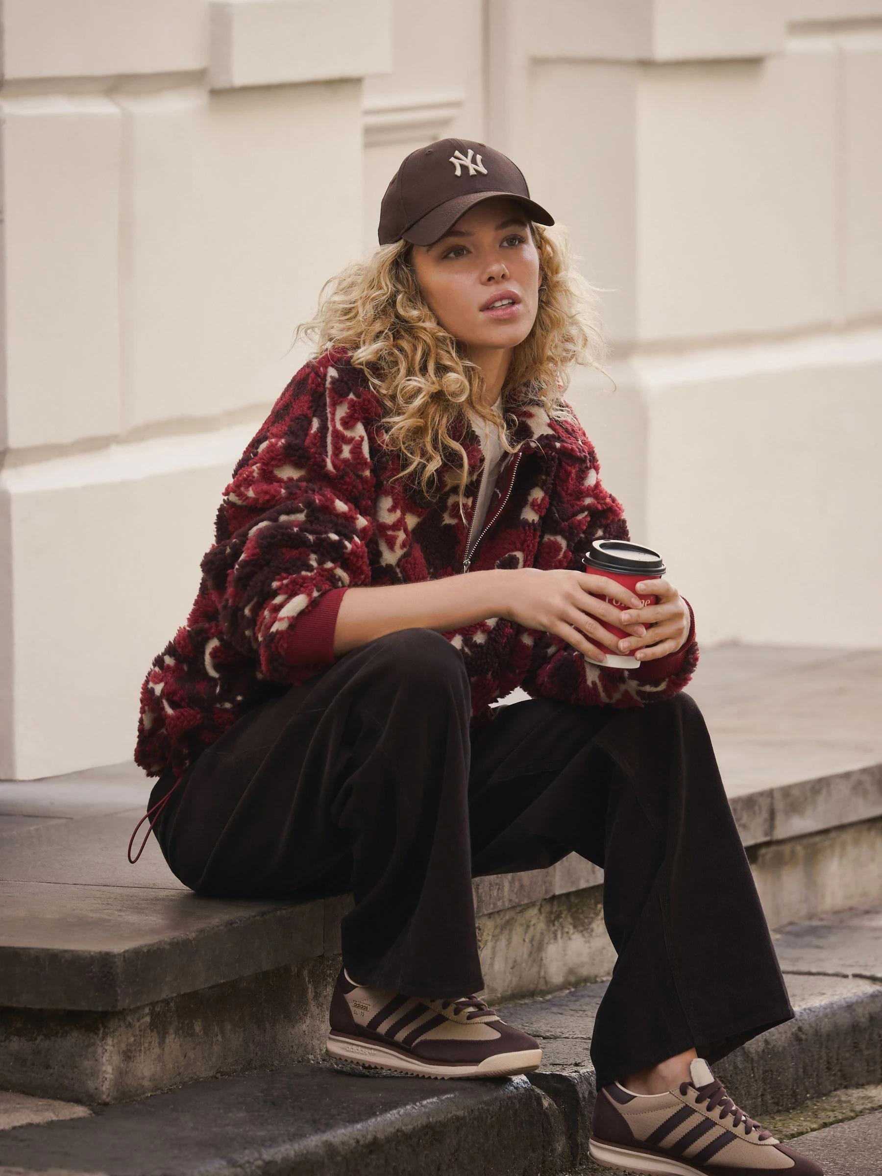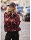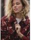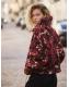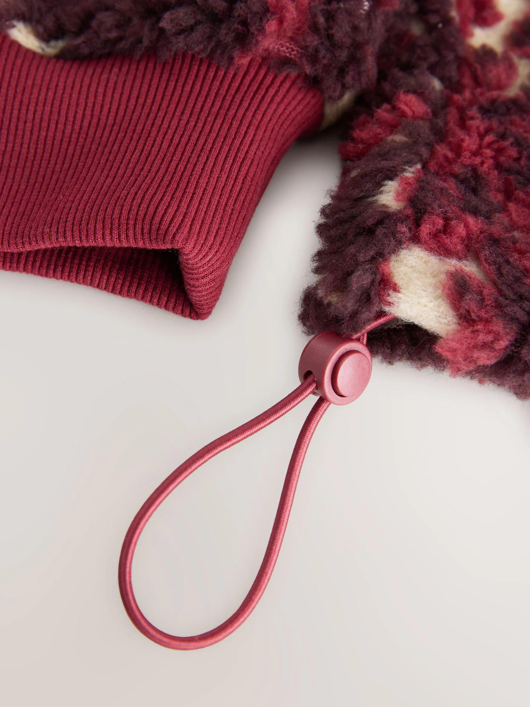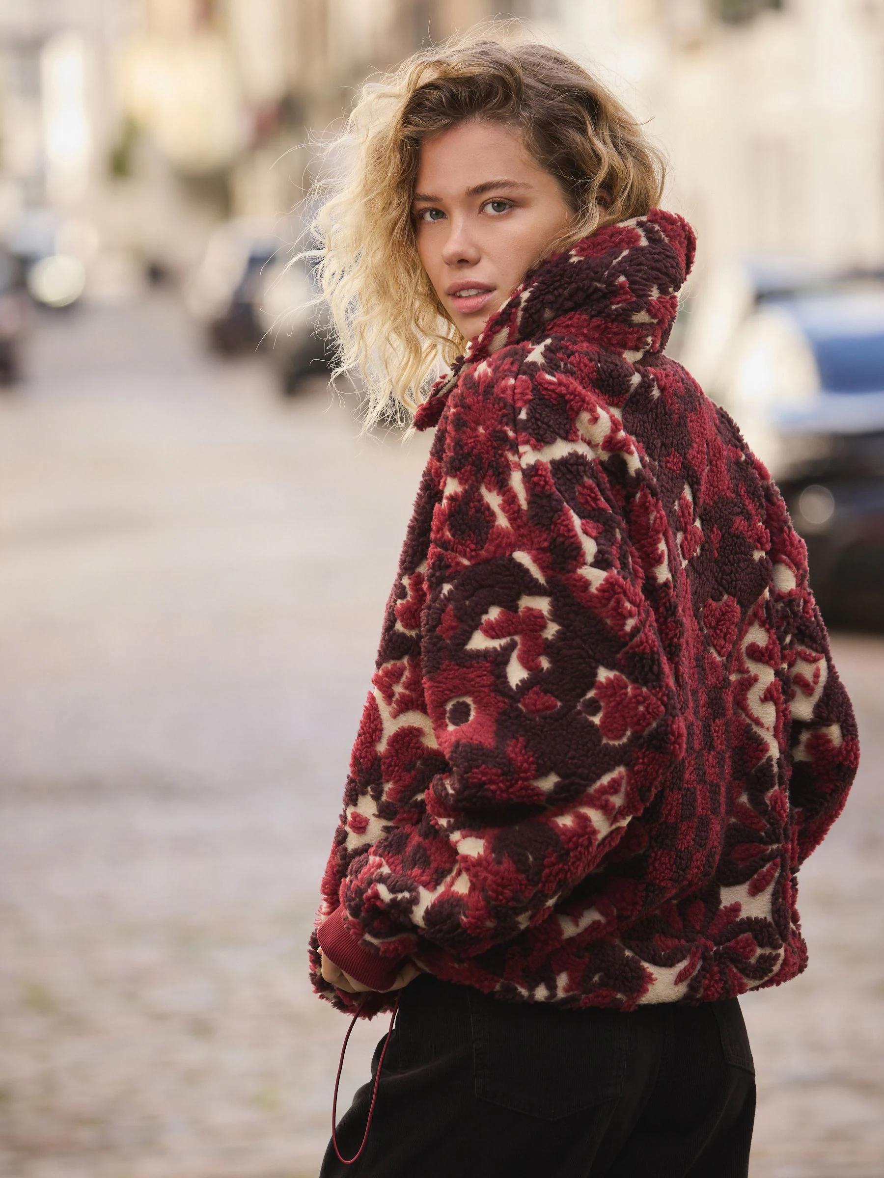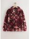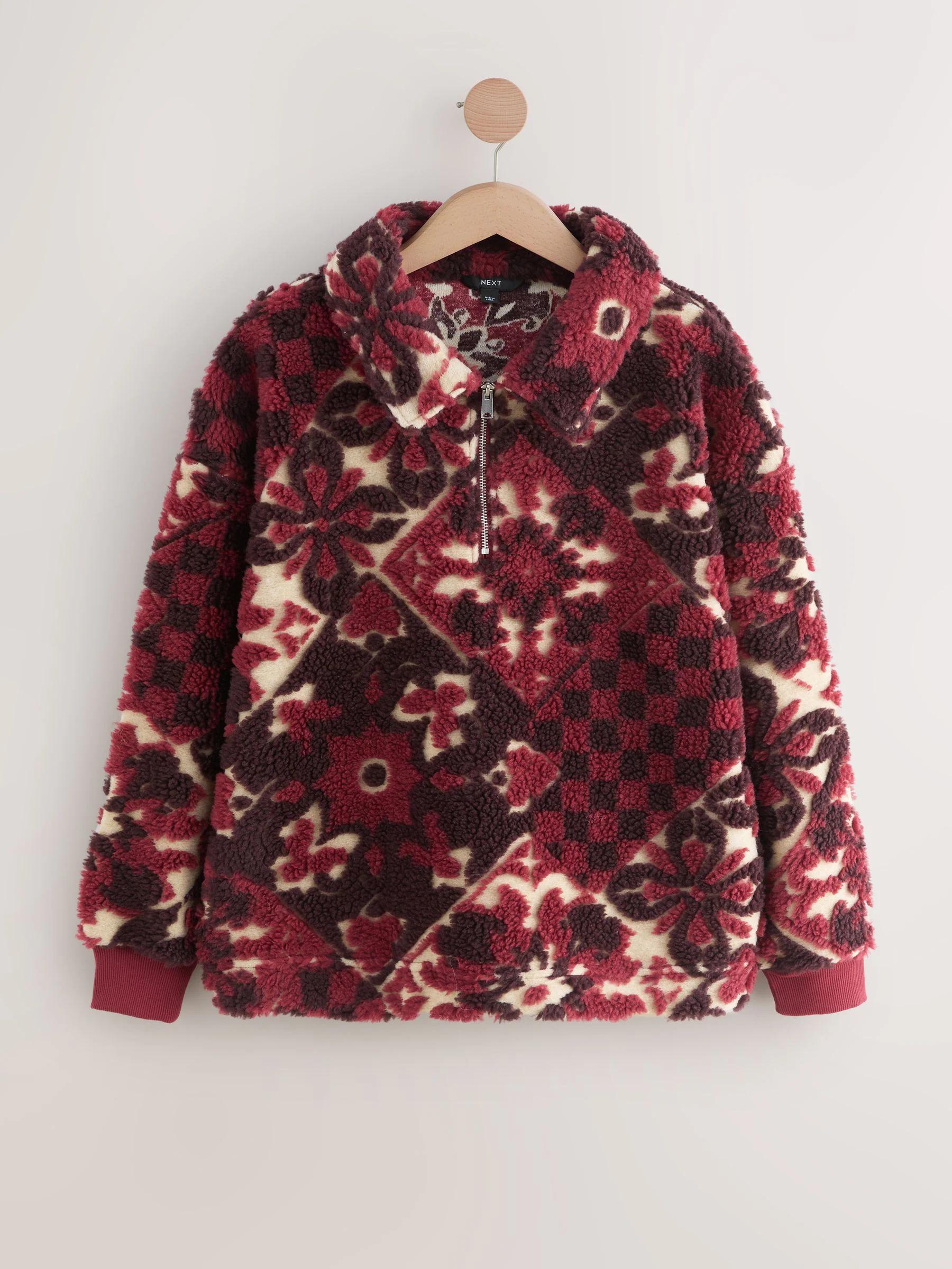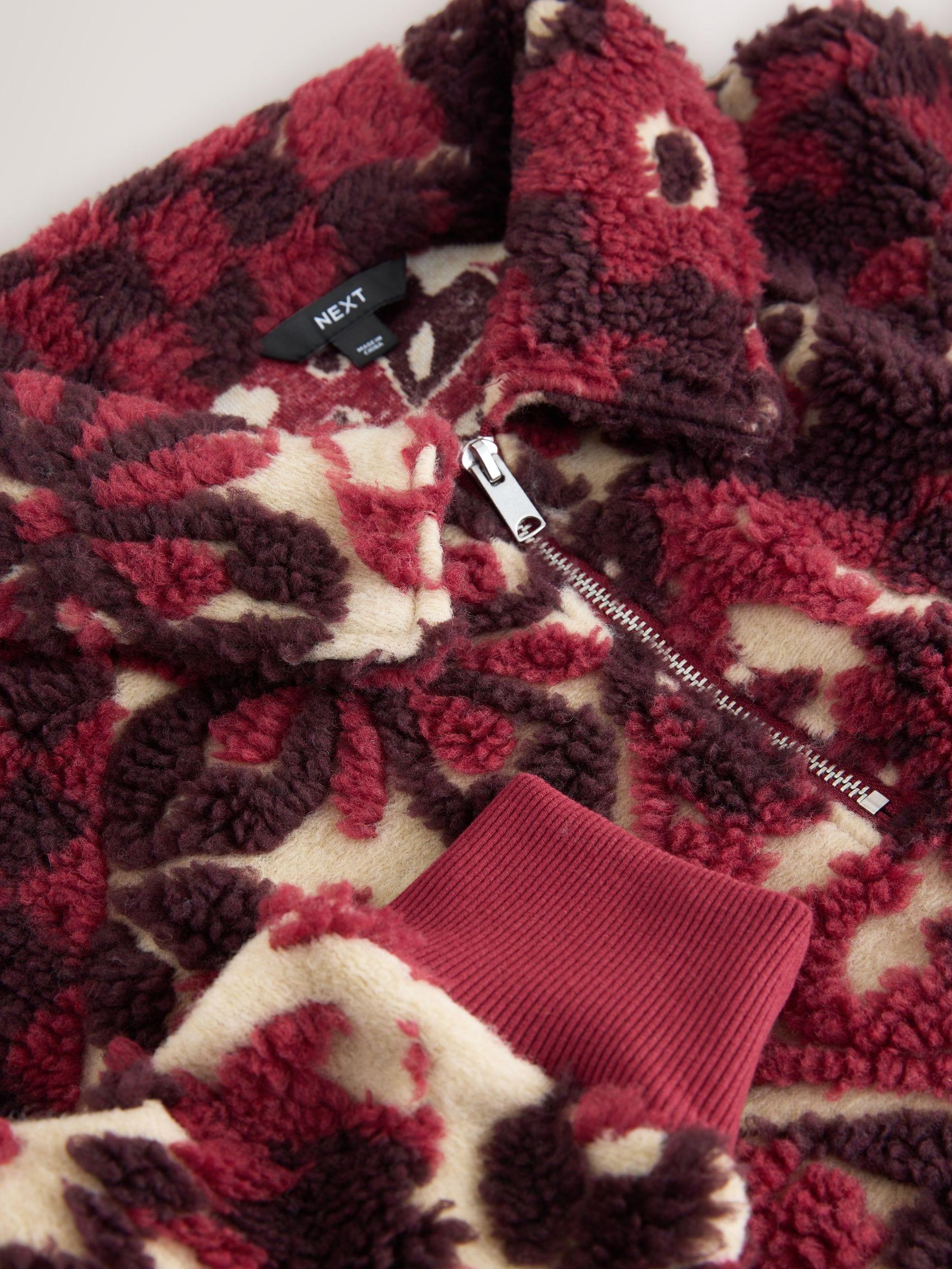 Burgundy Red Floral Jacquard Teddy Borg Quarter Zip Fleece Sweatshirt