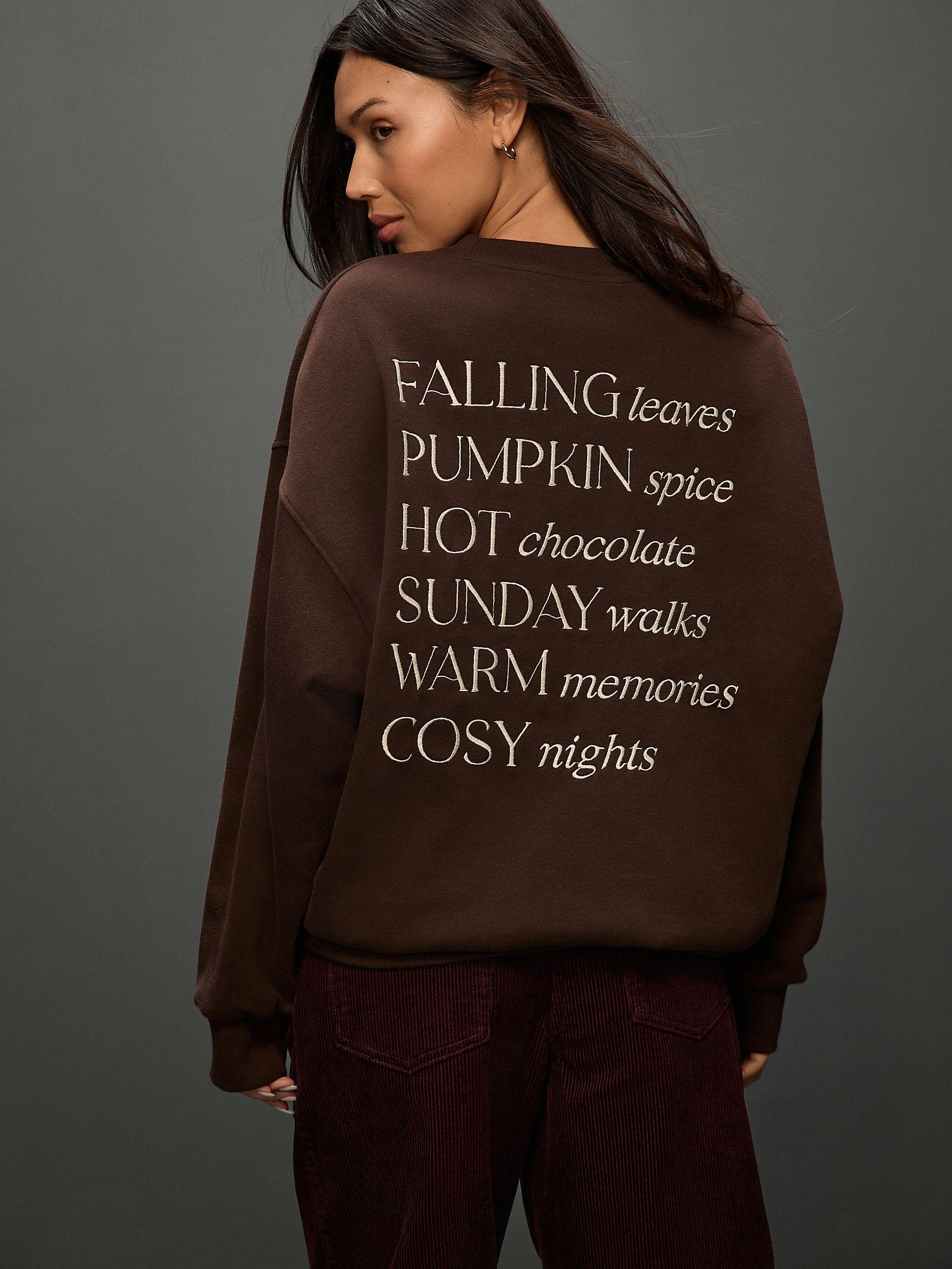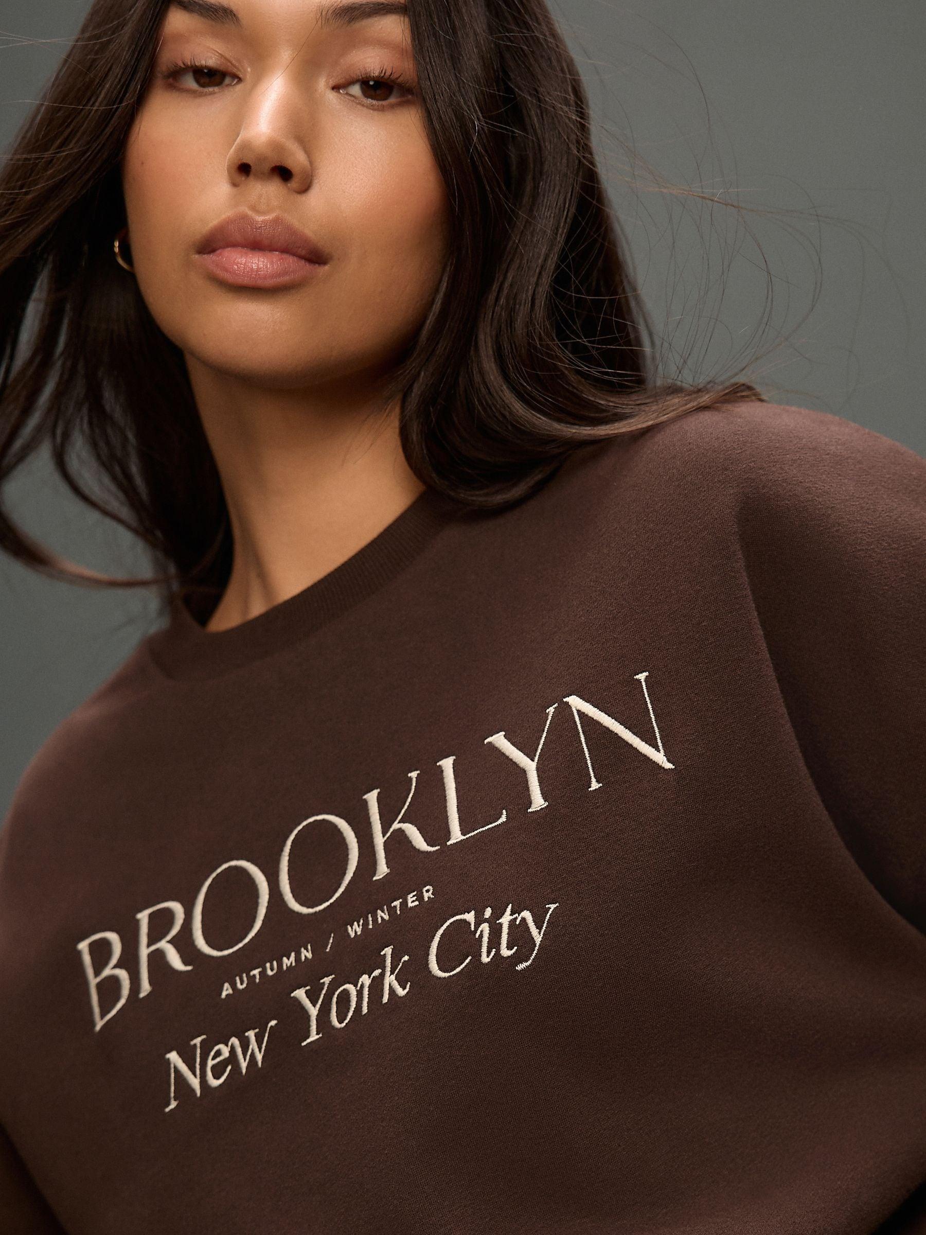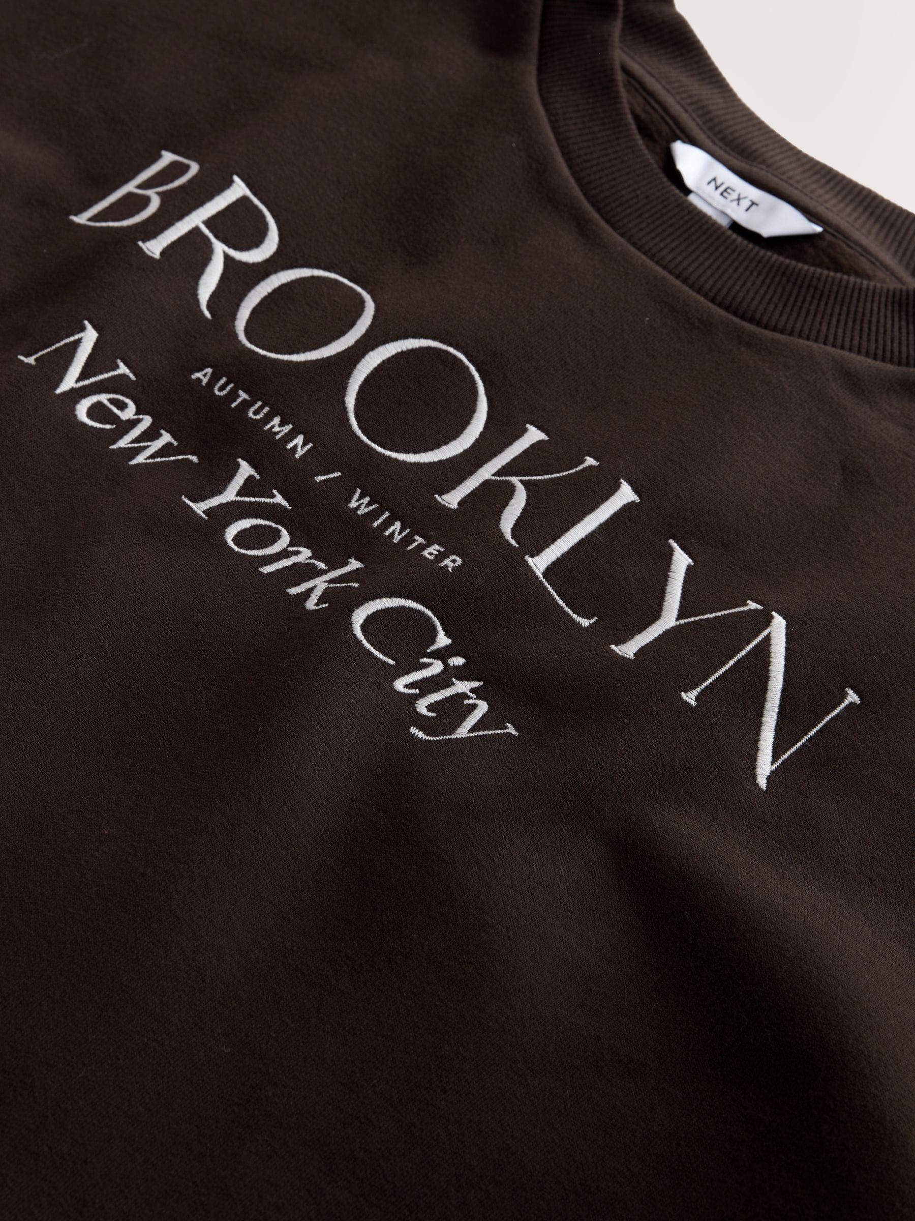 Chocolate Brown Autumnal NYC Embroidered Relaxed Fit Sweatshirt