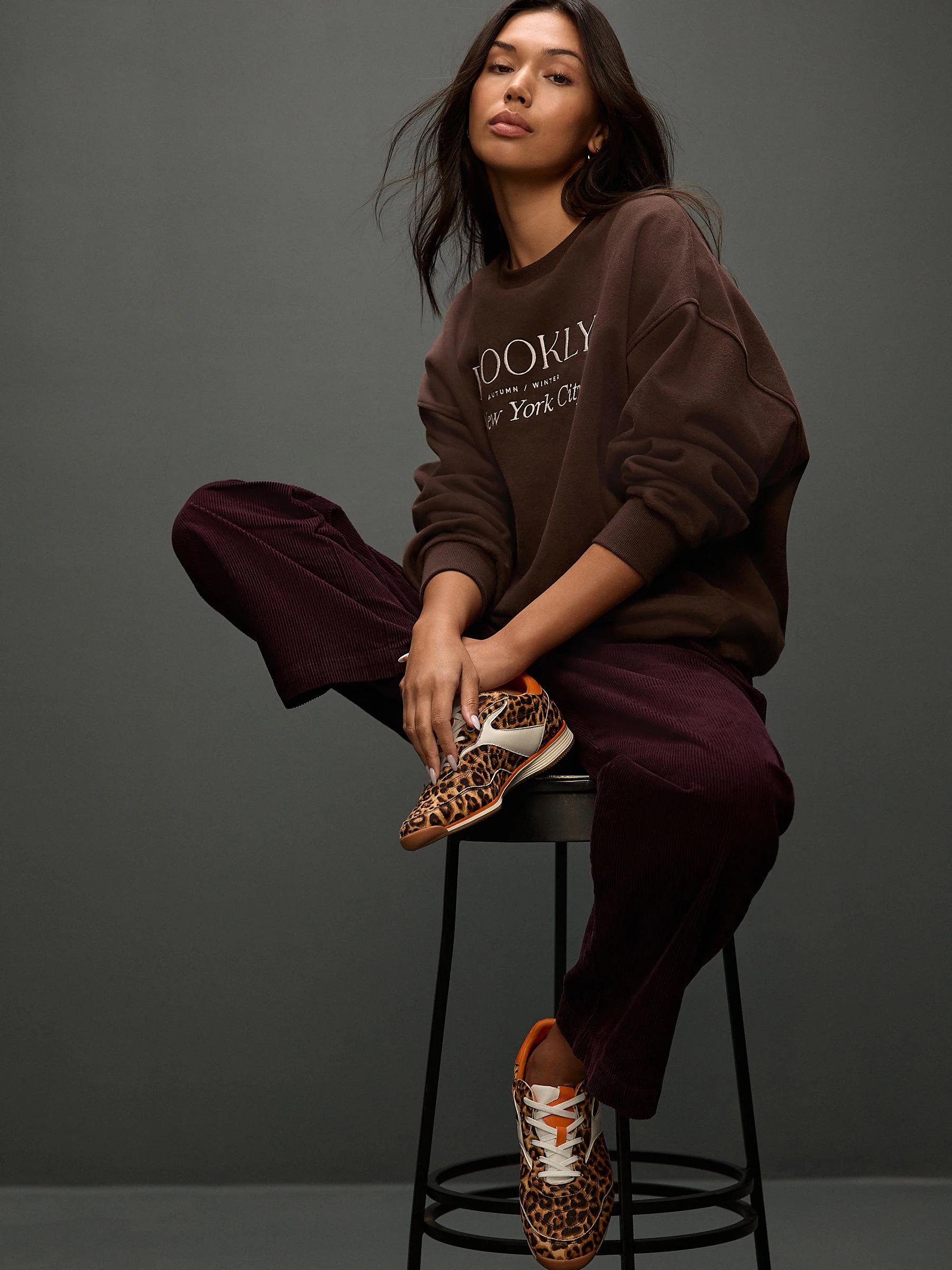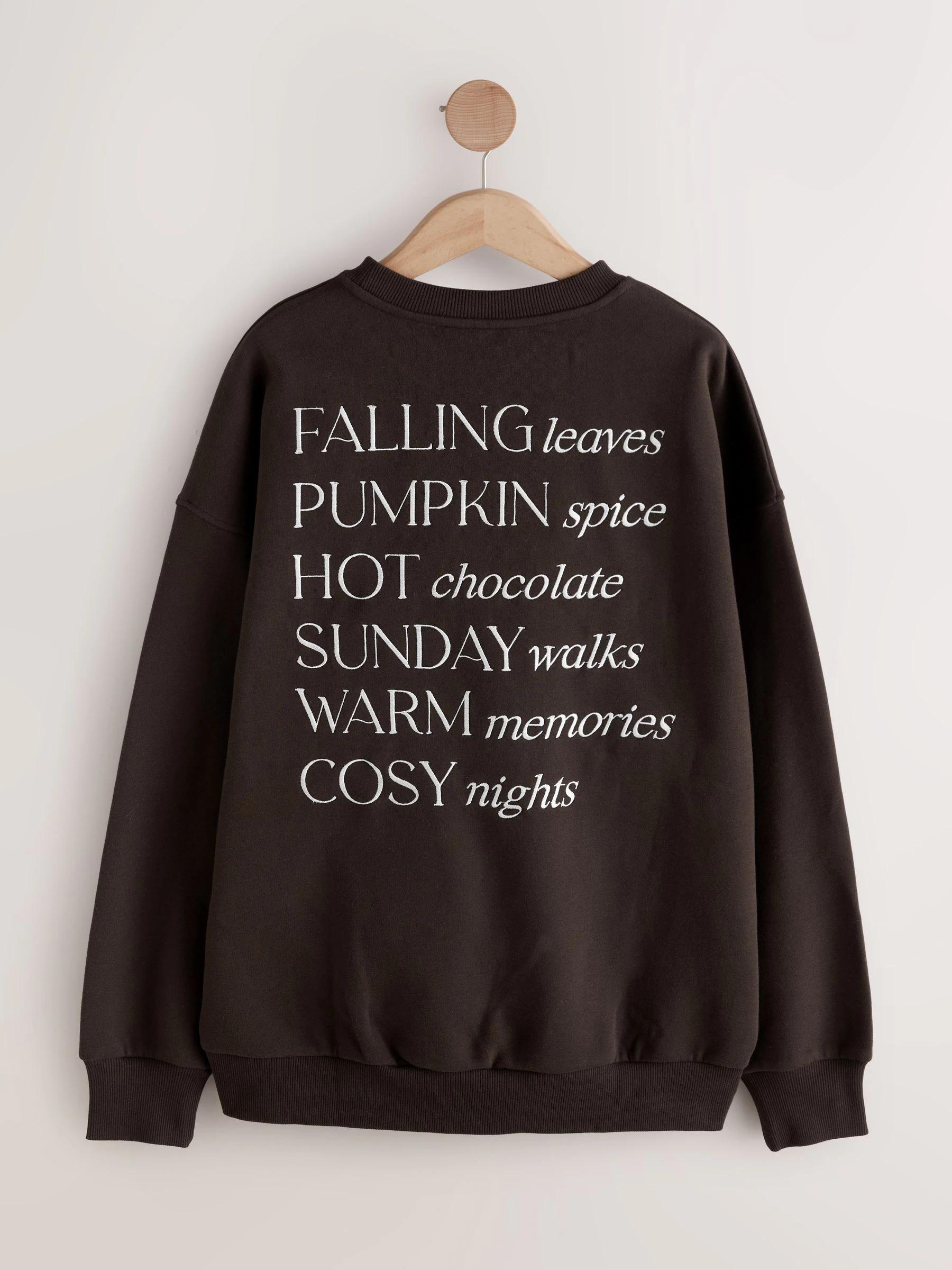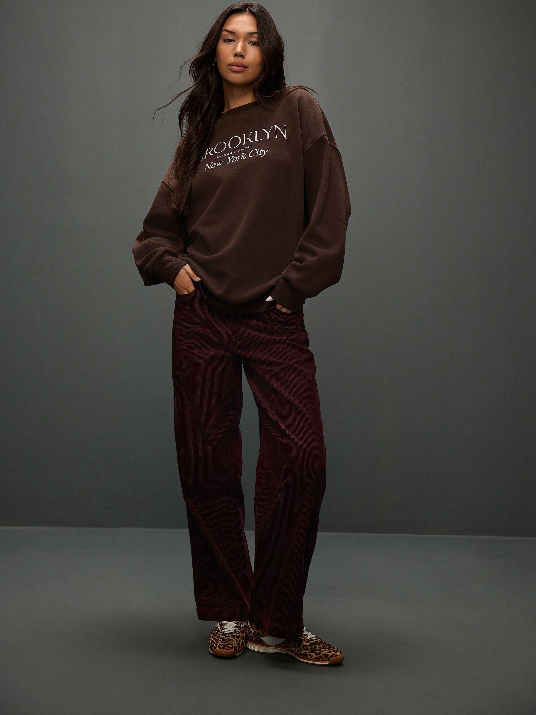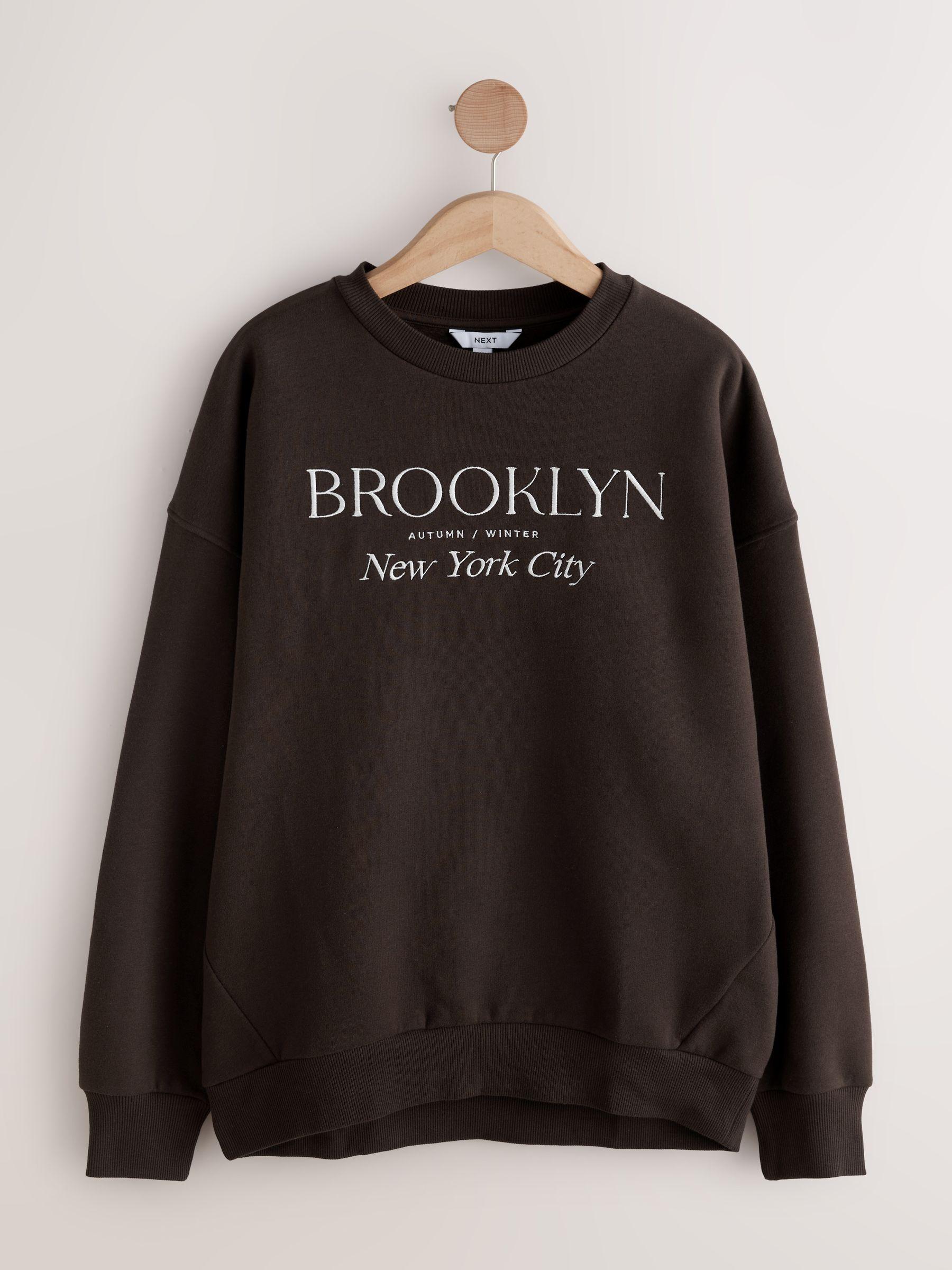 Chocolate Brown Autumnal NYC Embroidered Relaxed Fit Sweatshirt