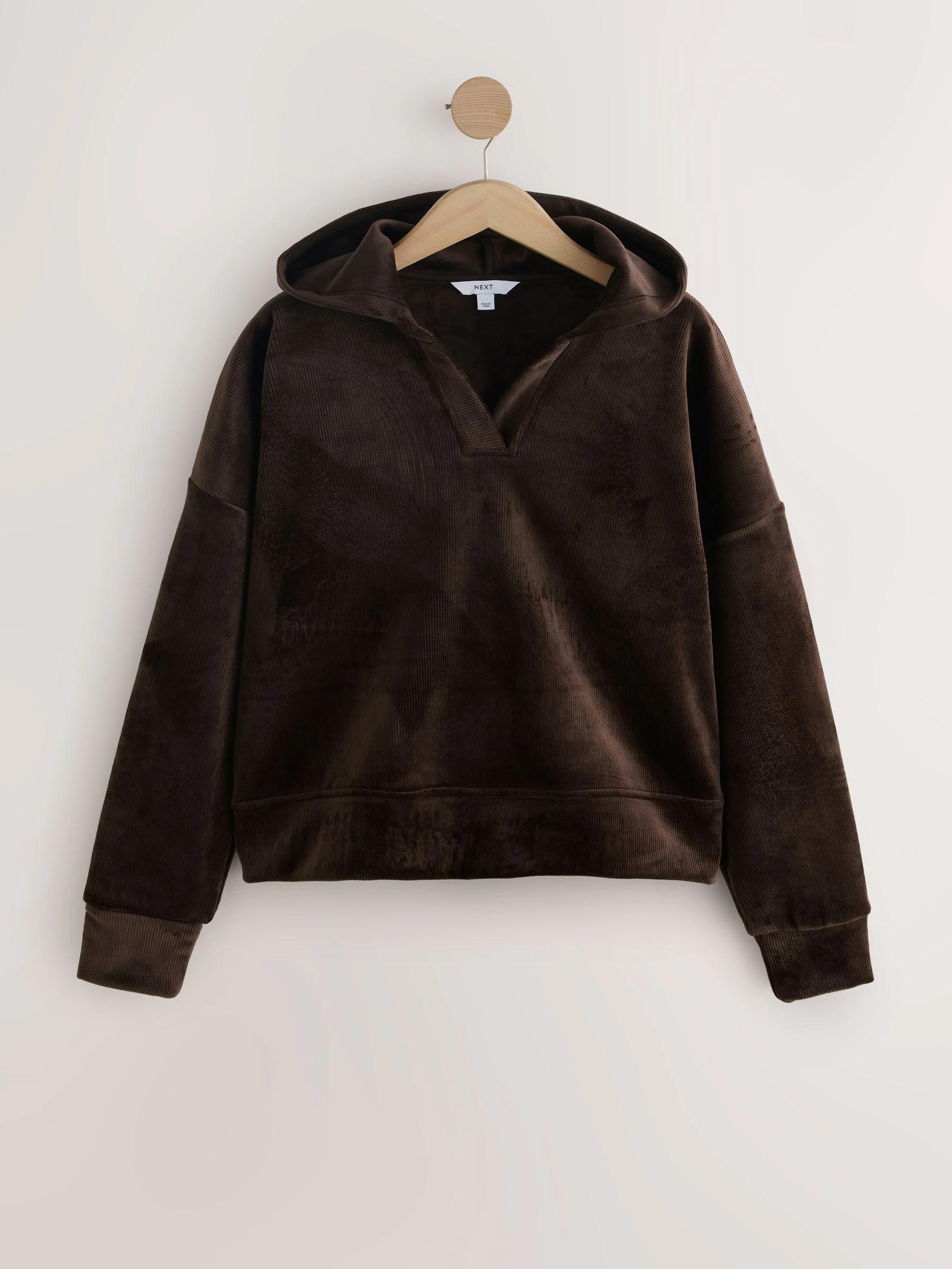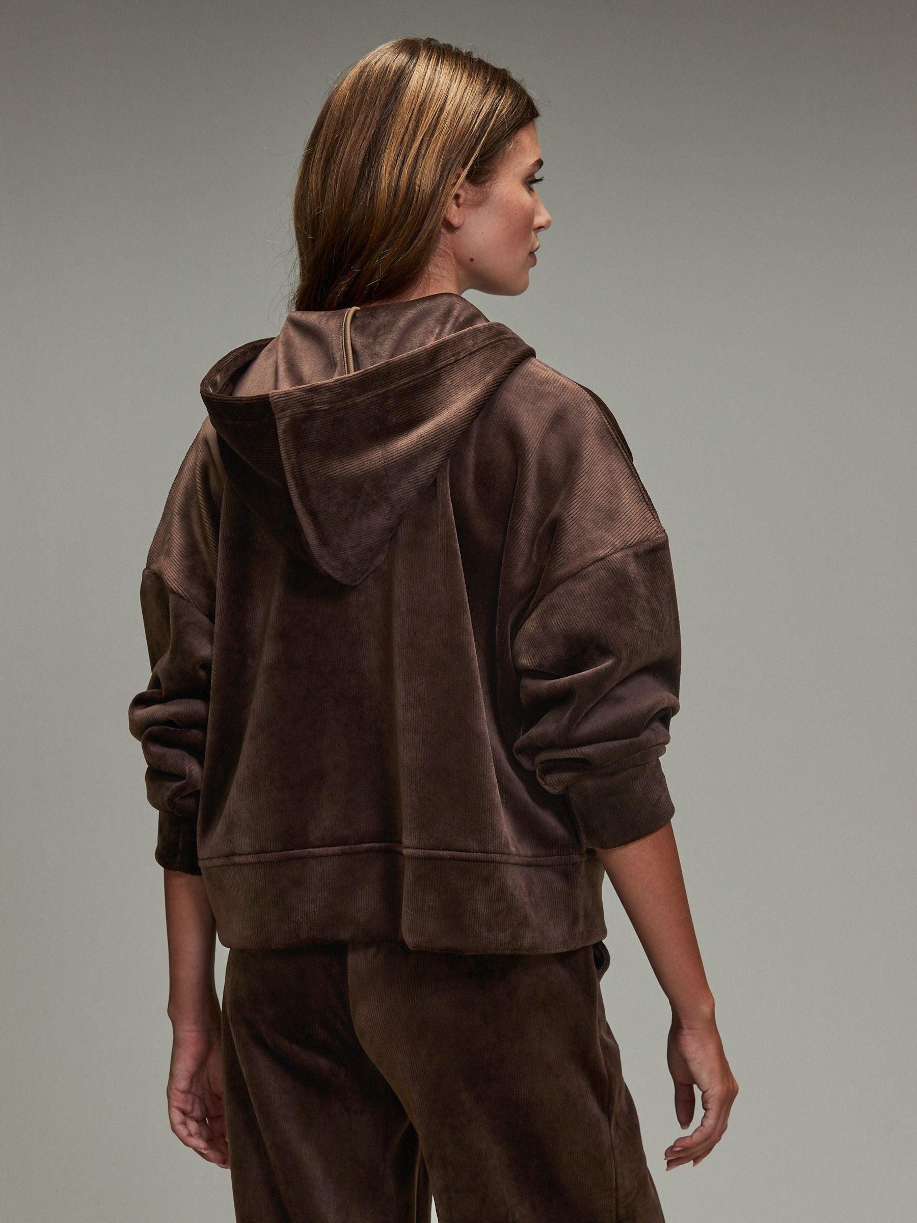 Chocolate Brown Soft Feel Cord Long Sleeve Hoodie