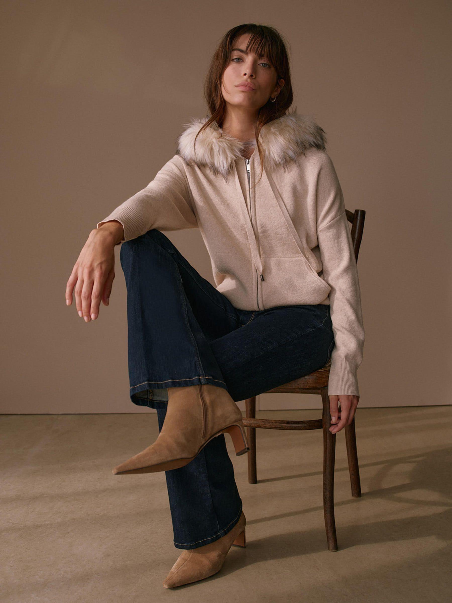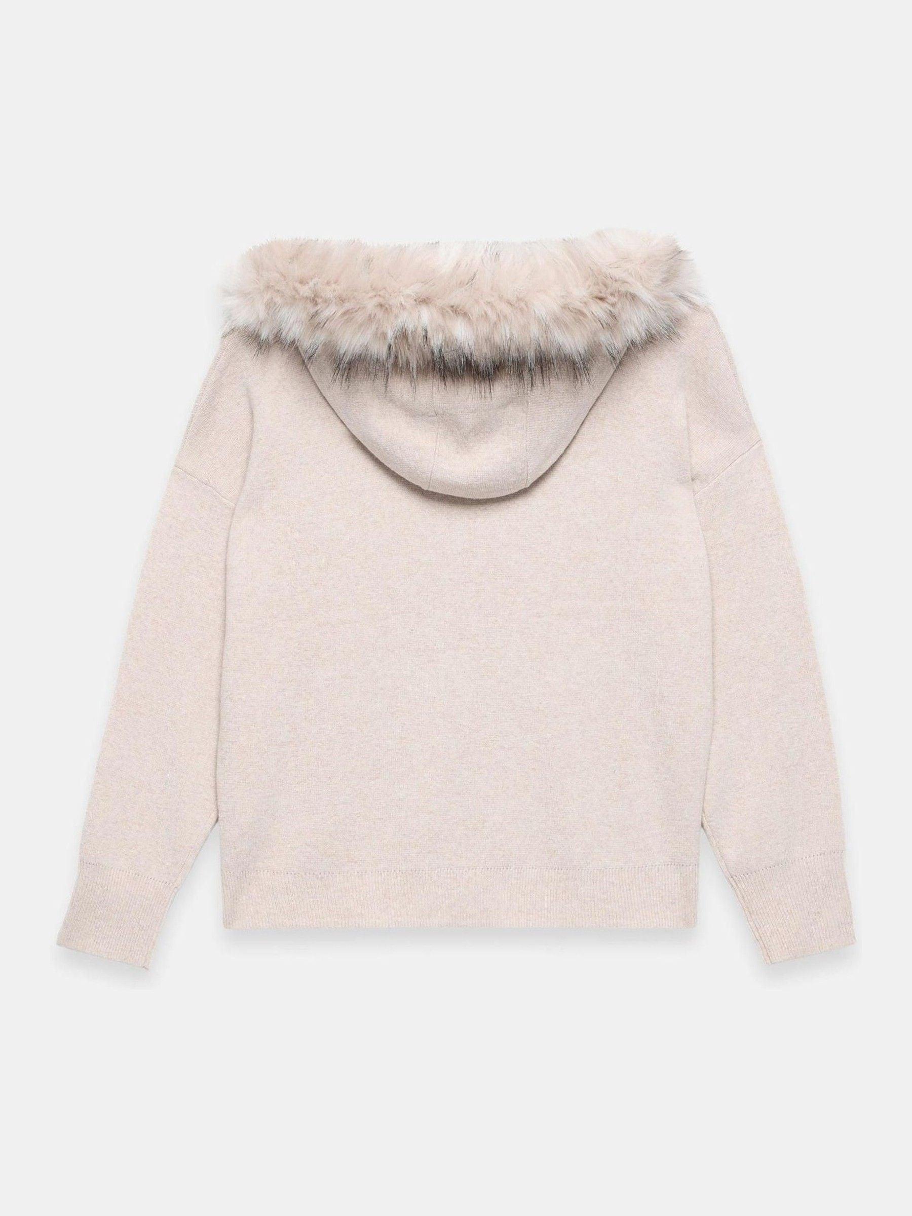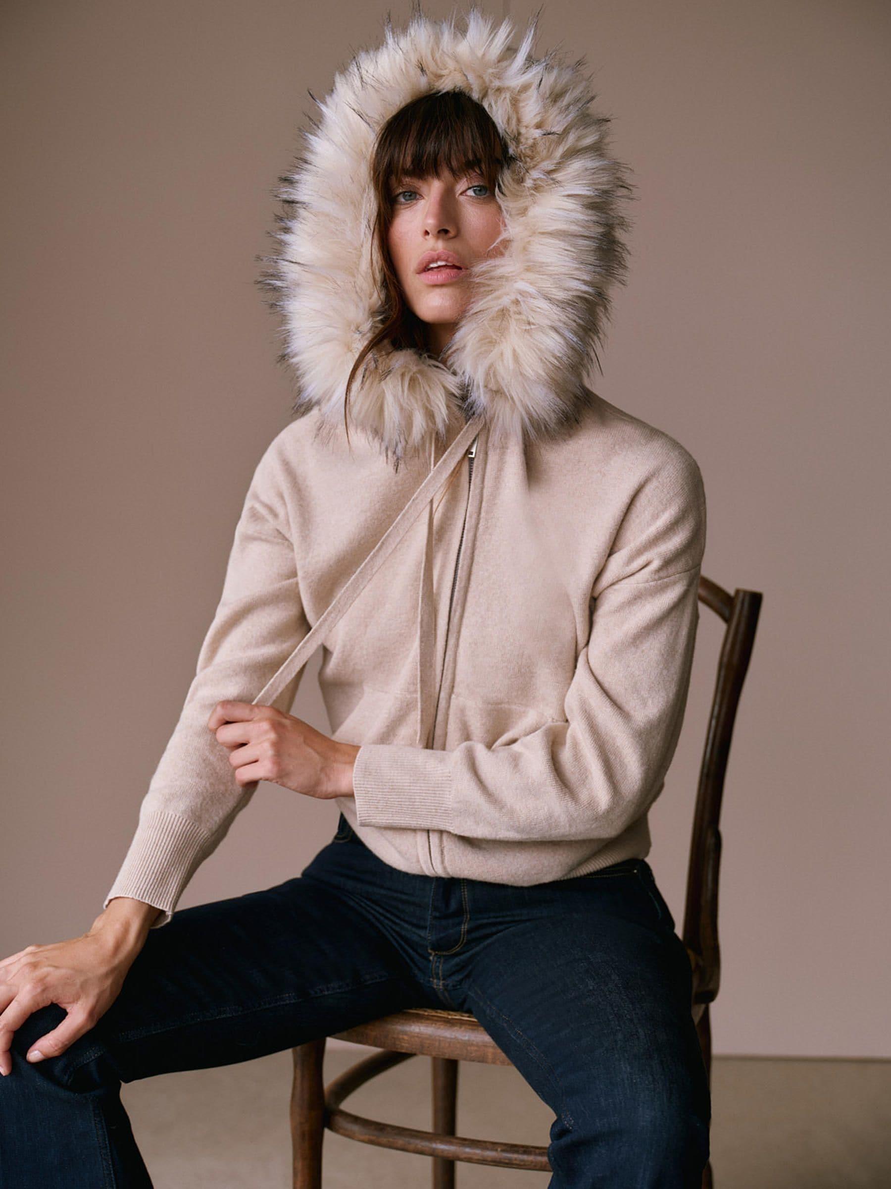 Mint Velvet Natural Faux Fur Trim Cotton Blend Hoodie