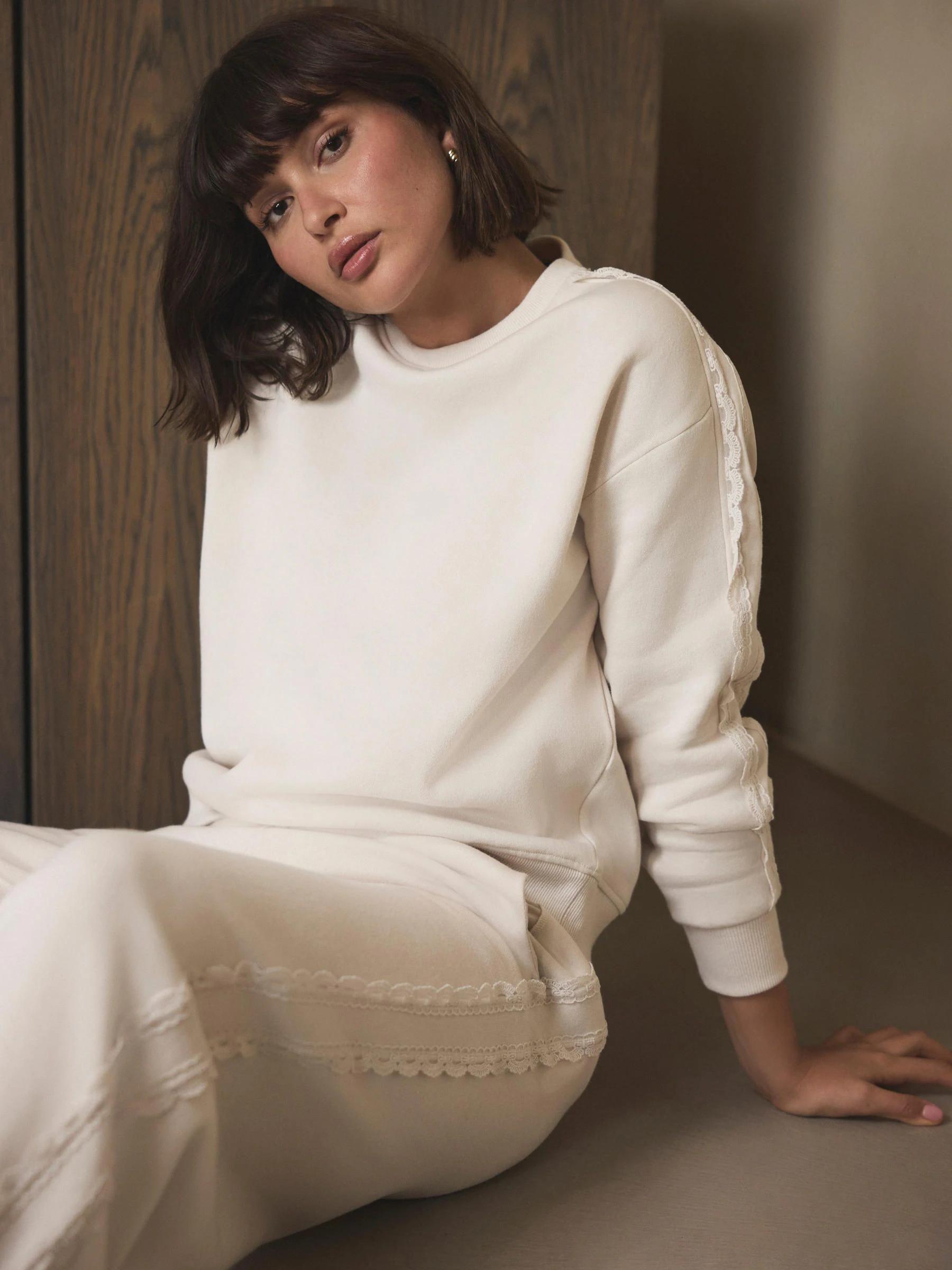 Mint Velvet Cream Cotton Lace Trim Sweatshirt
