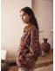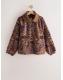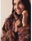 Tan Brown Floral Zip Neck Printed Fleece