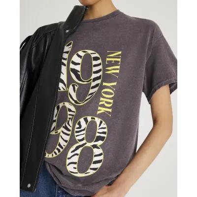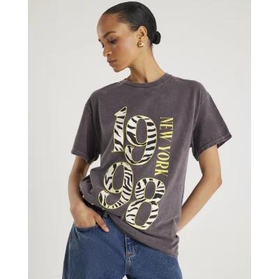 Grey Short Sleeve Zebra Print 1998 T-shirt