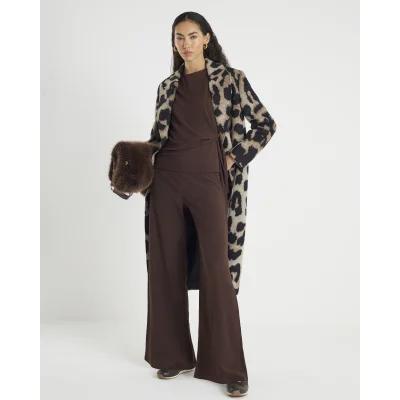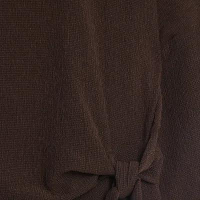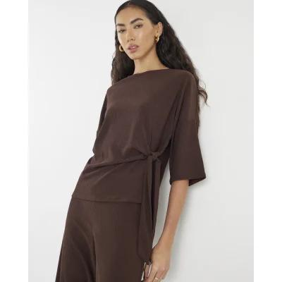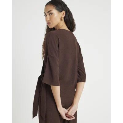 Brown Textured Tie Front T-shirt