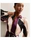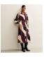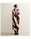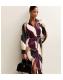 Brown Geometric Print Satin Tie Waist Shirt Dress