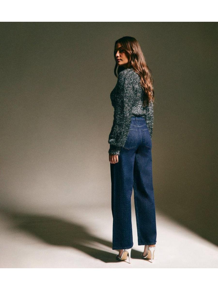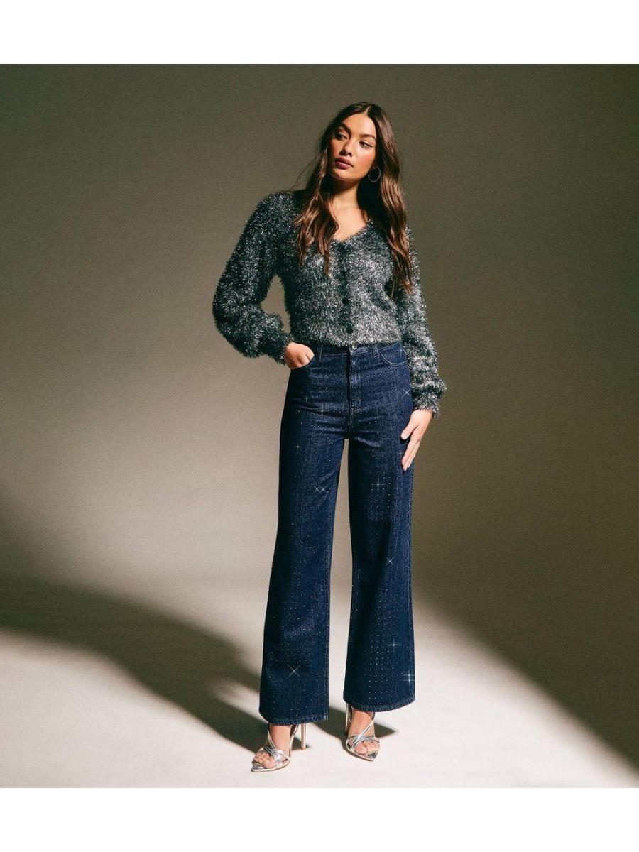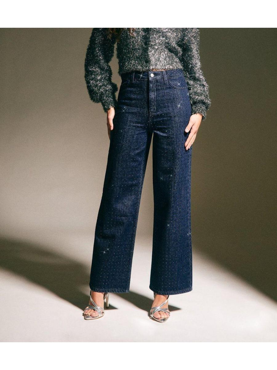 Blue Diamanté Embellished Wide Leg Jeans
