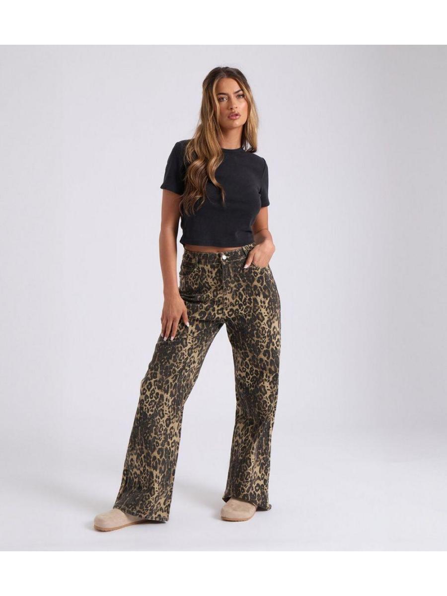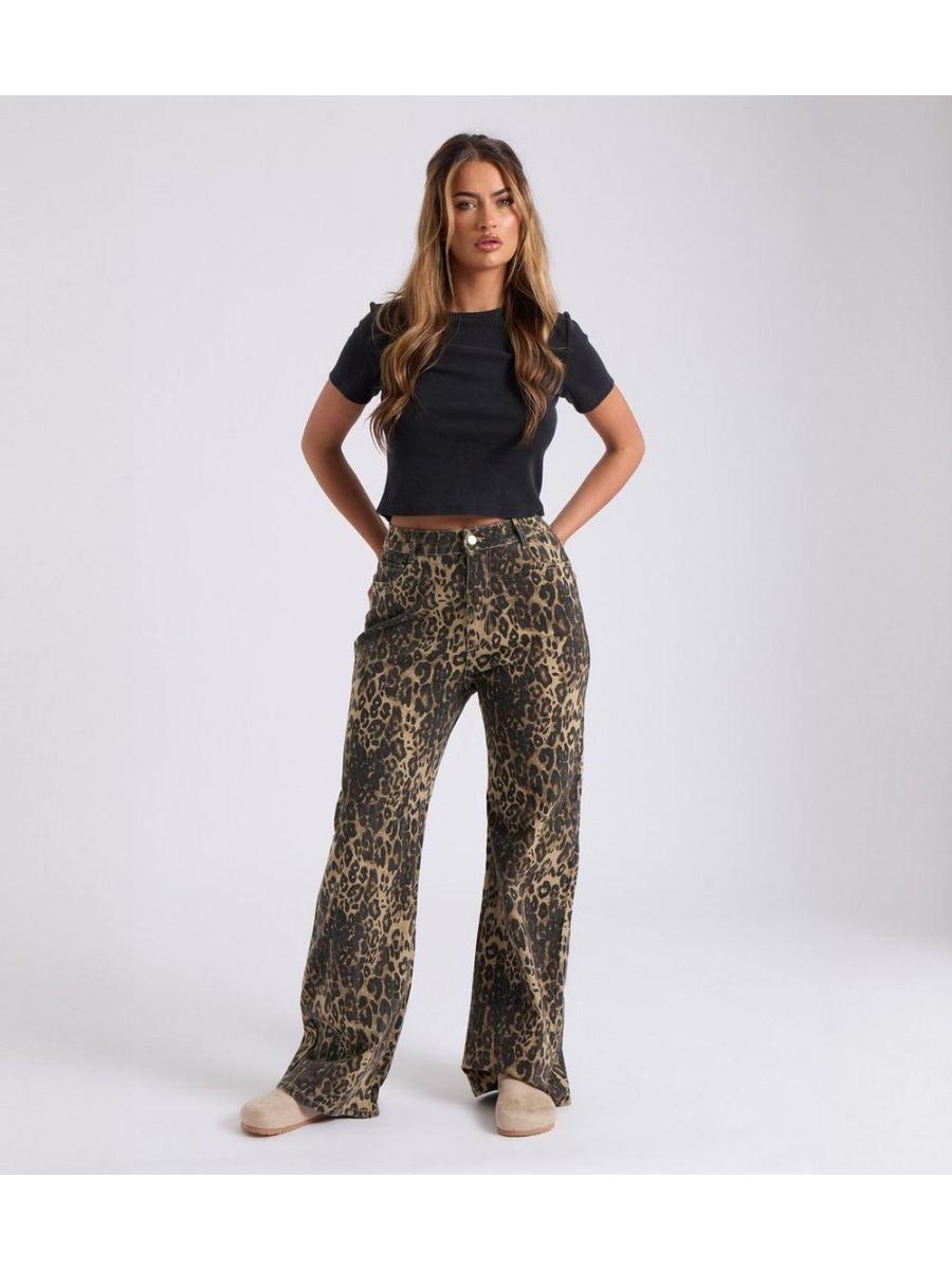 Urban Bliss Brown Leopard Denim Wide Leg Jeans