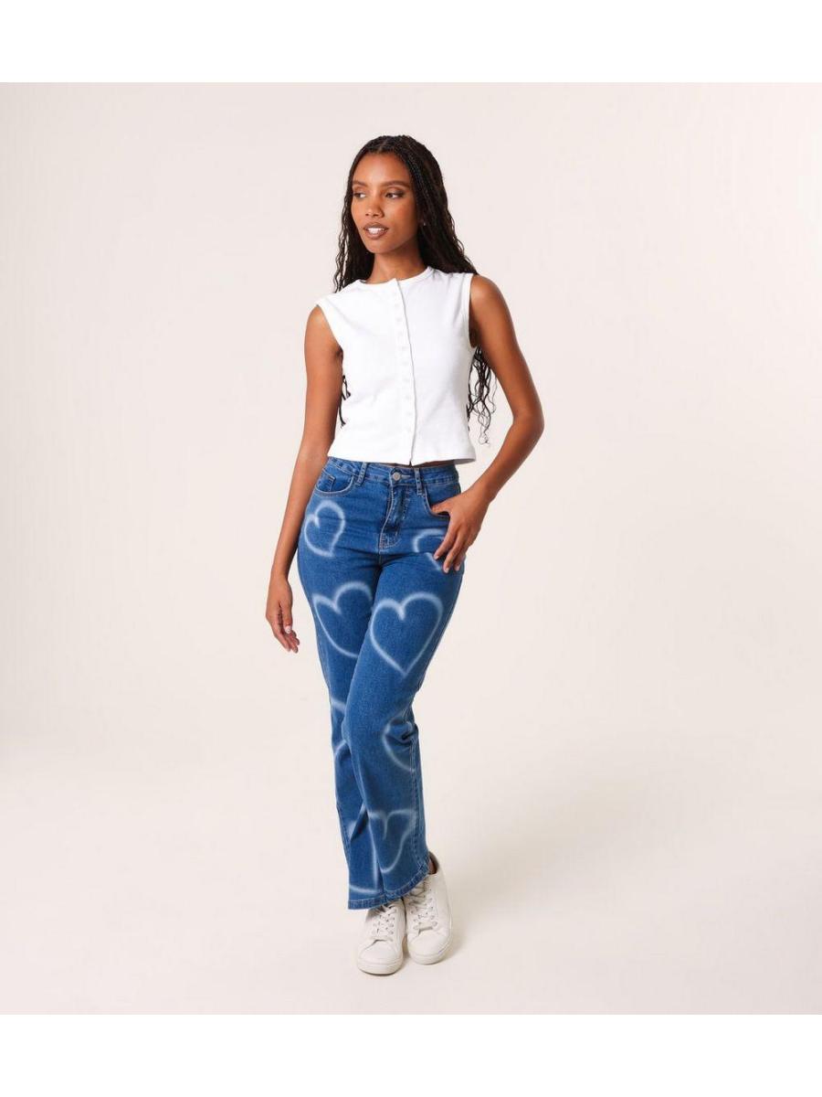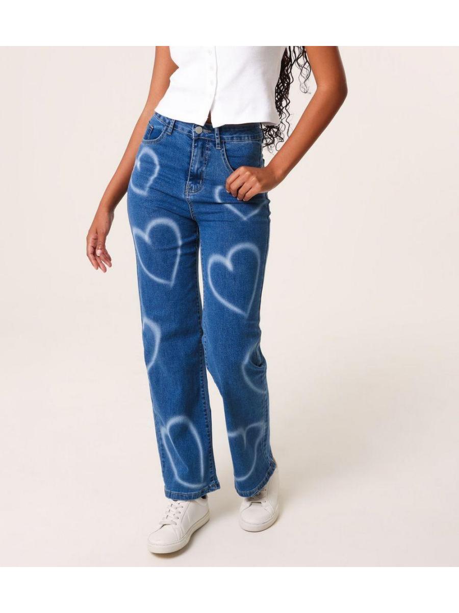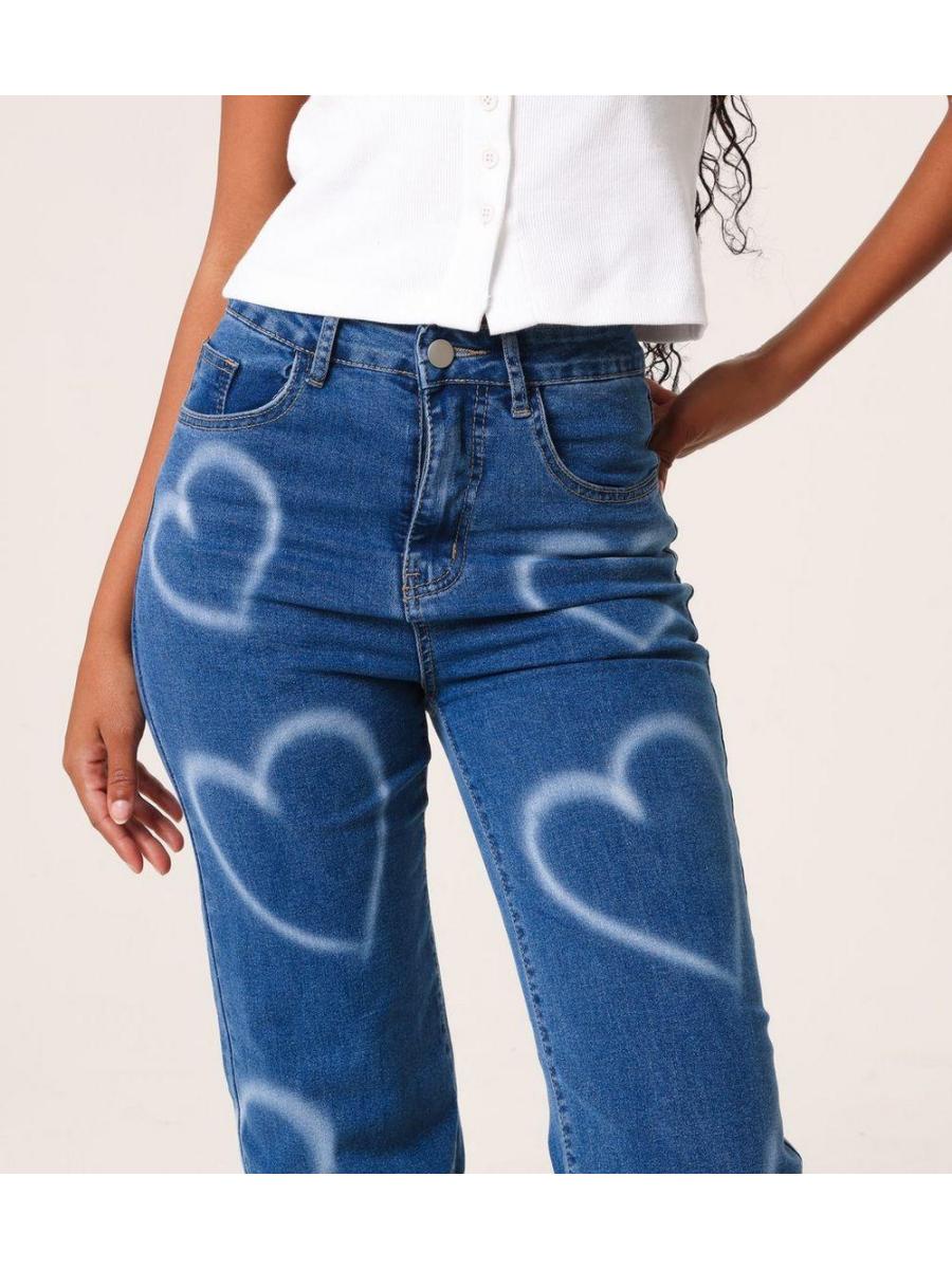 Pink Vanilla Dark Blue Spray Heart Jeans