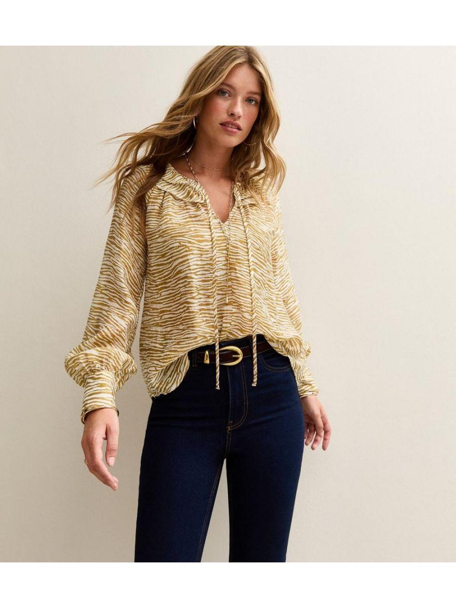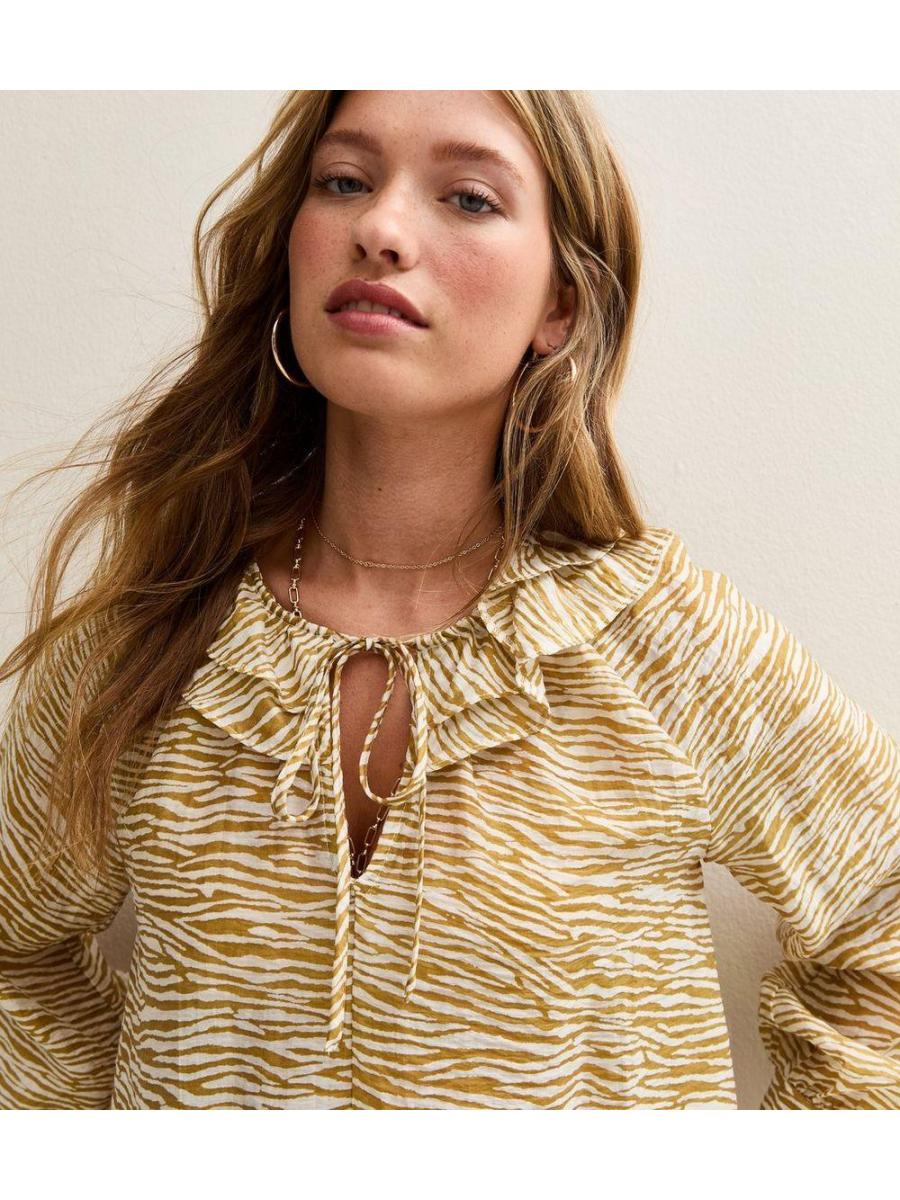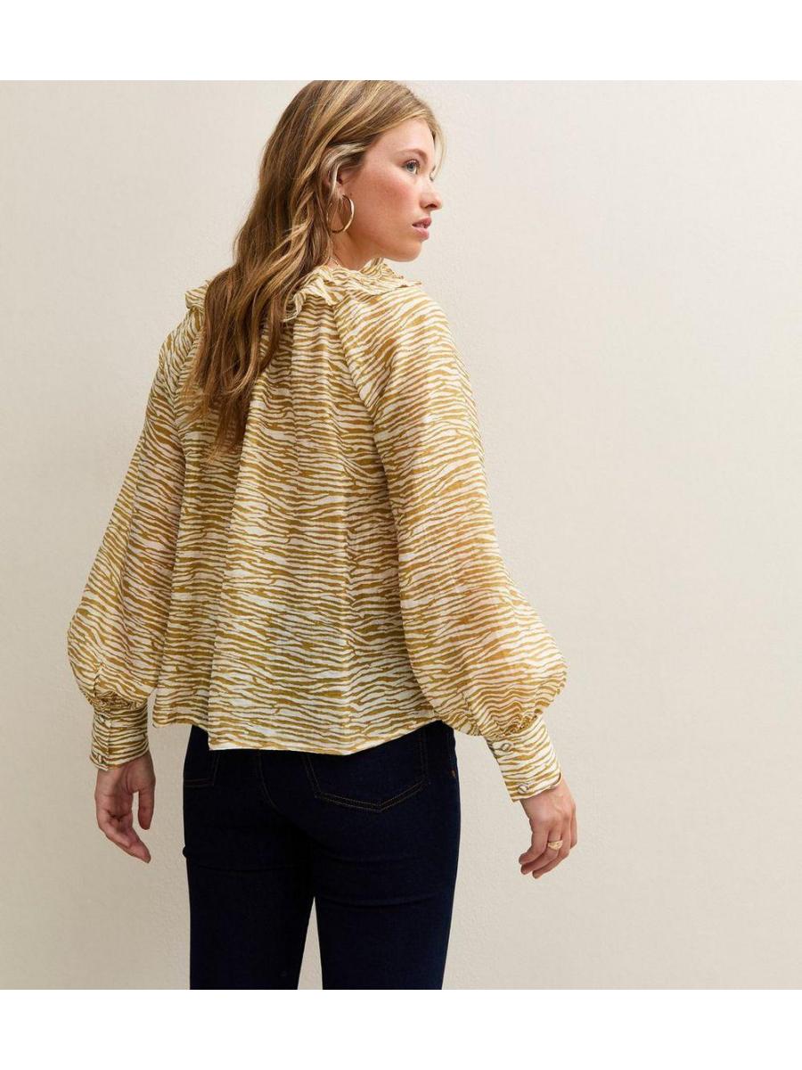 Yellow Zebra Print Frill Long Sleeve Blouse
