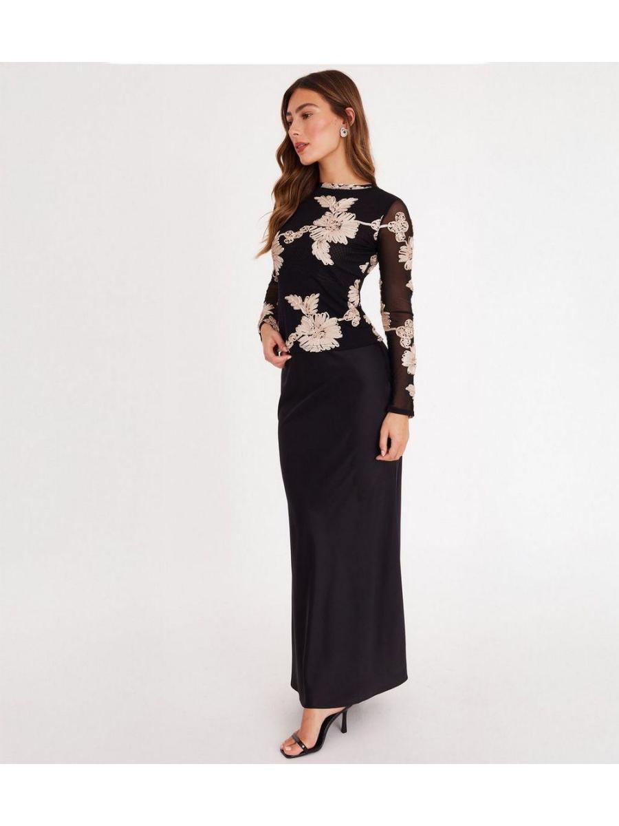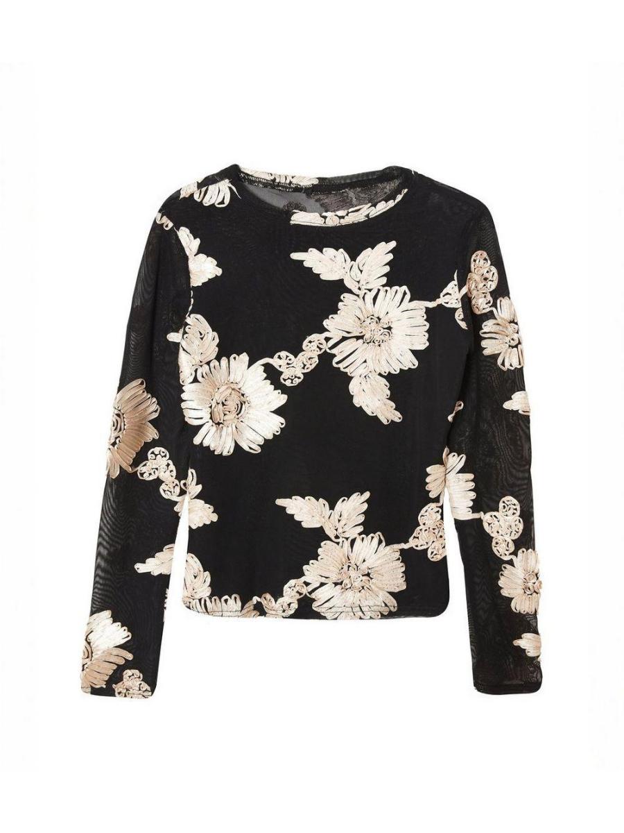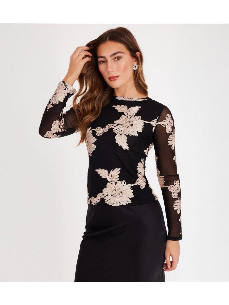 QUIZ Black Mesh Floral Applique Top