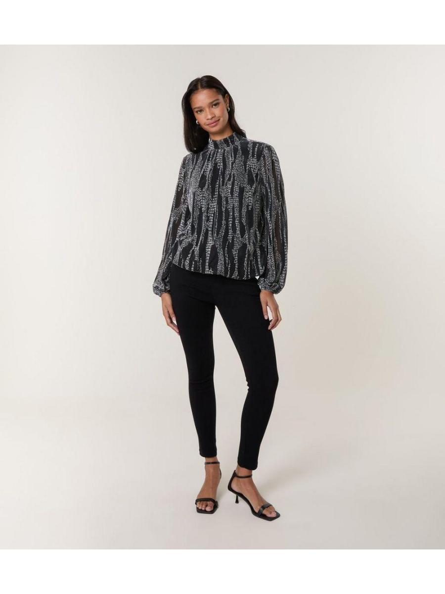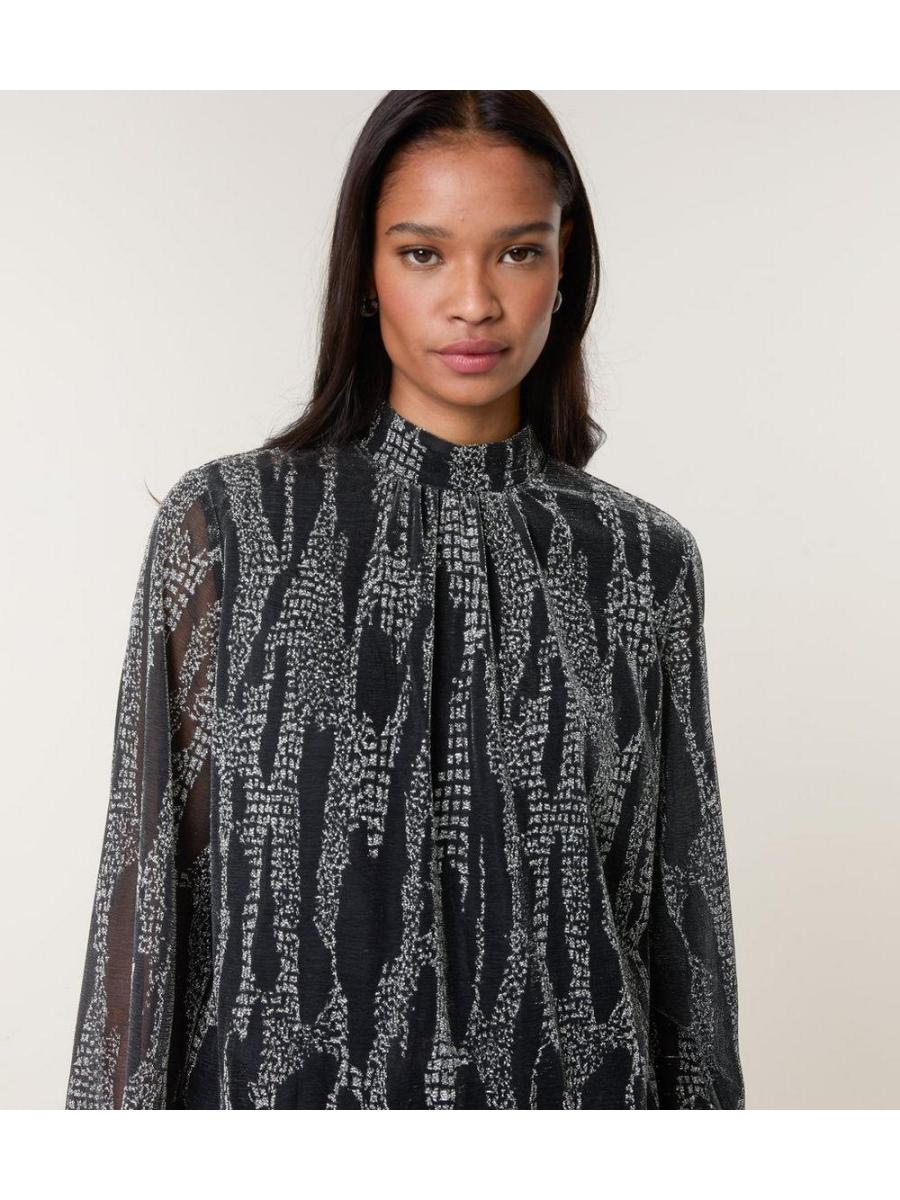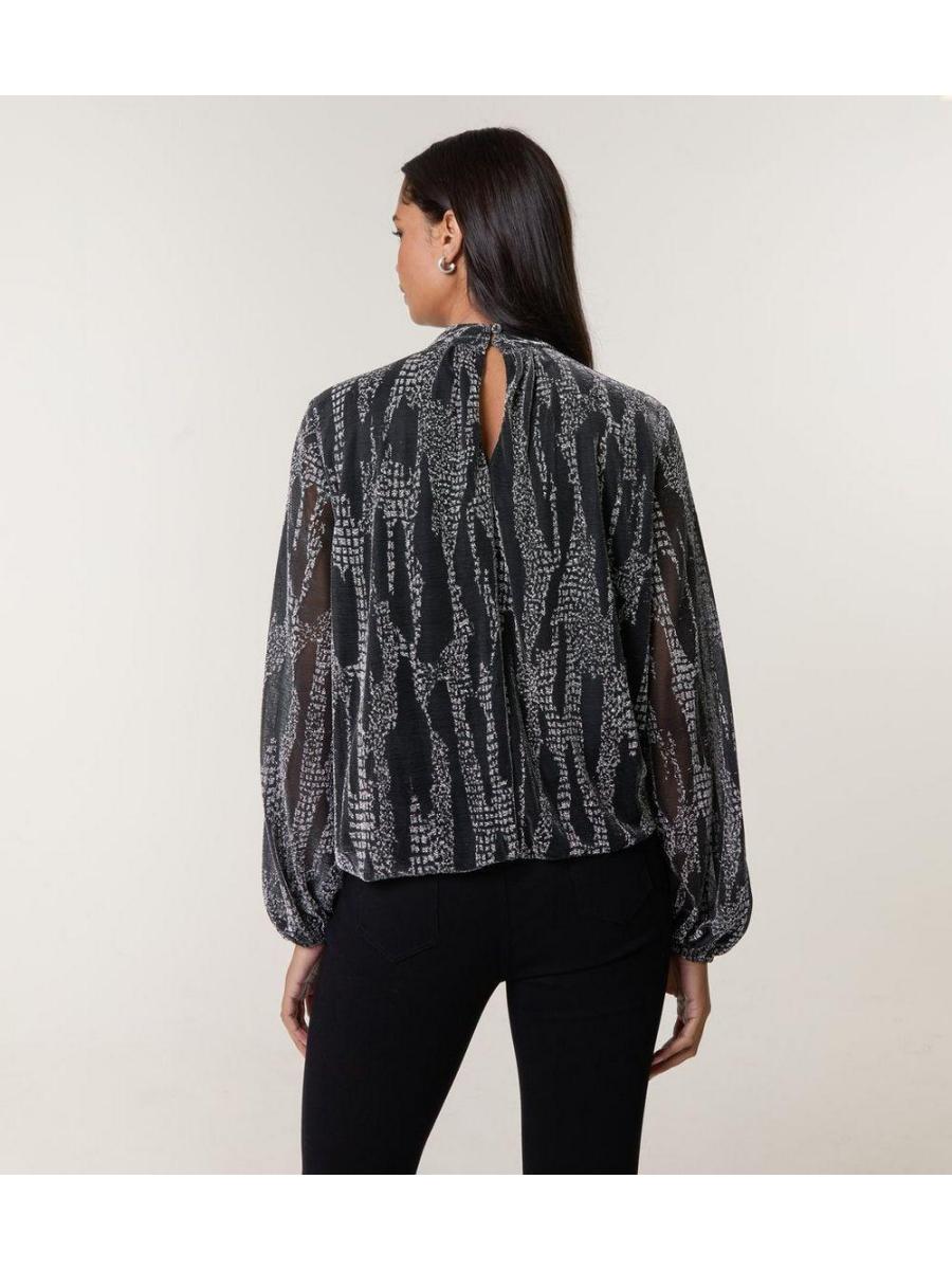 Blue Vanilla Silver Metallic Thread High Neck Snakeskin Pattern Blouse