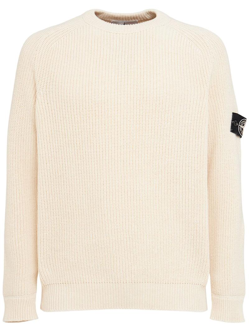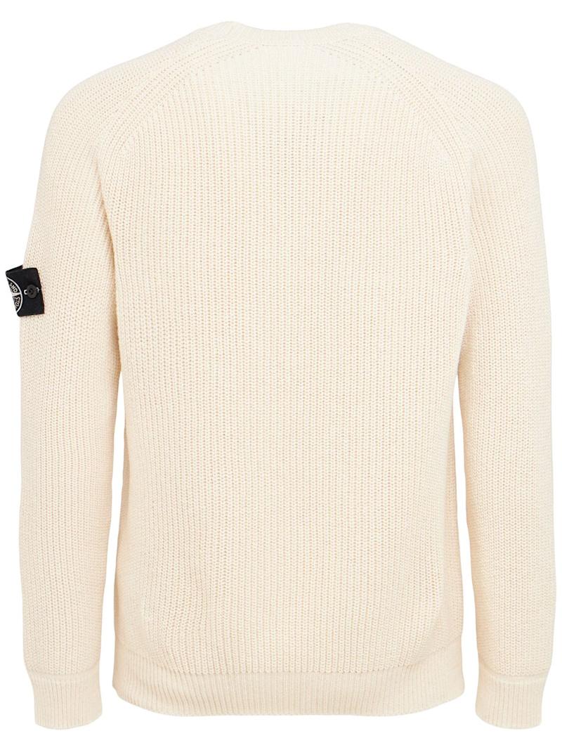 Raw Beauty棉质渔夫纹毛衣 - 象牙色 - 男士 - Stone Island - 罗纹边缘.