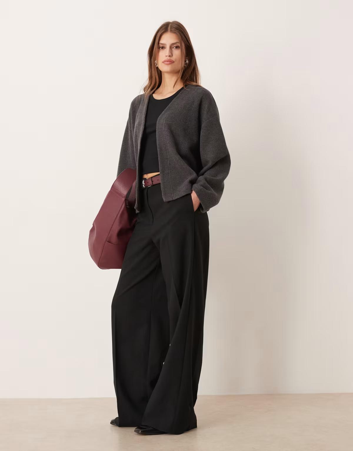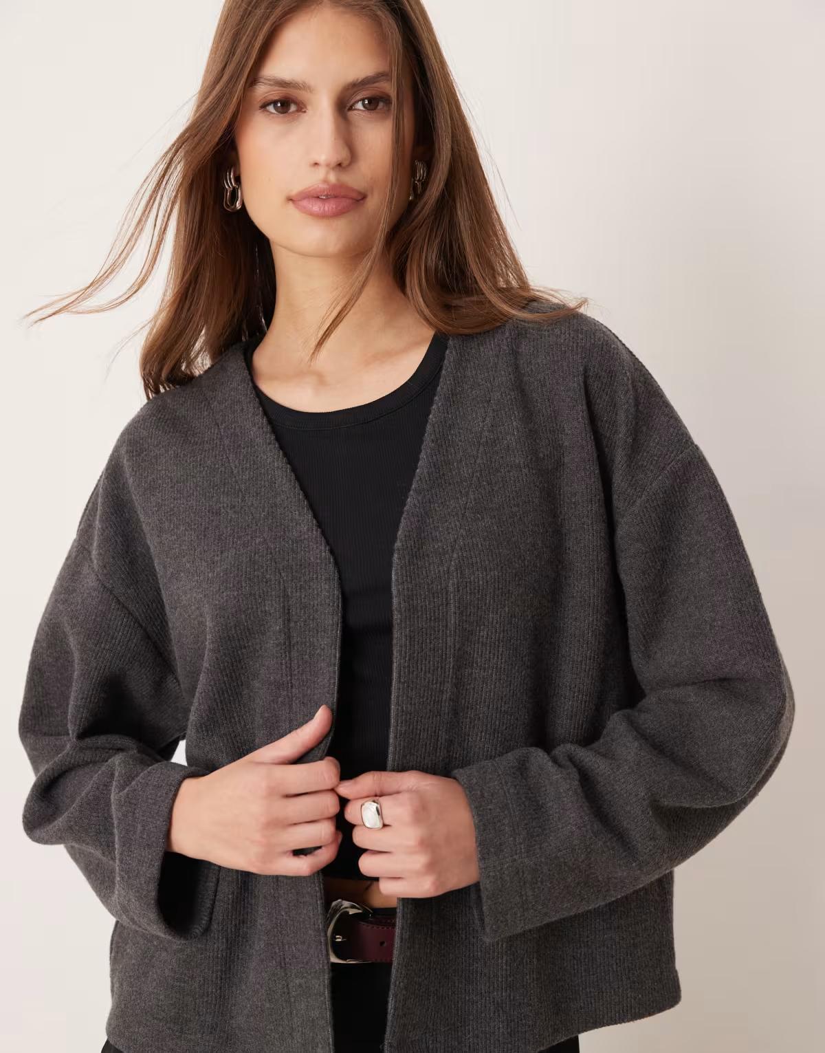 ASOS DESIGN super soft edge to edge cardigan co ord in charcoal