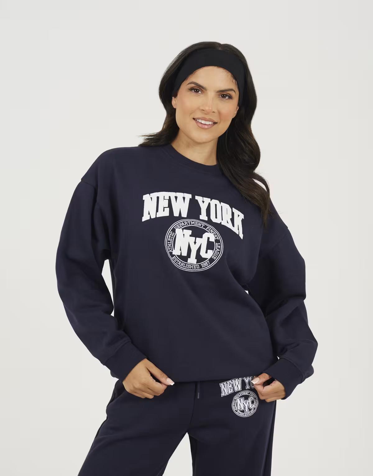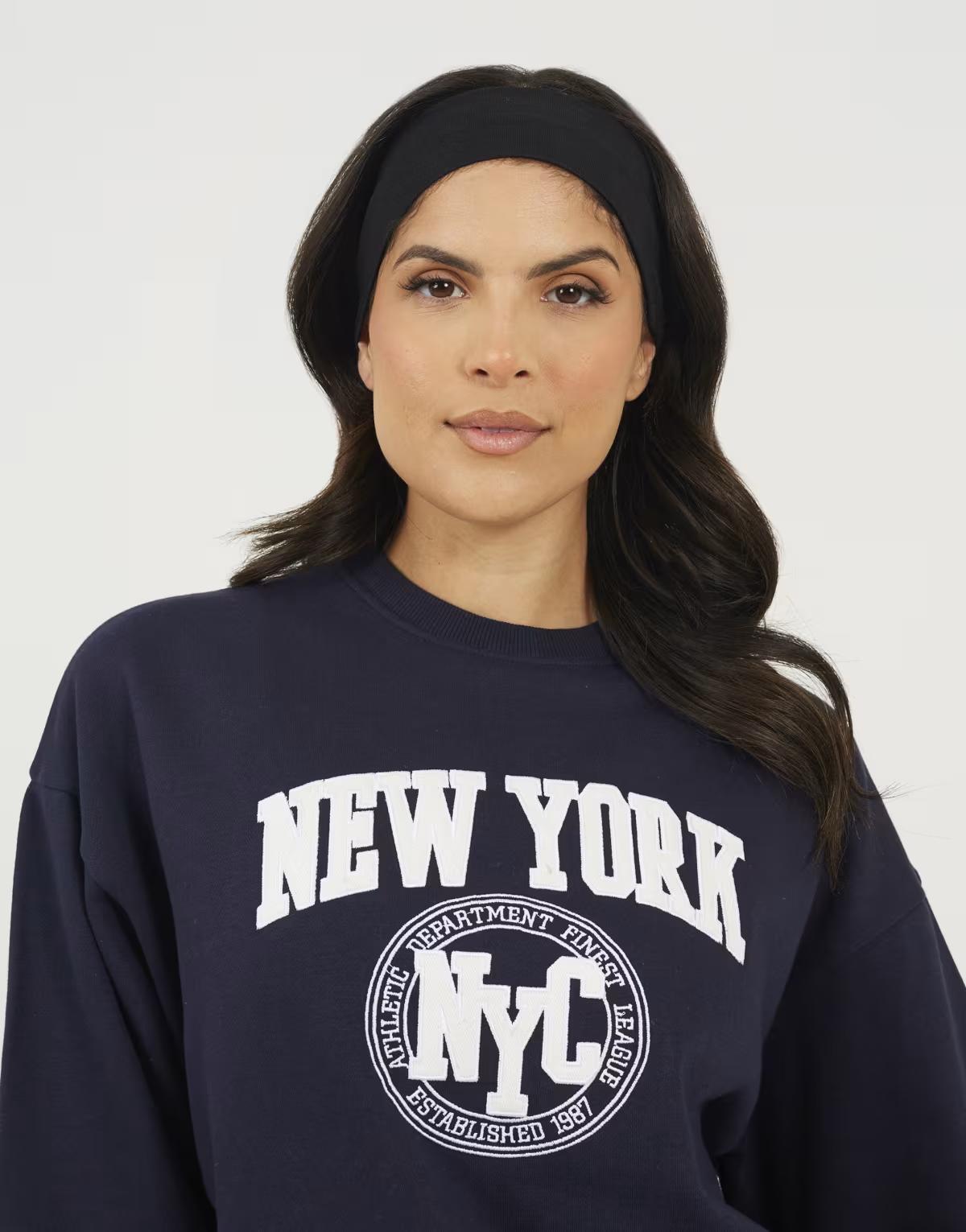 Brave Soul Crew neck embroidered sweatshirt in navy