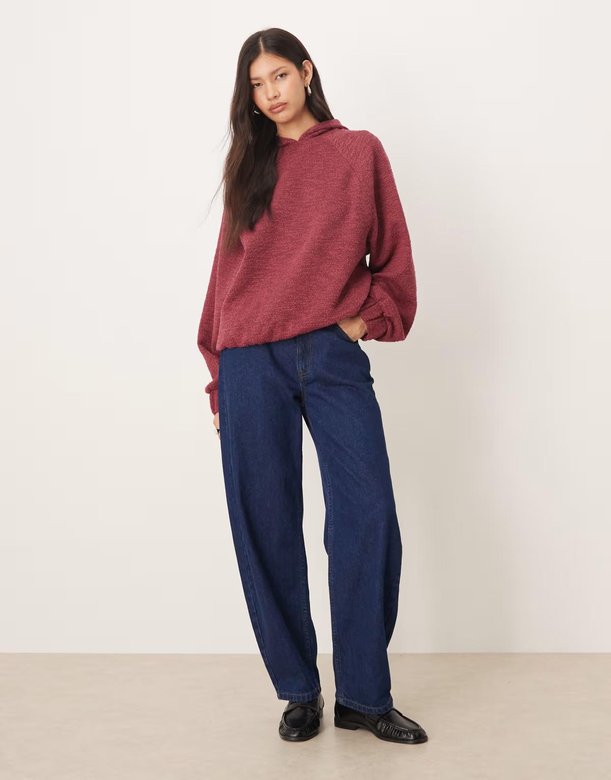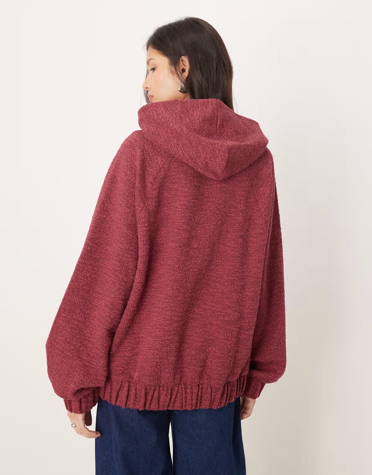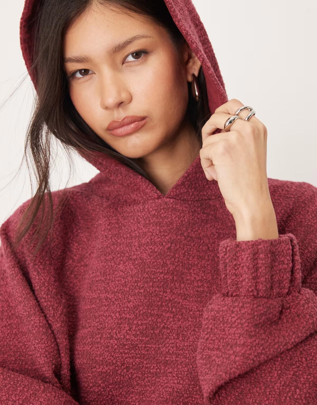 ASOS DESIGN hoodie with tie hem detail in mottled burgundy