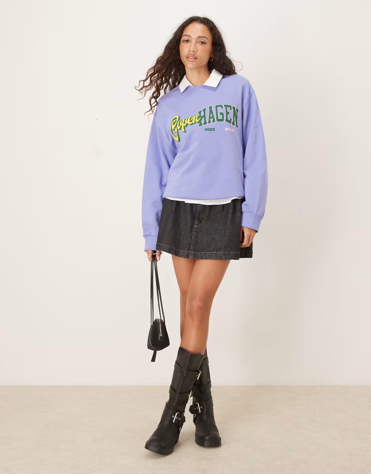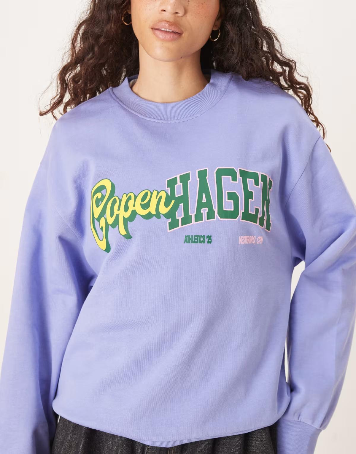 ASOS DESIGN oversized sweat with copenhagen graphic in lilac