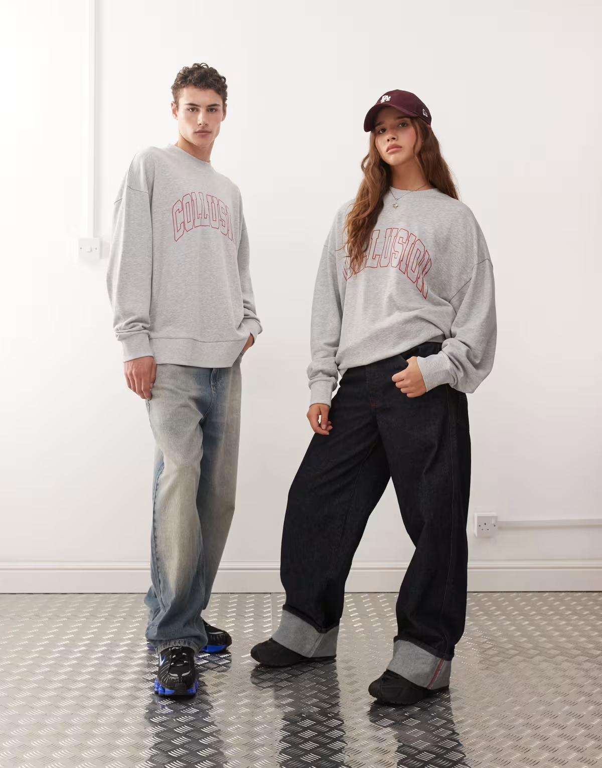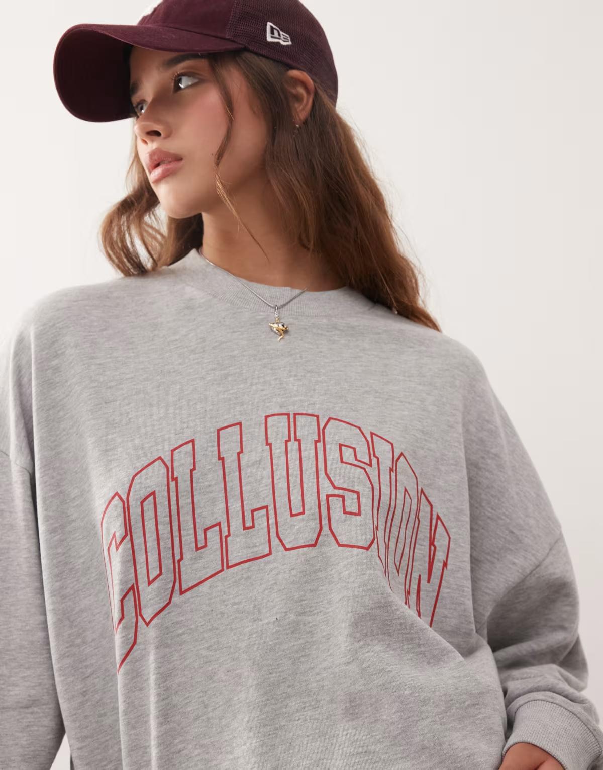 COLLUSION Varsity sweatshirt in gey marl with red print