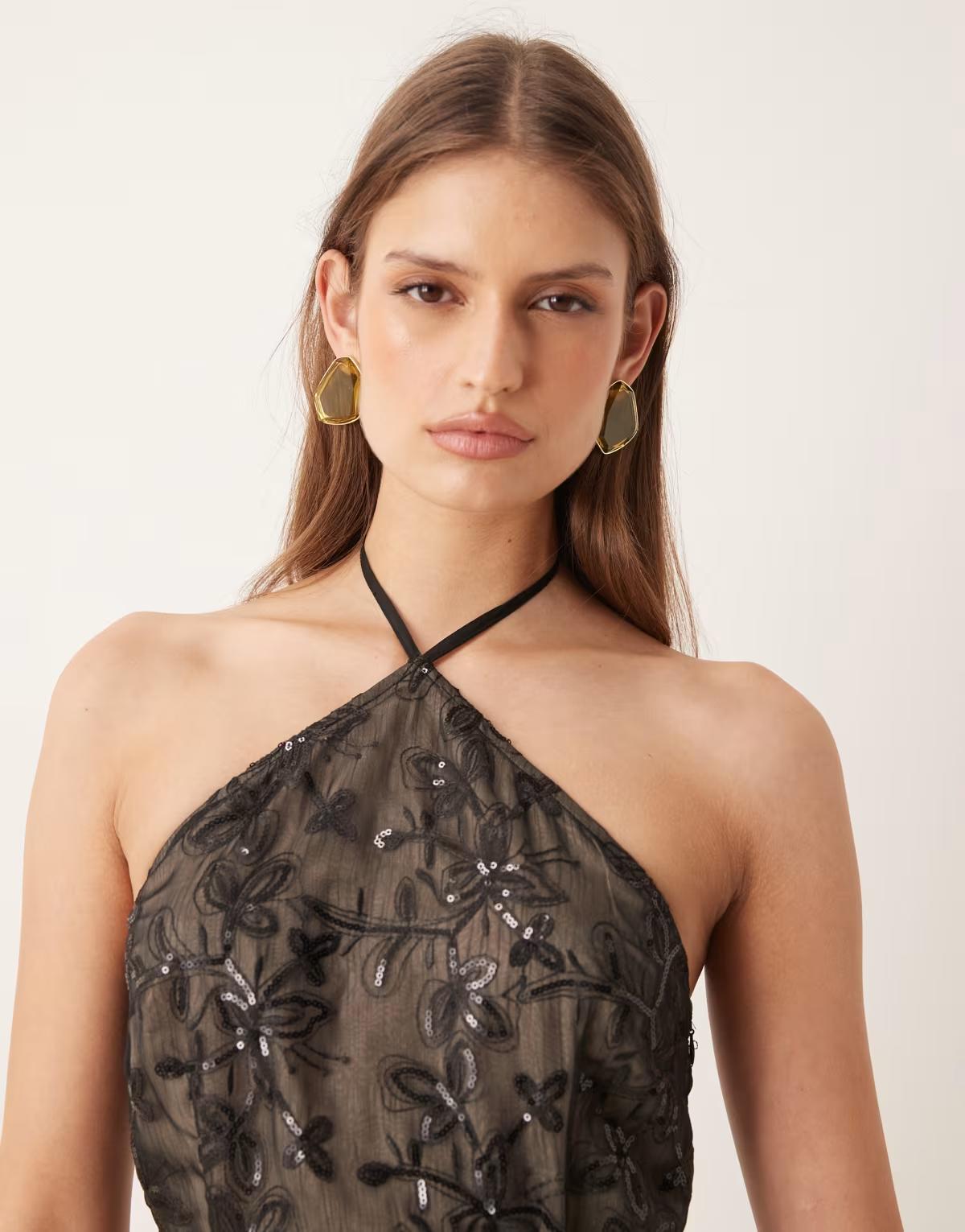 Motel Soren floral chiffon sequin dress in black