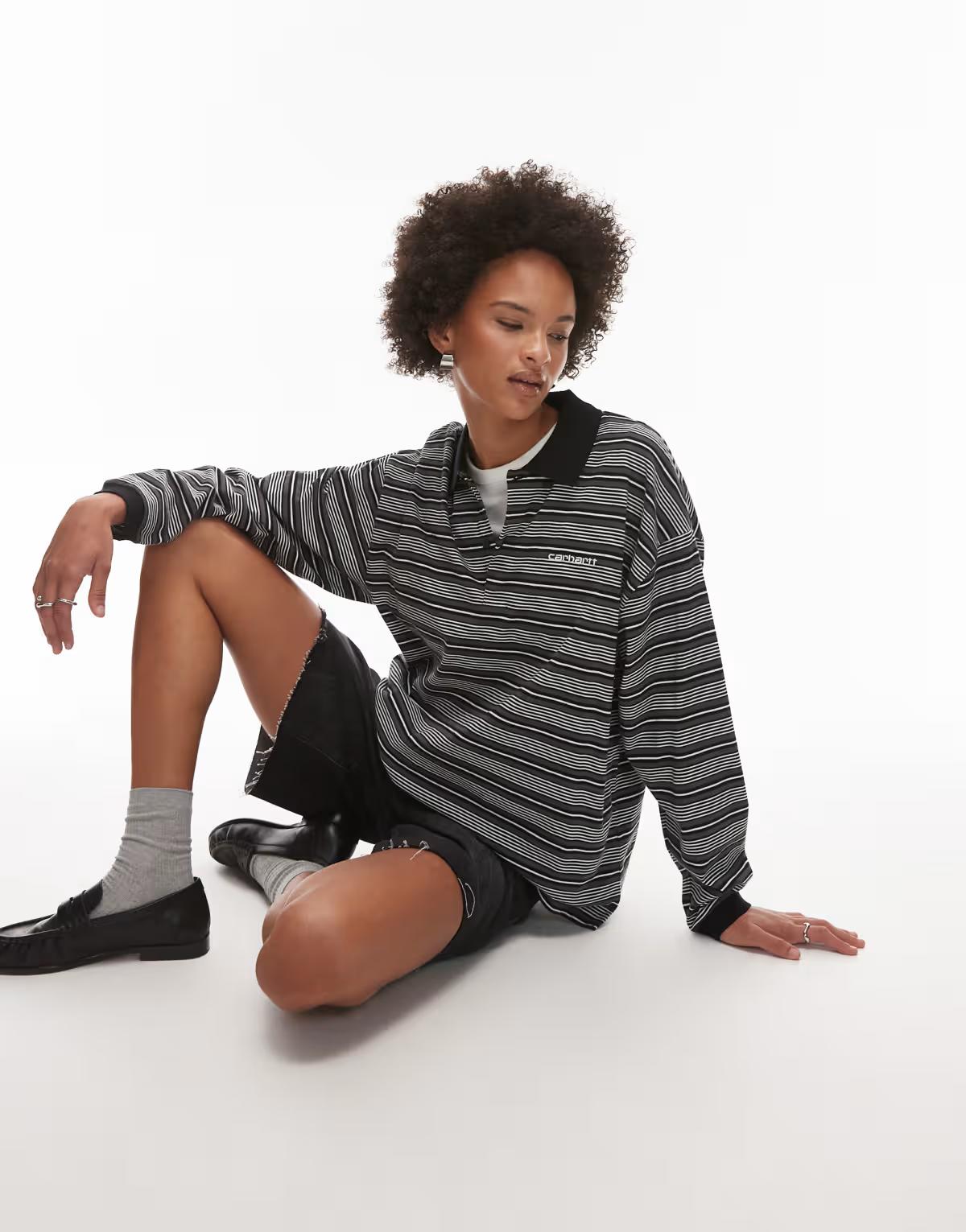 BrandFounded in London in 1989, Carhartt WIP puts a new-new spin on old-school workwear. The younger sibling of the OG Detroit brand Carhartt, expect a fresh streetwear take on its utility-led designs – including relaxed hoodies and T-shirts, pullover jackets, trousers and skirts emblazoned with the brand’s iconic logo. Shop our Carhartt WIP at ASOS edit to cop quality wardrobe staples for both weekend plans and chill-out days.Size & FitModel's height: 175cm / 5' 9''Still unsure what size to get? Check out our size guide.
