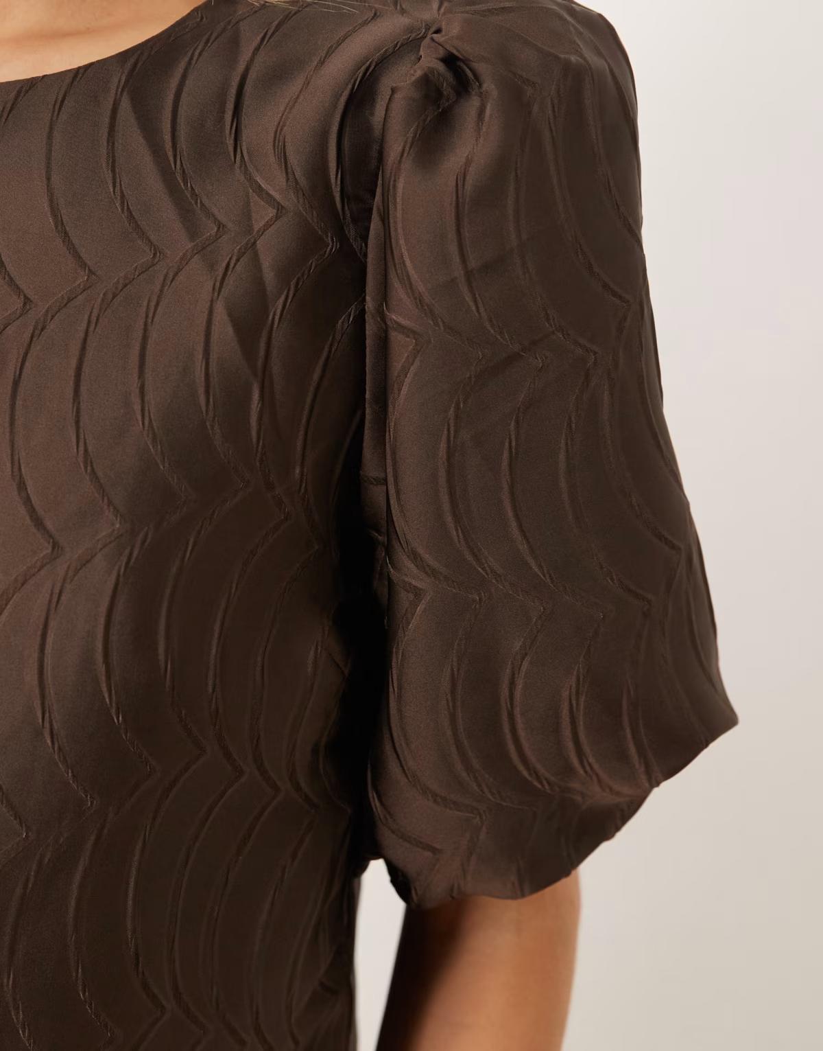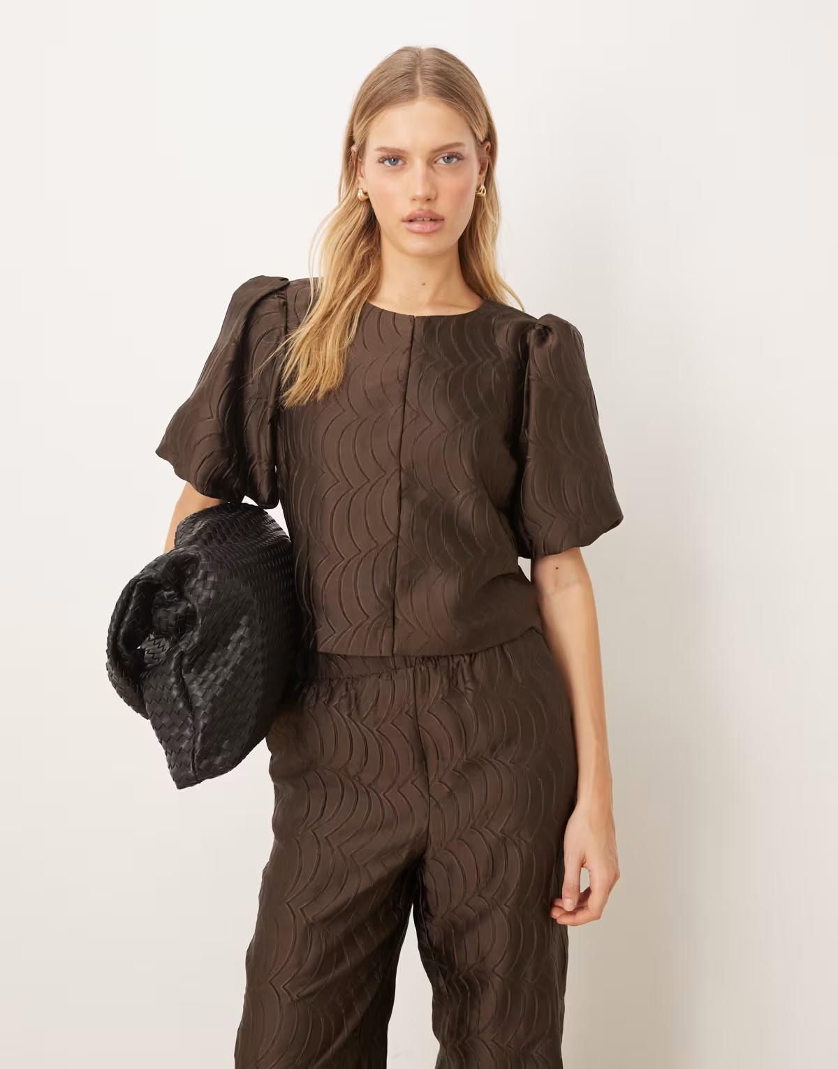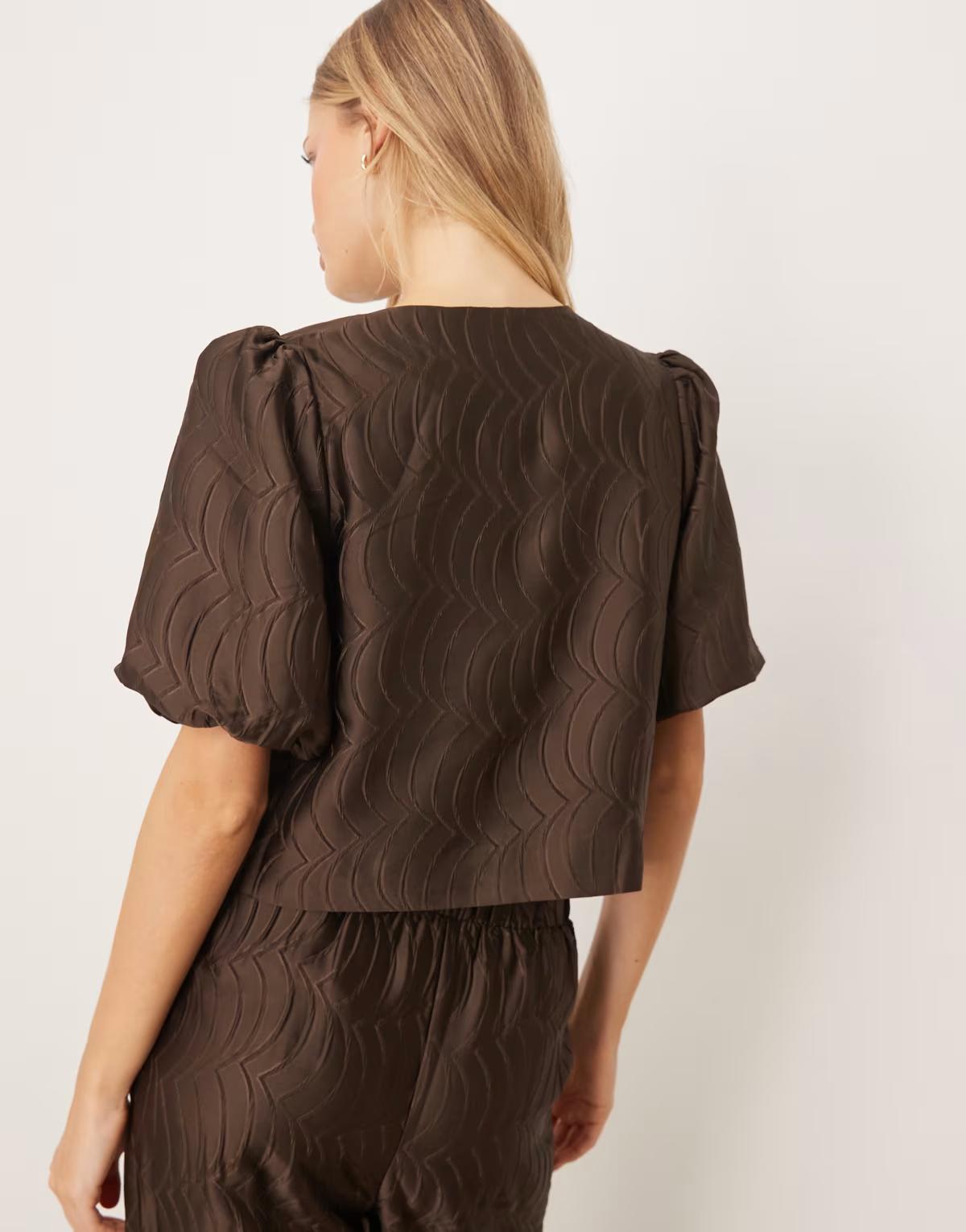 YAS premium textured puff sleeve top co-ord in chocolate brown