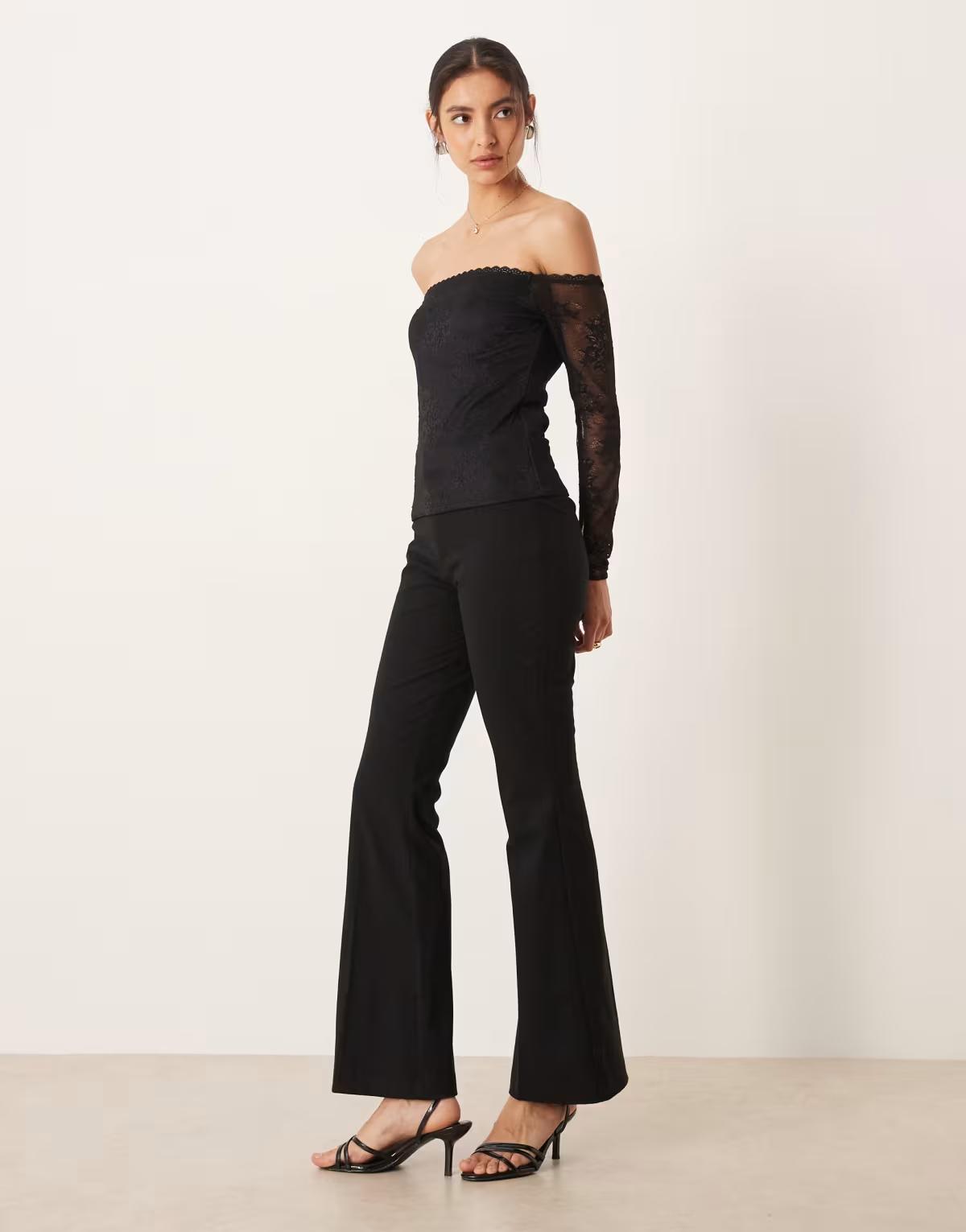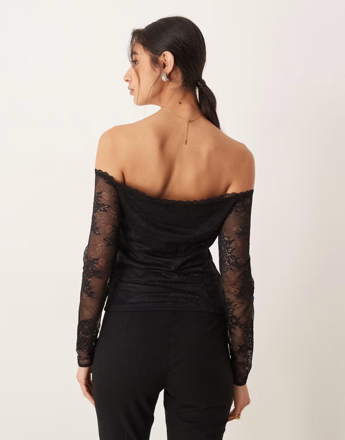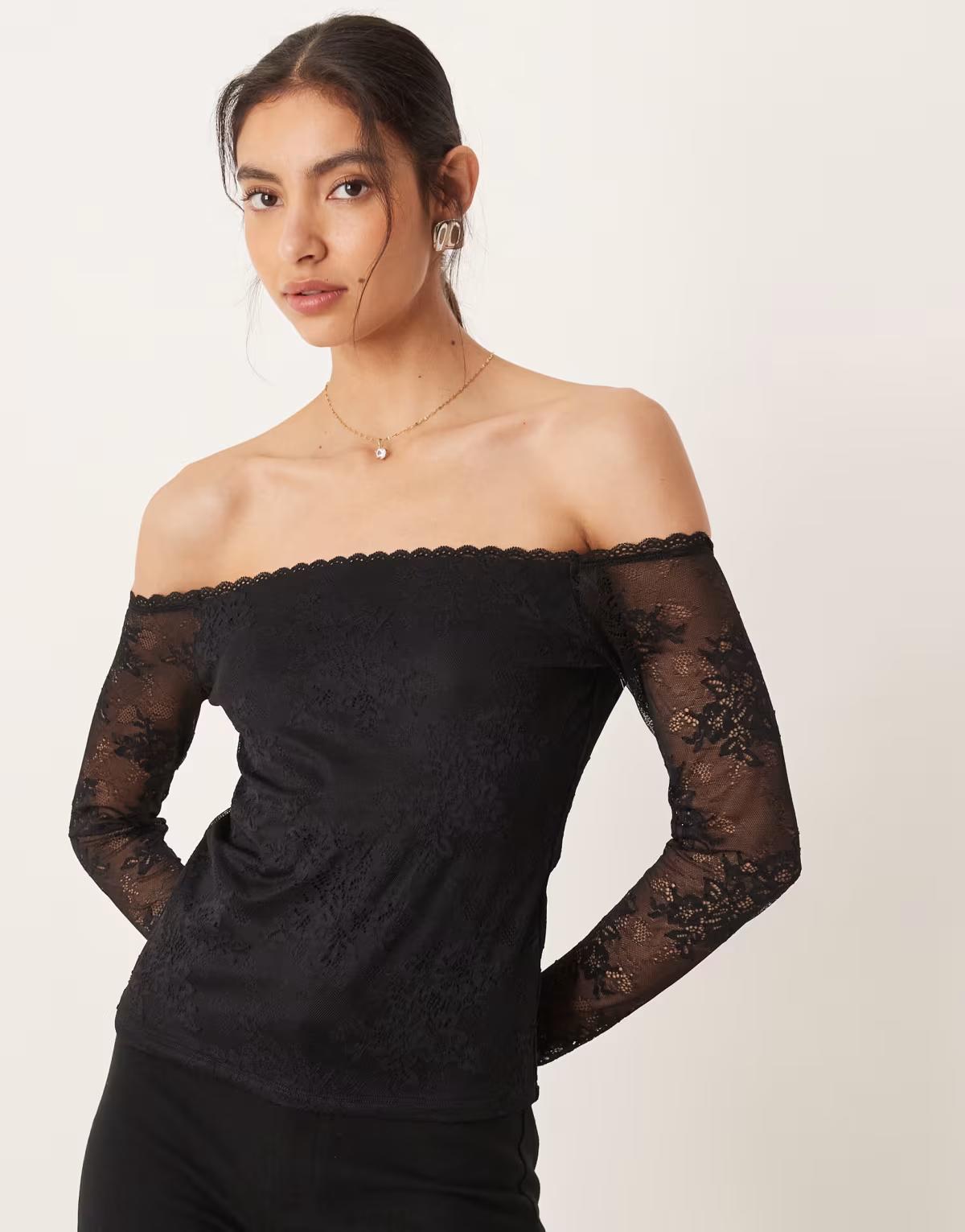 Abercrombie & Fitch off the shoulder lace top with built in bra in black