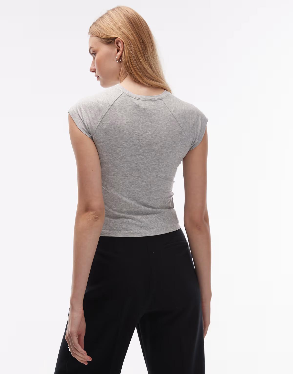 & Other Stories jersey slim fit crew neck top with cap sleeves in grey
