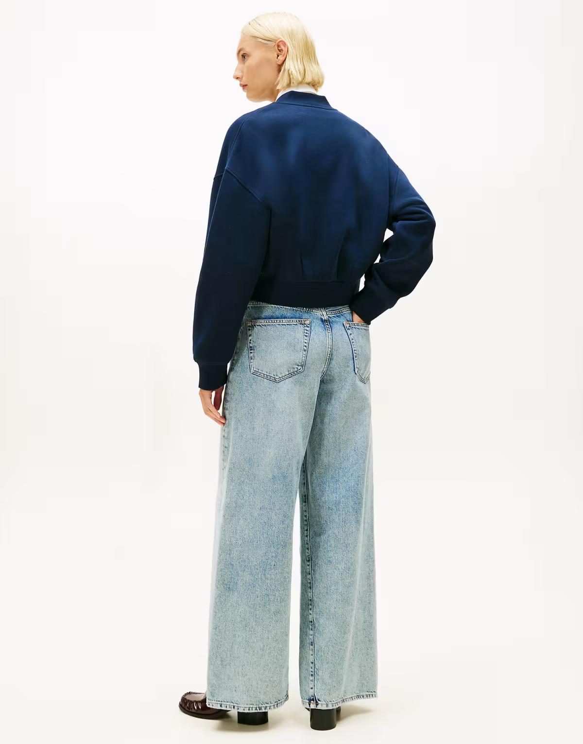 Tommy Hilfiger Flex fleece logo relaxed bomber cardigan in dark blue