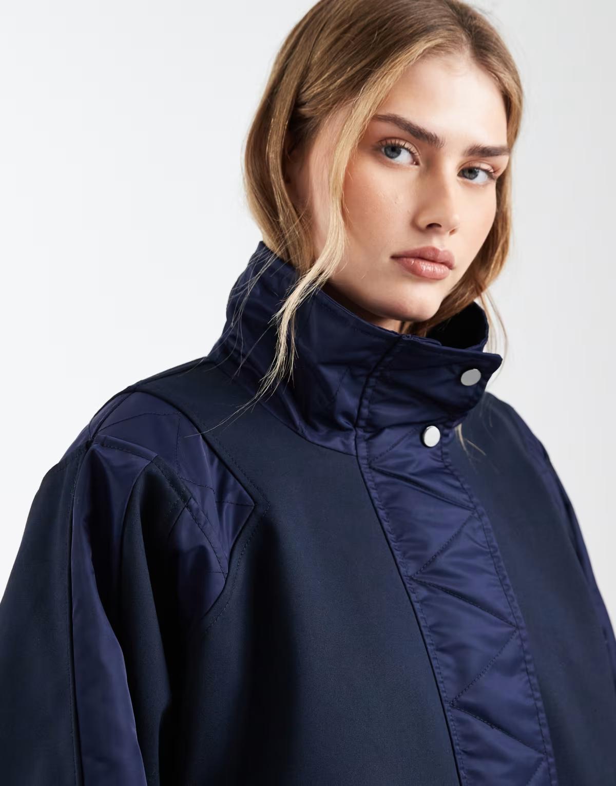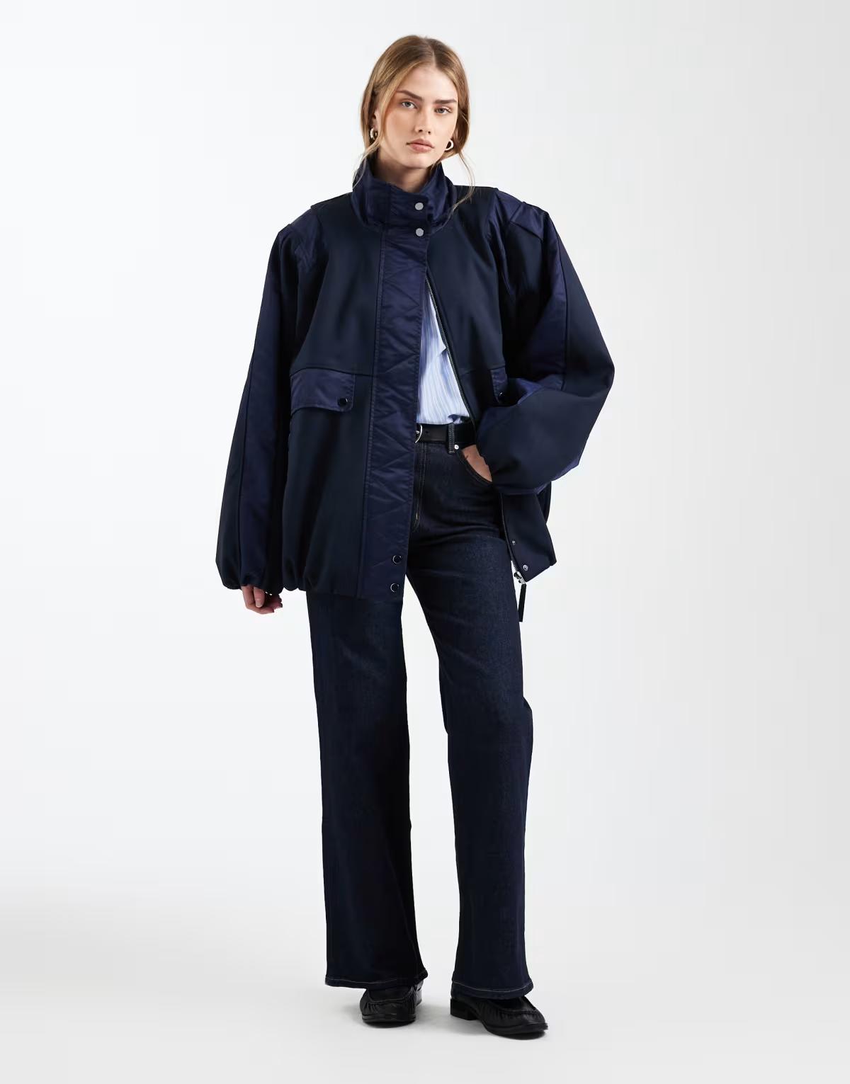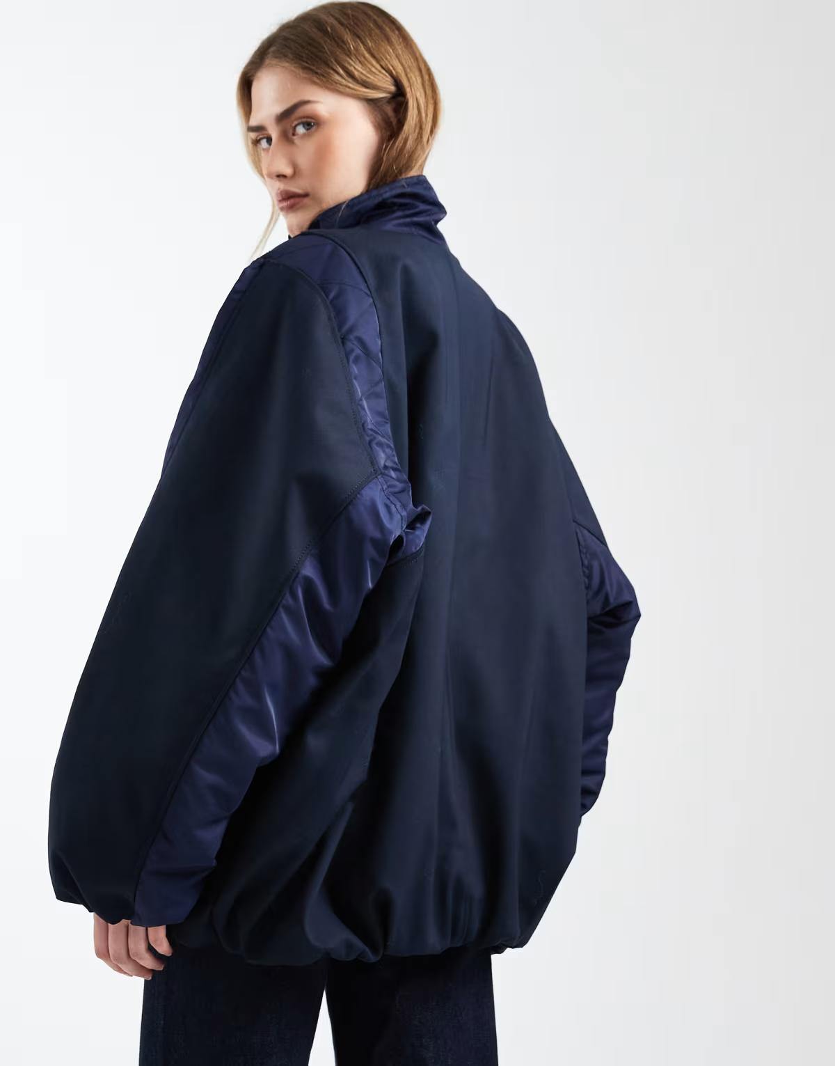 ASOS DESIGN DECON 2.0 spliced bomber jacket in navy