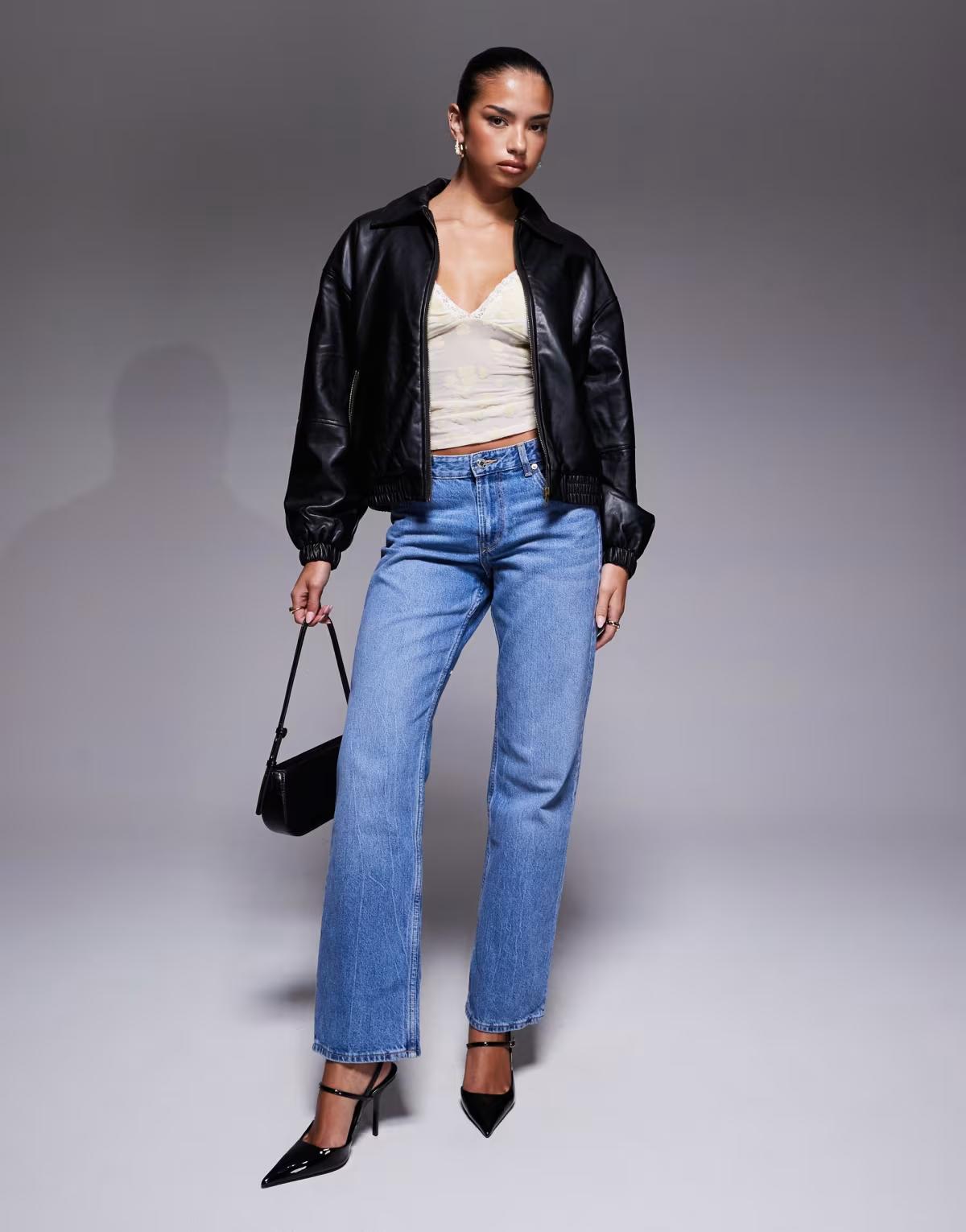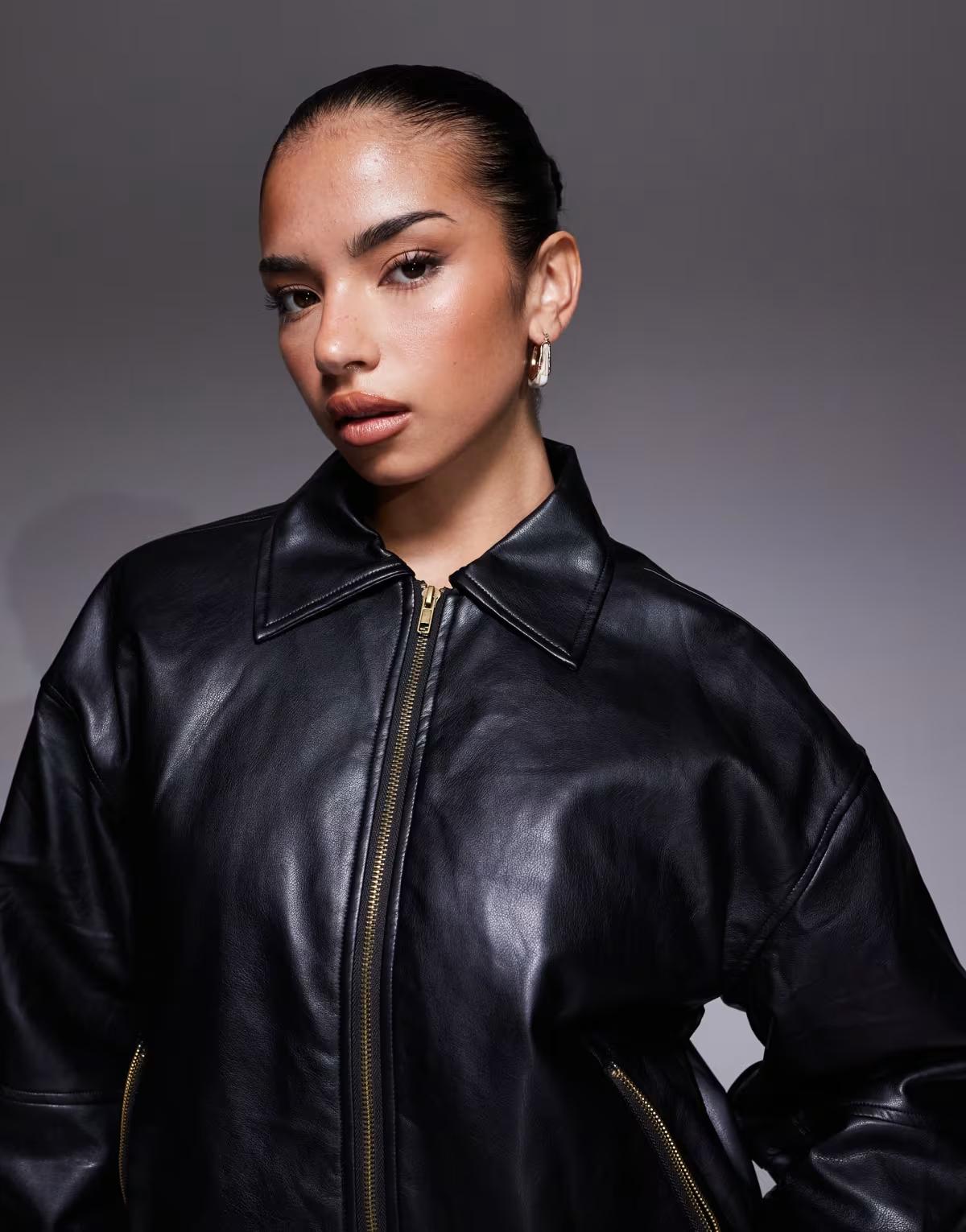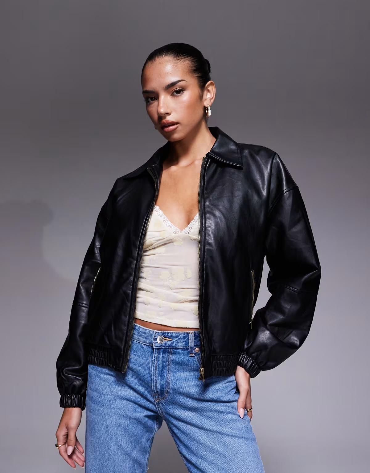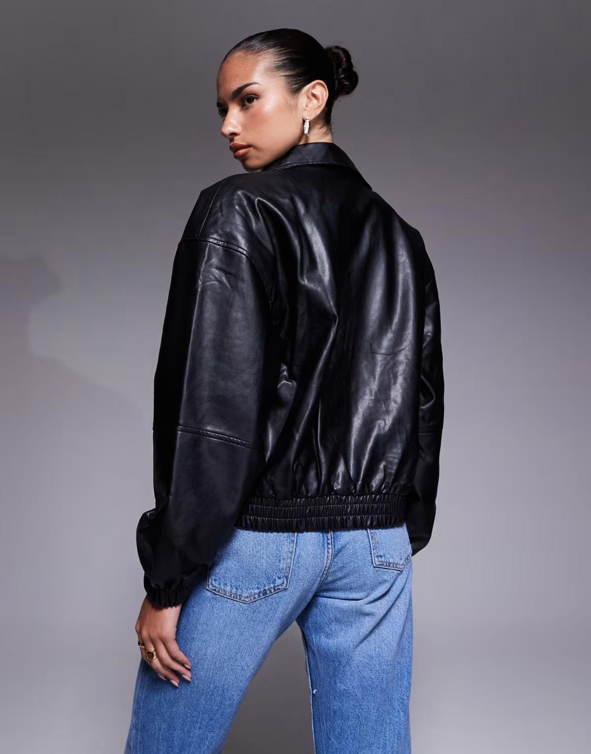 Edikted Halley faux leather bomber jacket in black