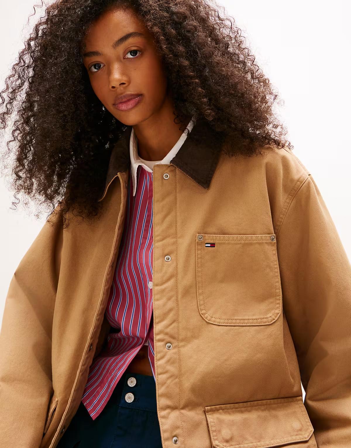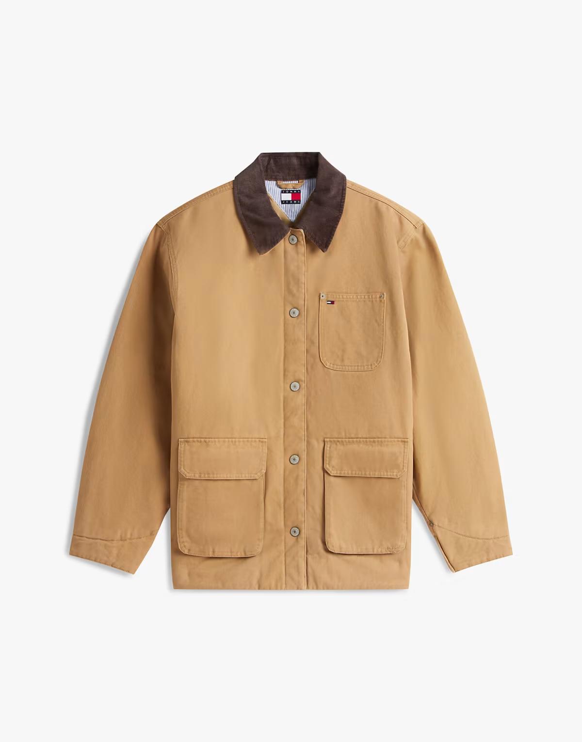 Tommy Jeans Corduroy collar twill utility jacket in brown