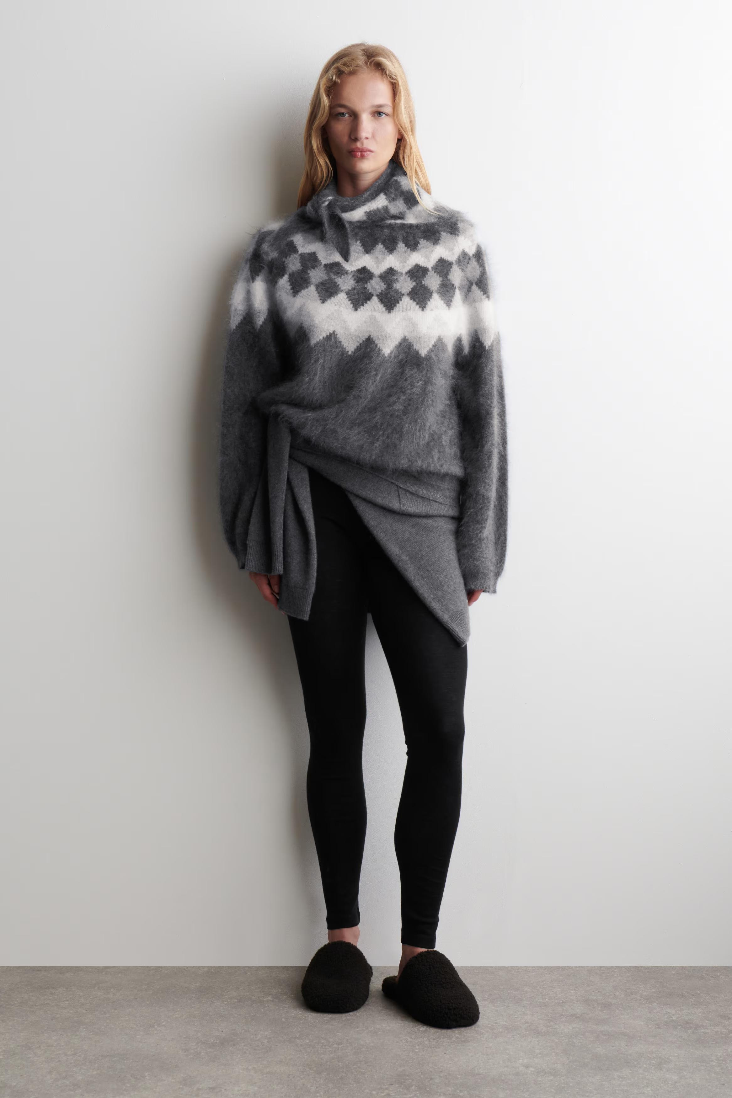 The womenswear team propose a modern take on heritage for Autumn Winter 2025. Offered in a tonal-grey palette, this jumper is crafted from softly brushed cashmere and intarsia-knitted using an intricate Fairisle technique. Style it with classic denim.\u0026nbsp;Regular fitThe Good Cashmere Standard\u0026reg; is owned by Aid by Trade Foundation (AbTF) and sets out requirements on animal welfare, land management and herders' working conditions\u0026nbsp;Shell: 100% GCS cashmere. Excluding trims / Dry clean\u0026nbsp;Front length of size S is 58cm / Model wears a size S