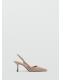 Efecto charol. Diseño destalonado. Diseño asimétrico. Con punta. Tacón trompeta. Sin cierre. El tacón mide 8 cm