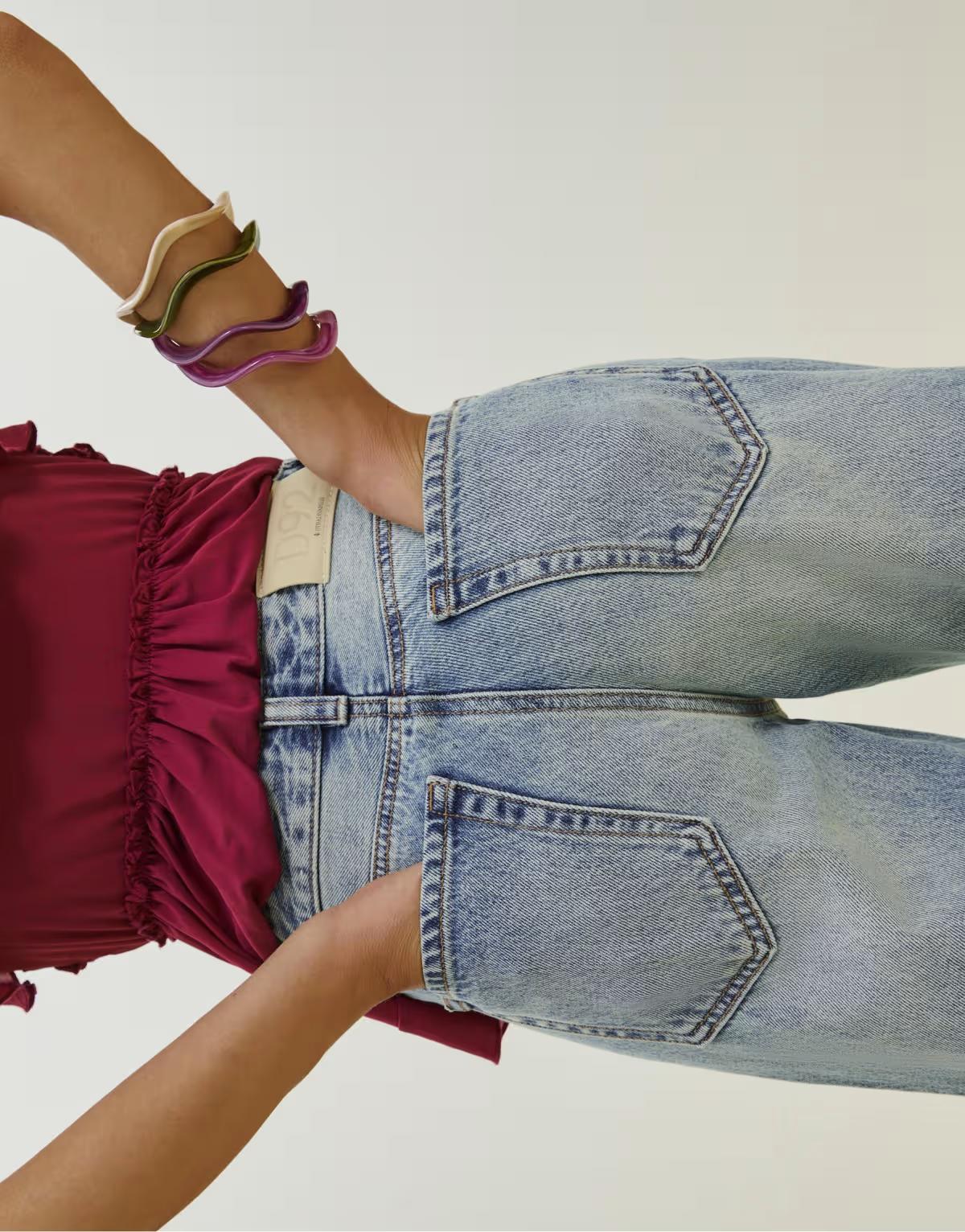 Stradivarius D92 straight wide-leg jeans in medium blue denim