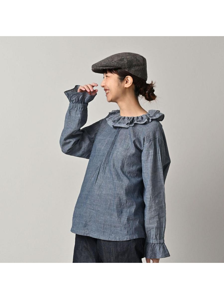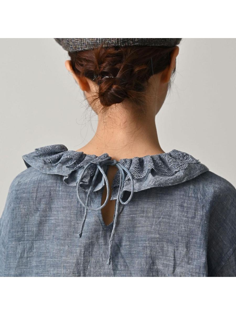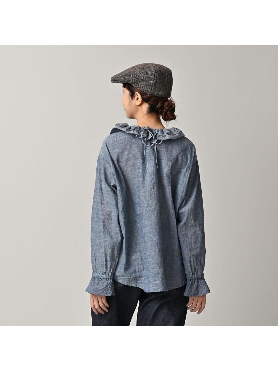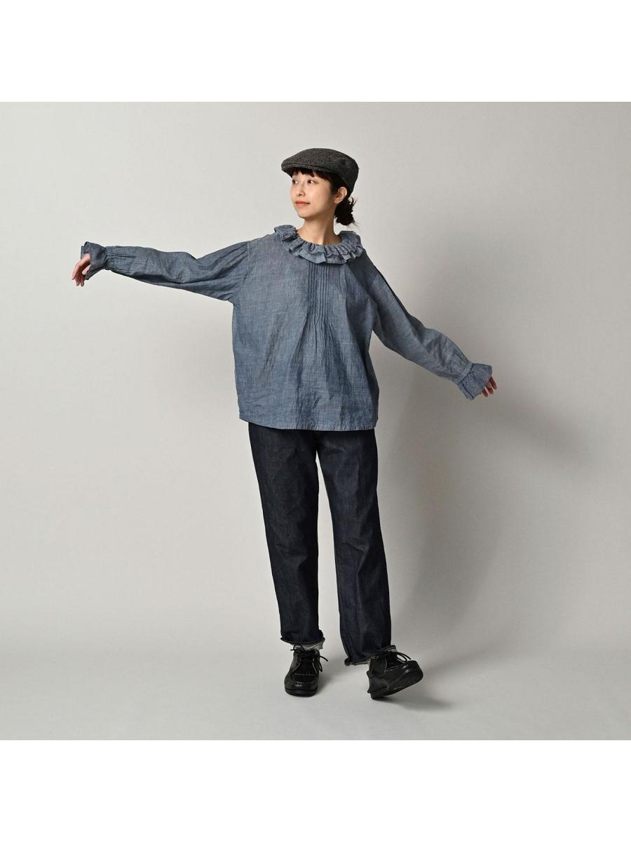 インドカディダンガリーのフリルカラーブラウス(藍)