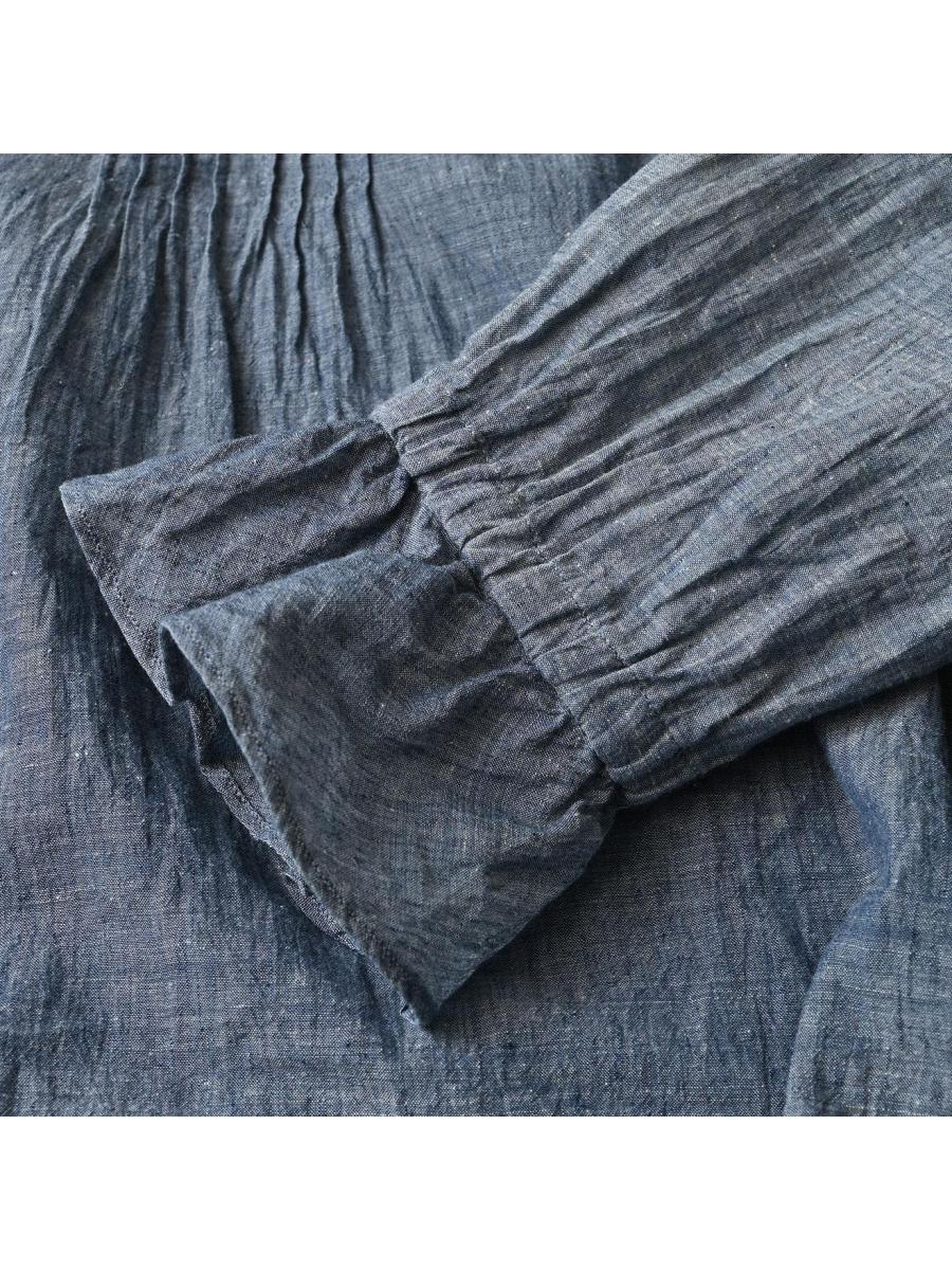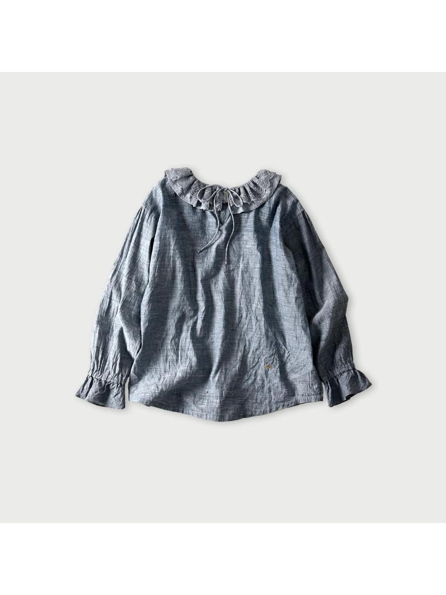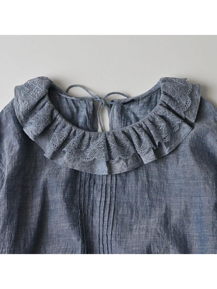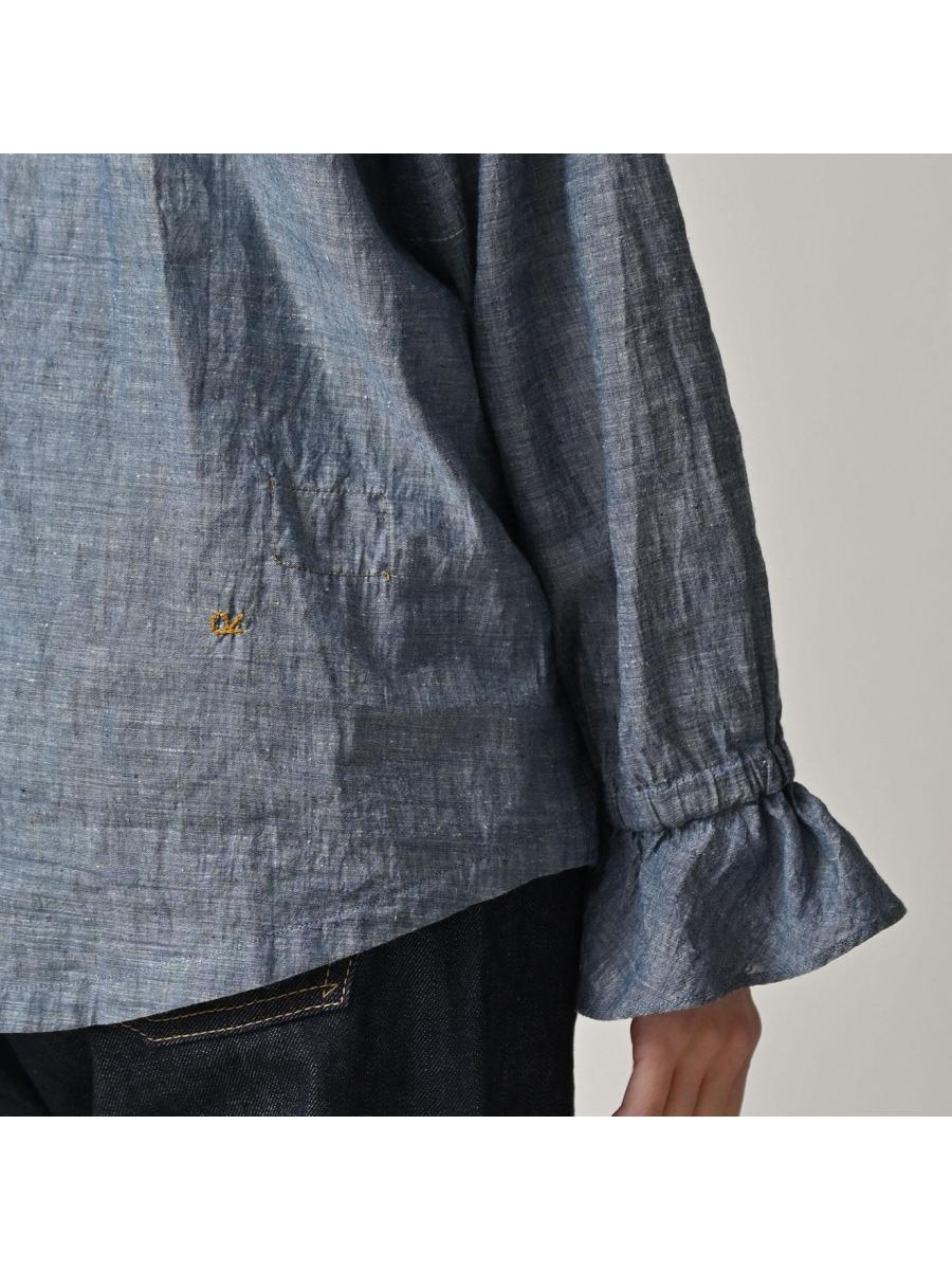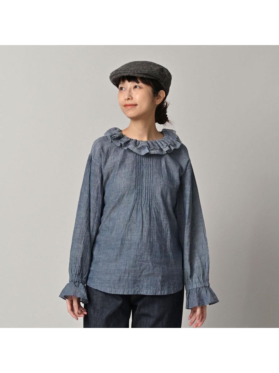 インドカディダンガリーのフリルカラーブラウス(藍)