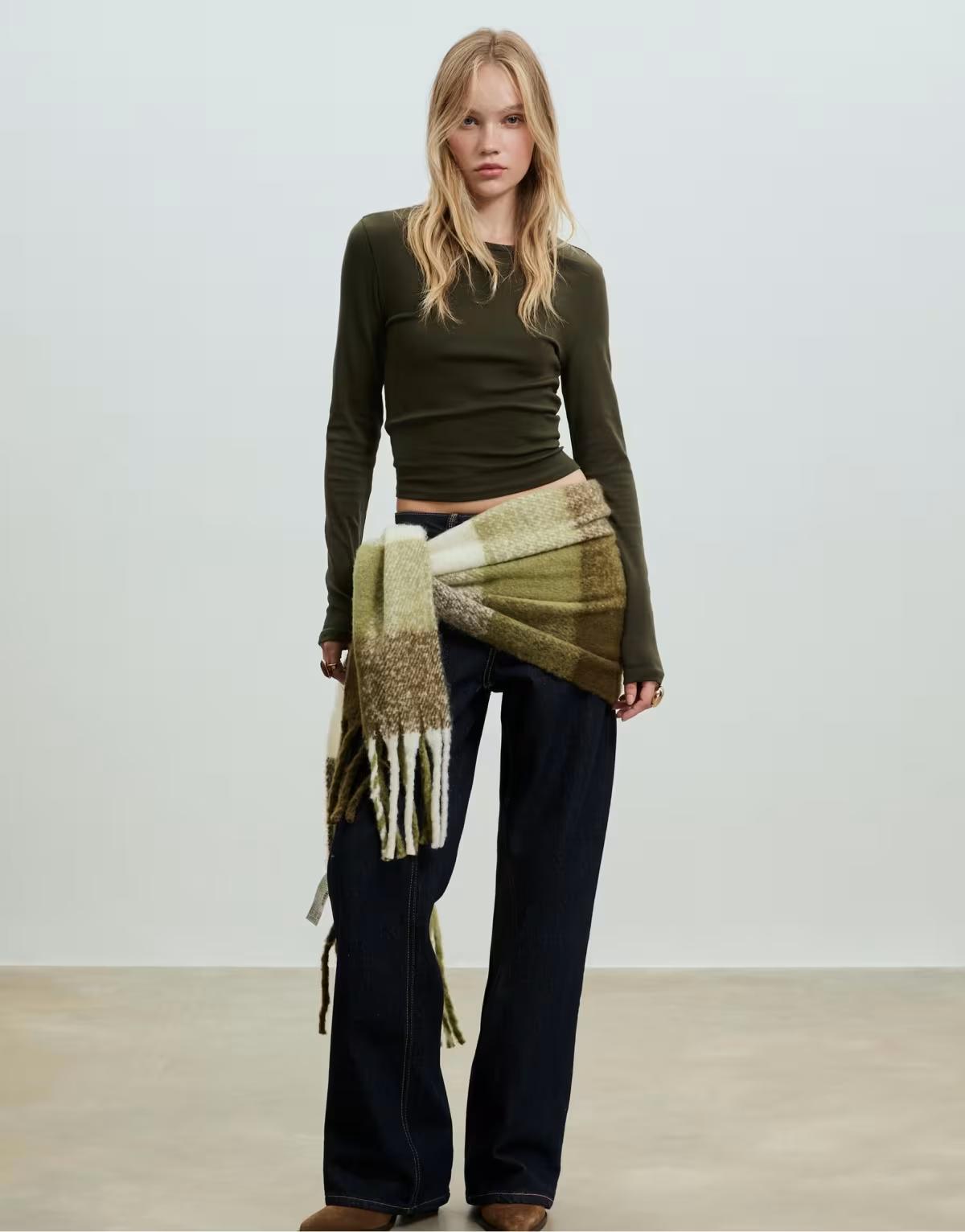 Stradivarius Checked scarf in khaki