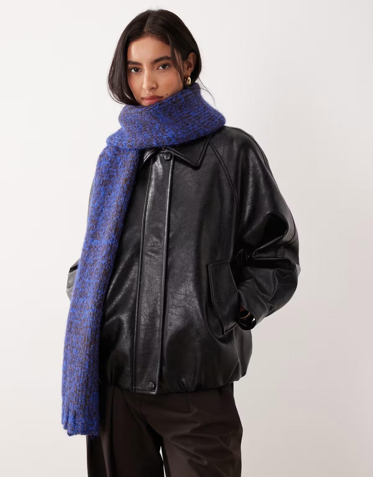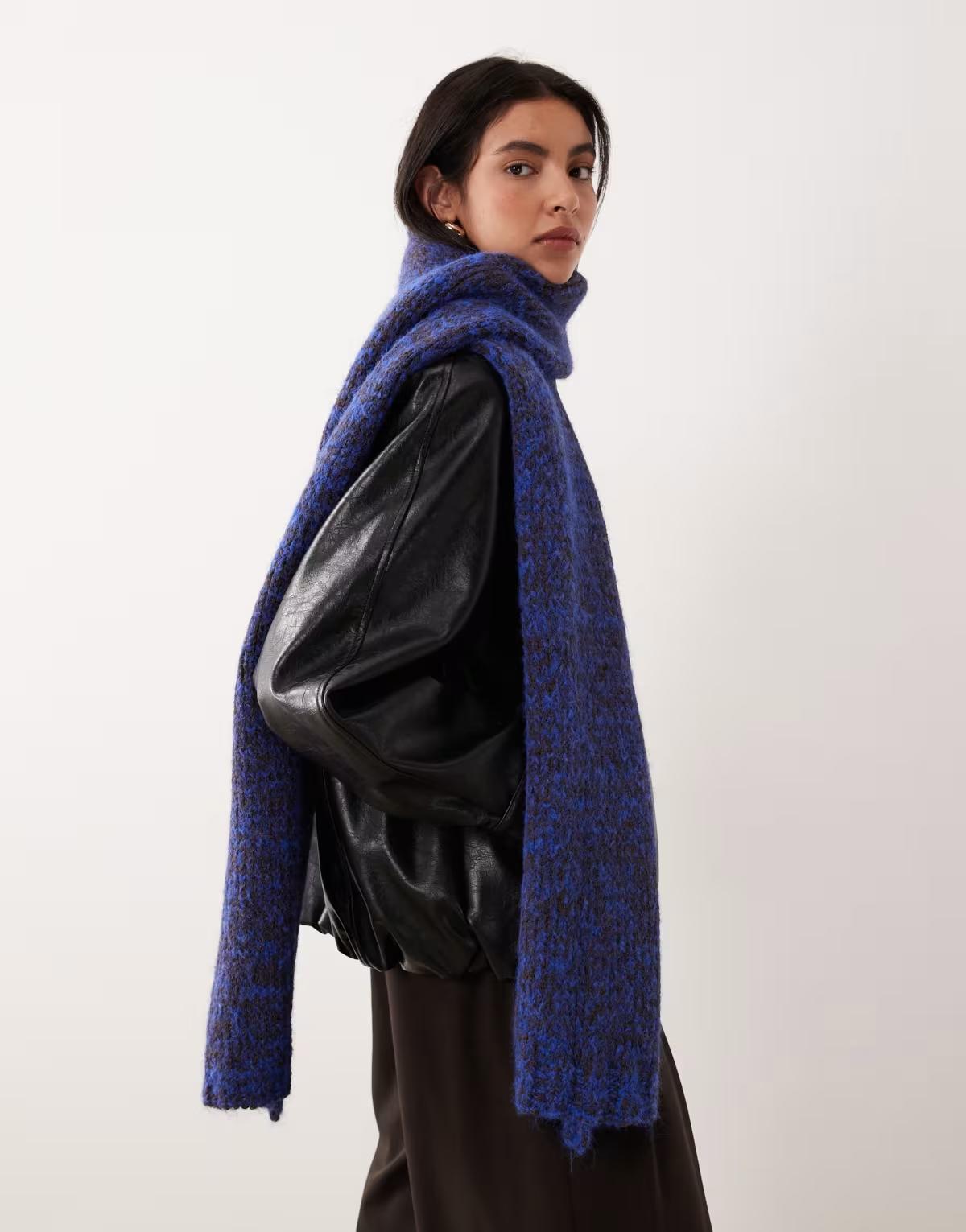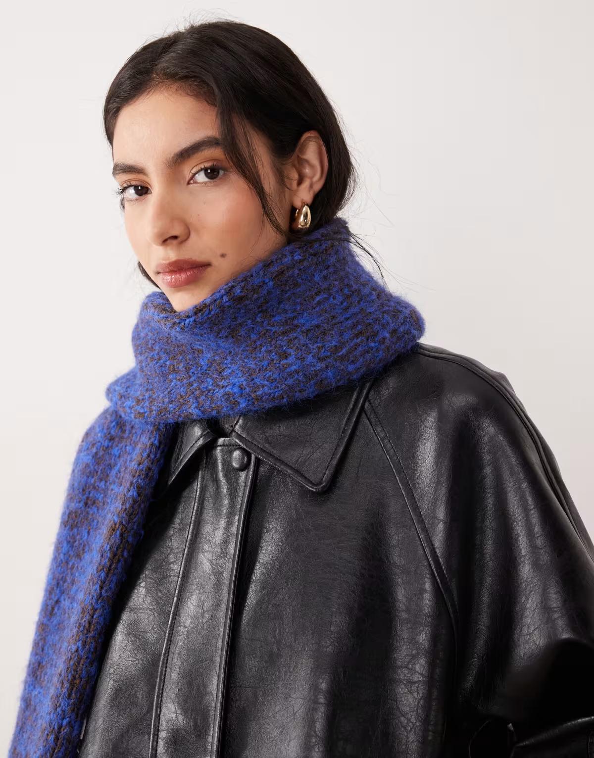 ASOS DESIGN space dye mixed yarn chunky knitted scarf in blue and brown