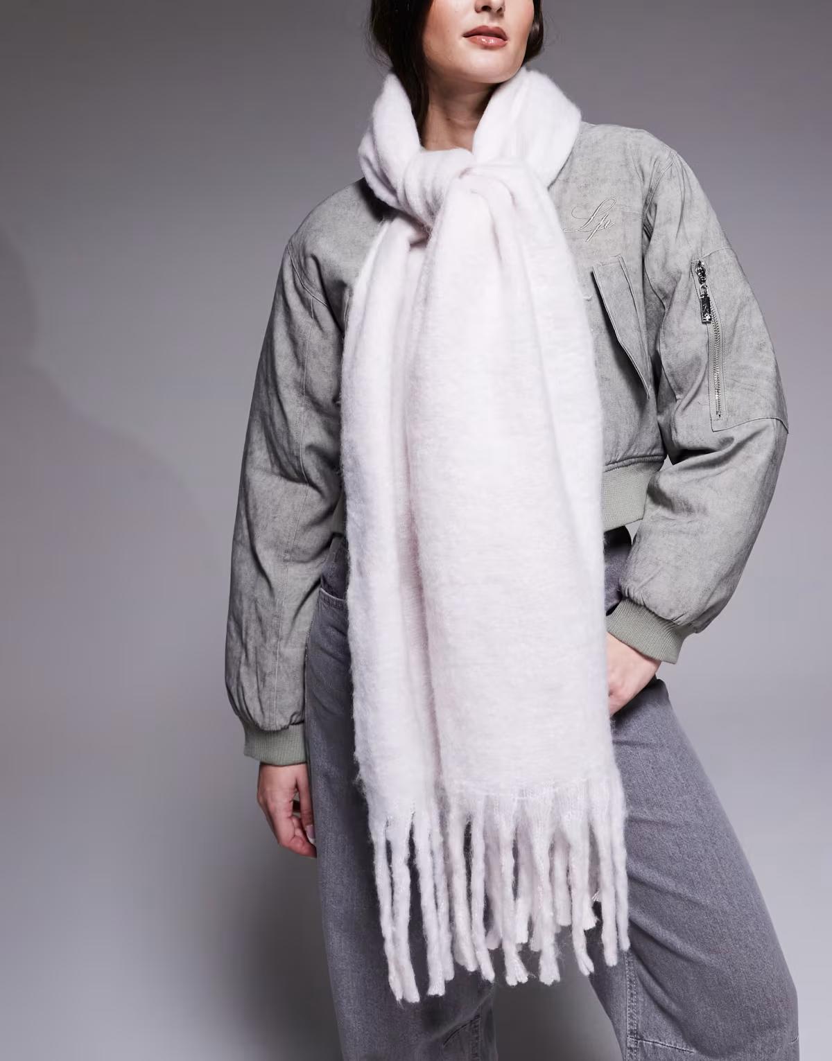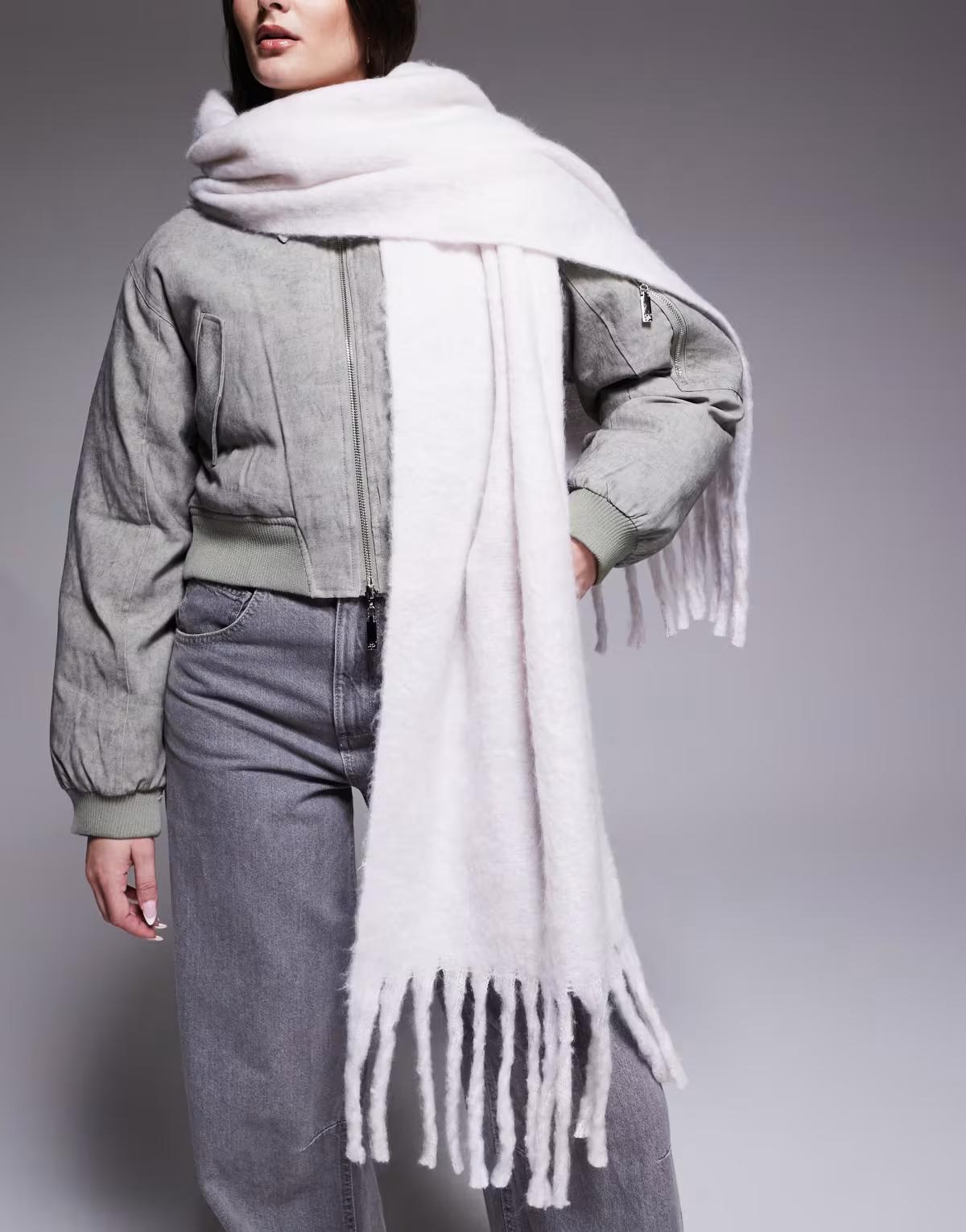 Kaiia exclusive super soft oversized fringed scarf in cream