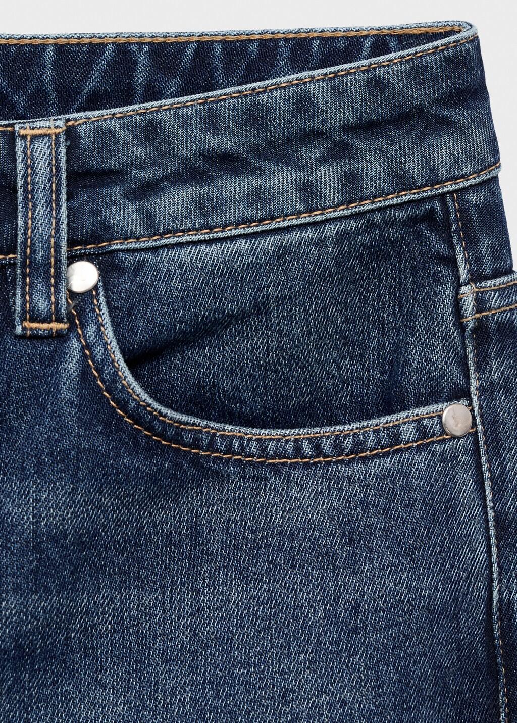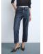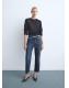 Tejido de algodón estilo tejano vaquero. Diseño largo. Diseño recto. Diseño crop. Tiro medio. Trabillas. Cinco bolsillos. Cierre delantero de cremallera y botón. Disponible Plus