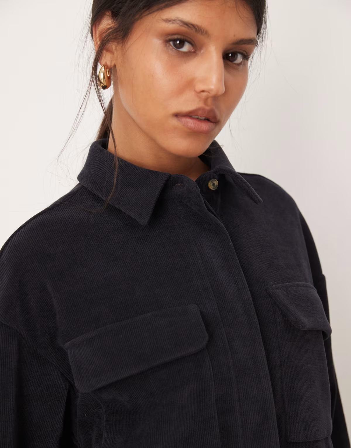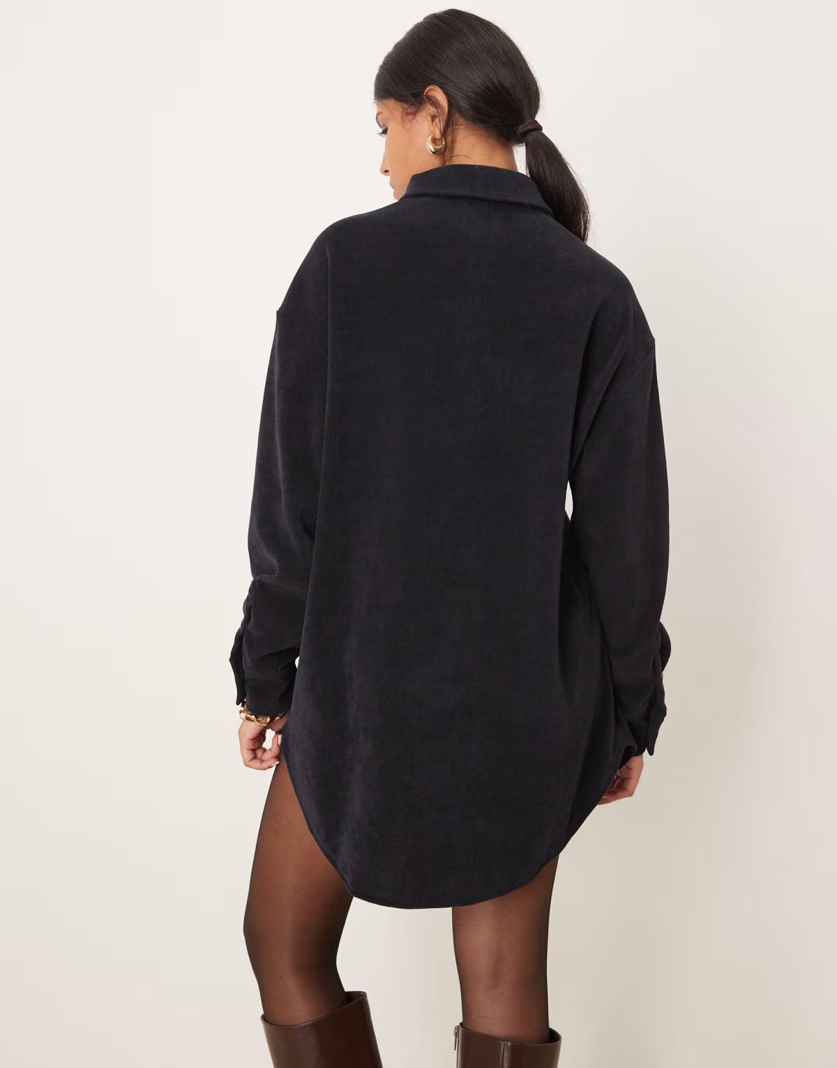 ASOS DESIGN cord utility shirt mini dress in navy