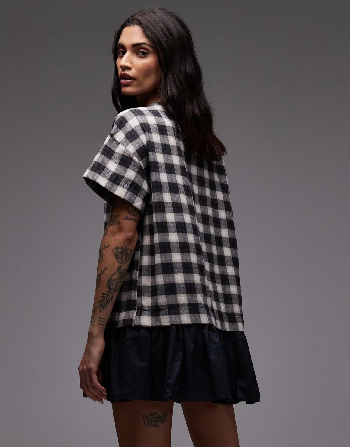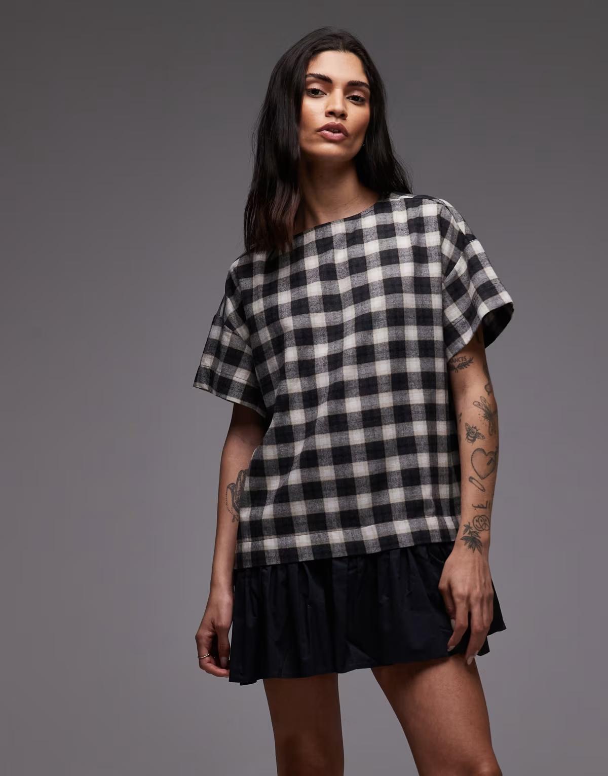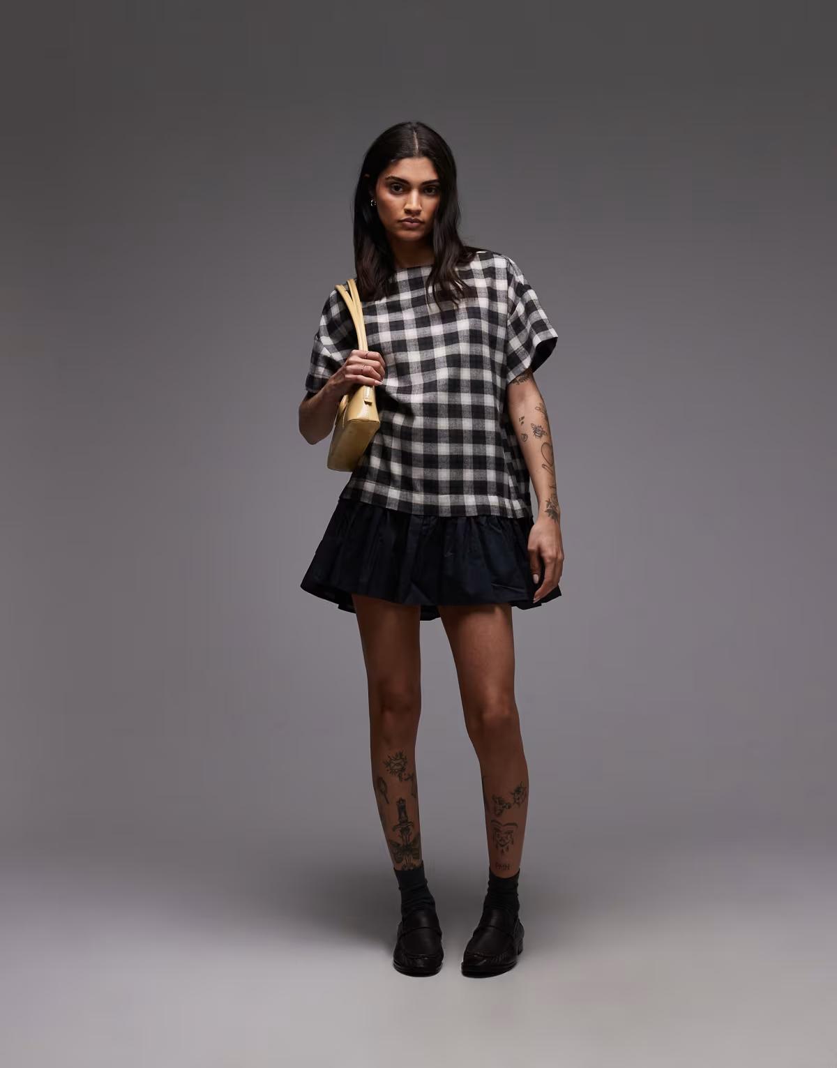 ASOS DESIGN cord hybrid t-shirt mini dress in mono check