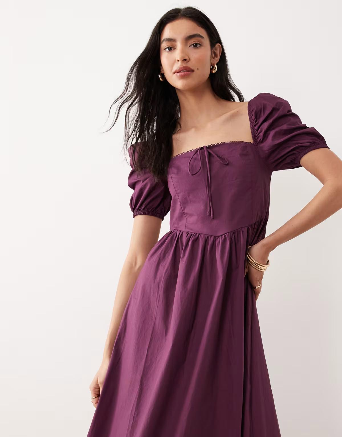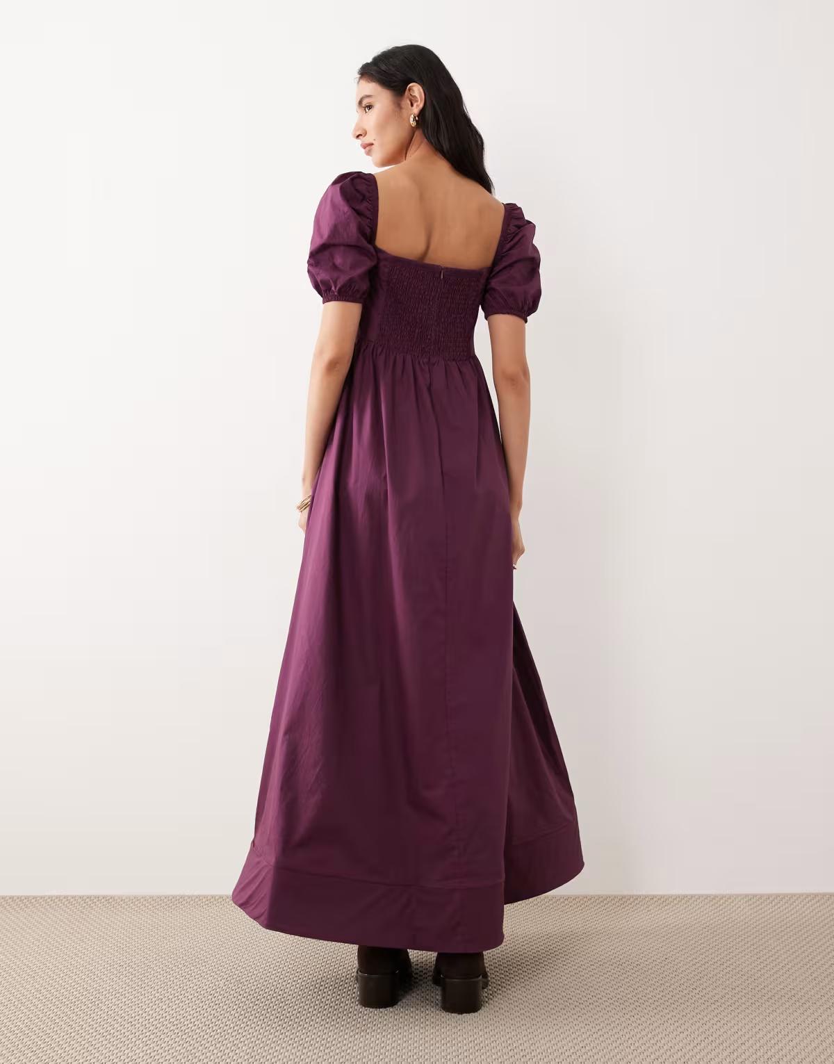 Glamorous square neck puff sleeve midaxi dress in deep purple