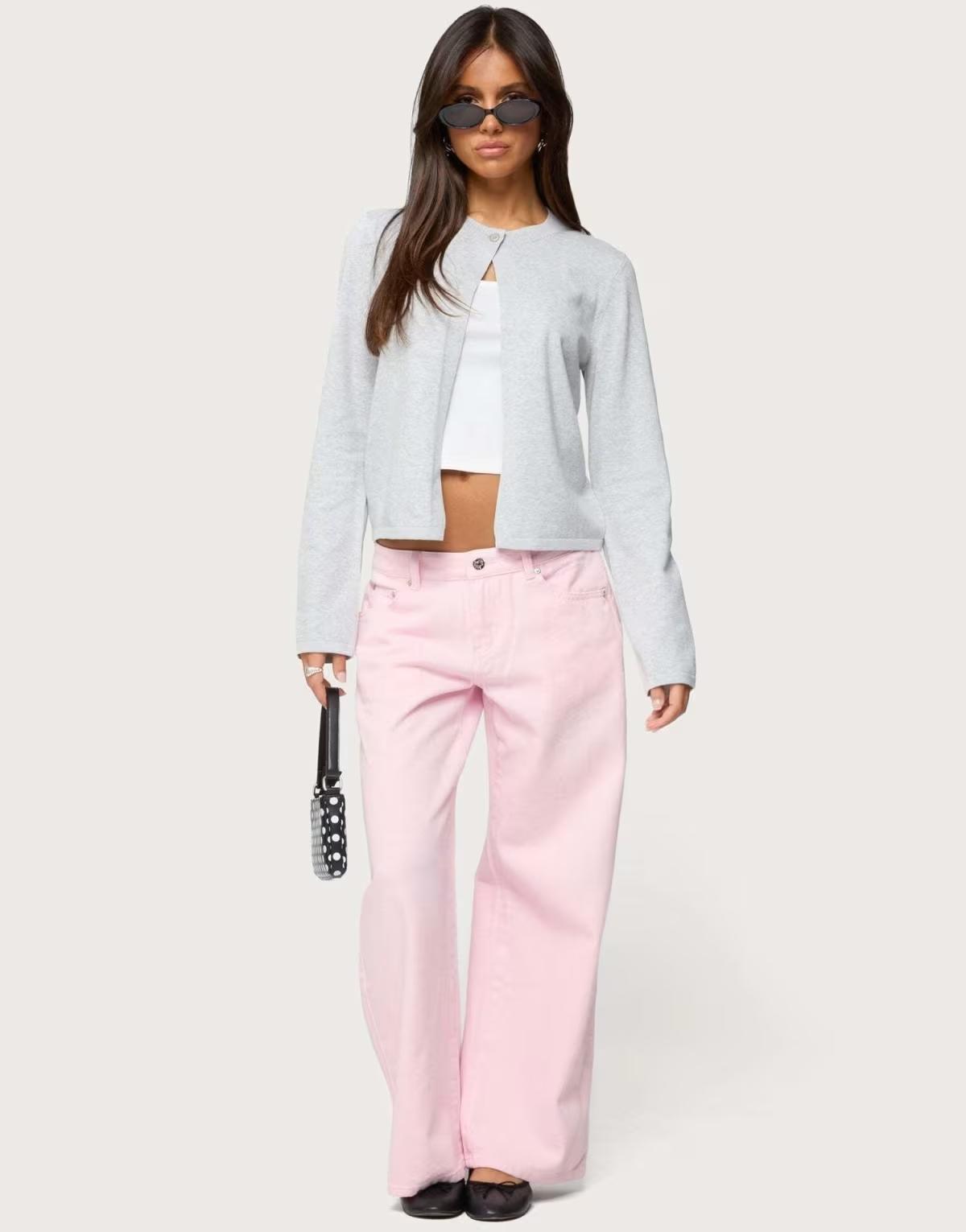 Edikted Jenie split front knit cardigan in gray melange