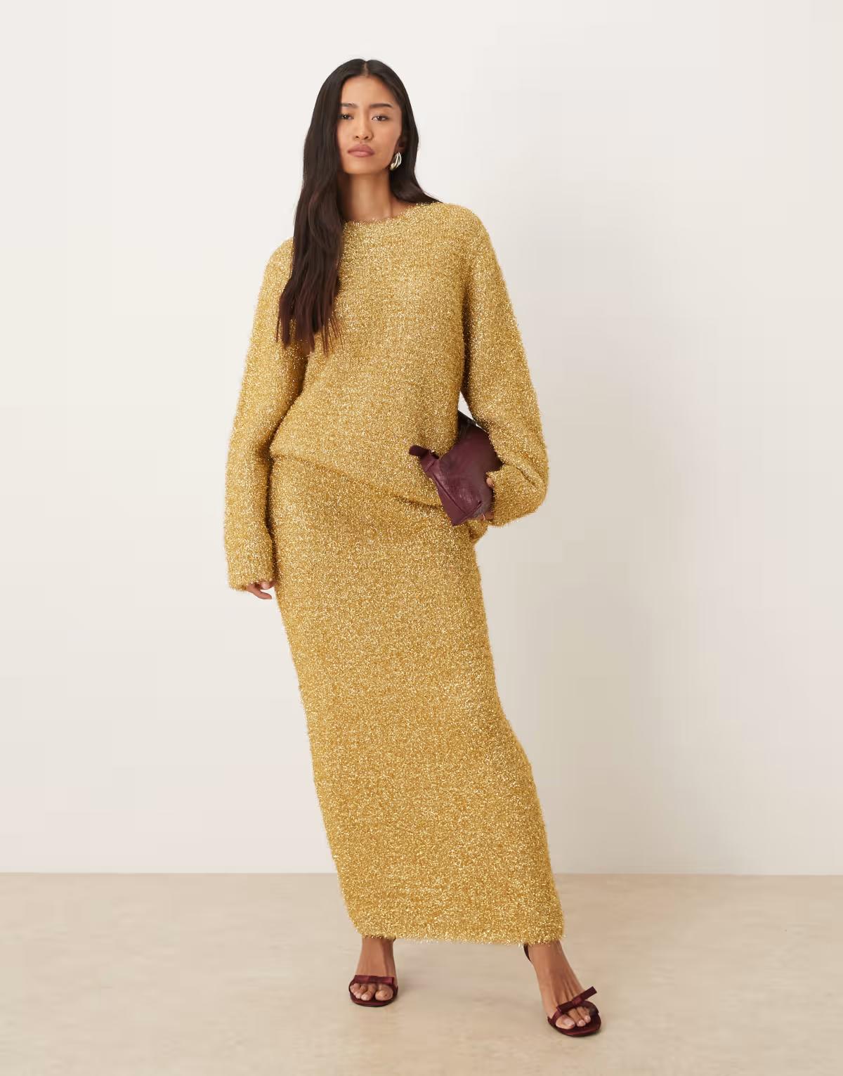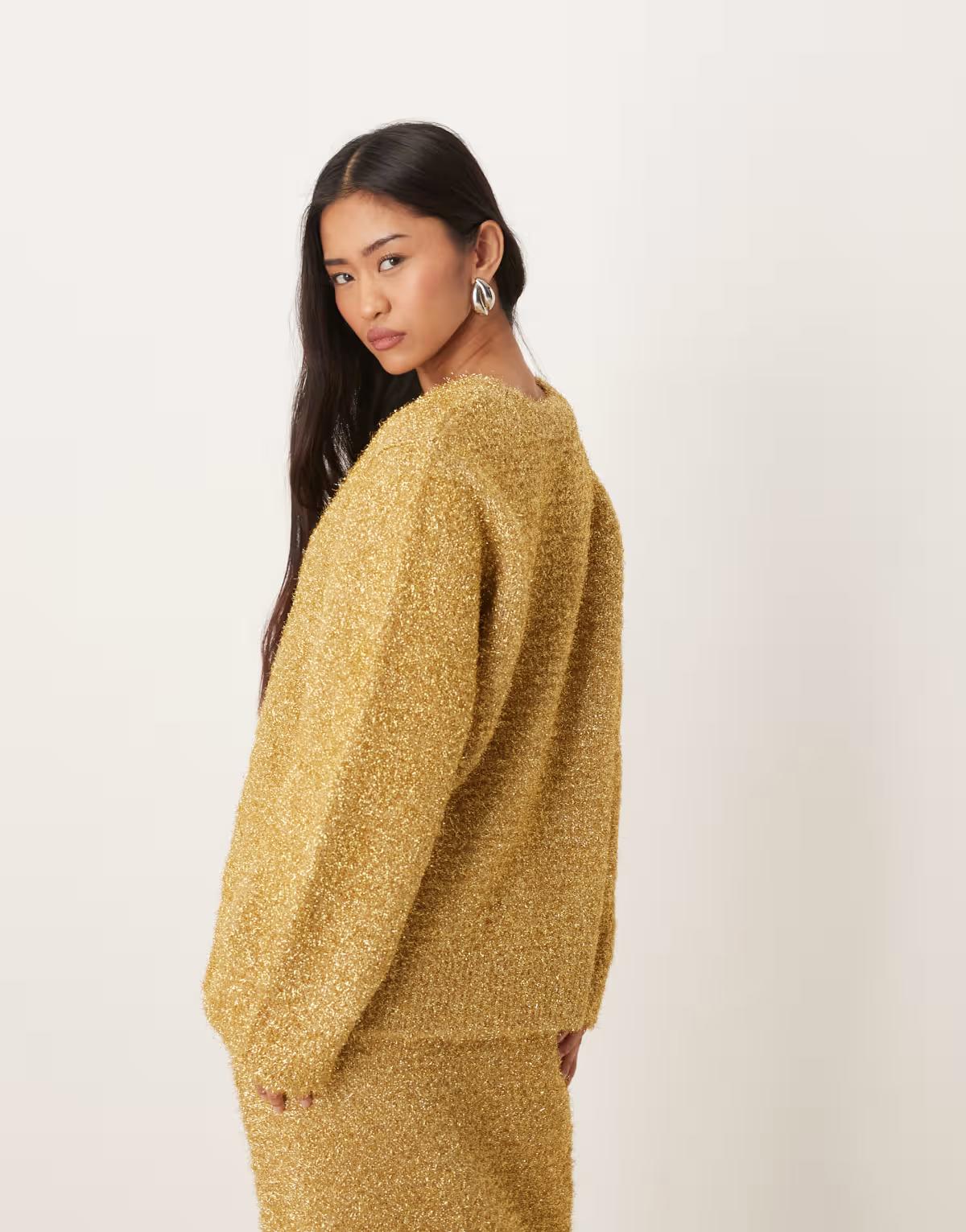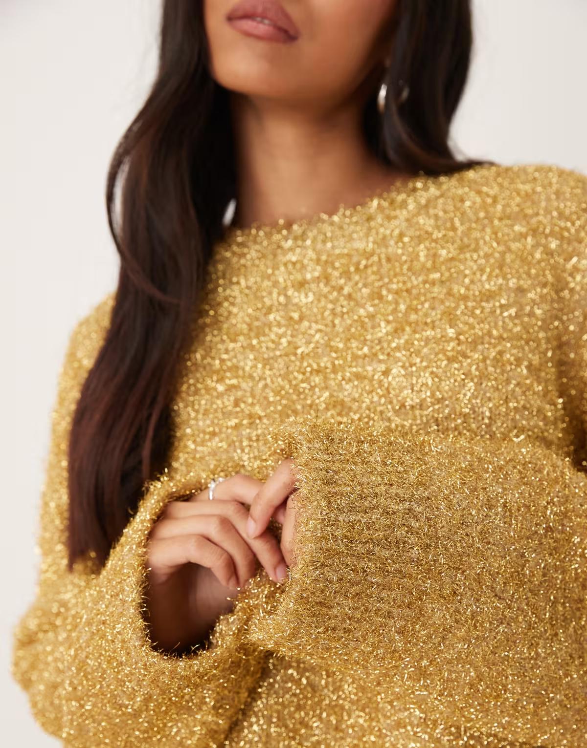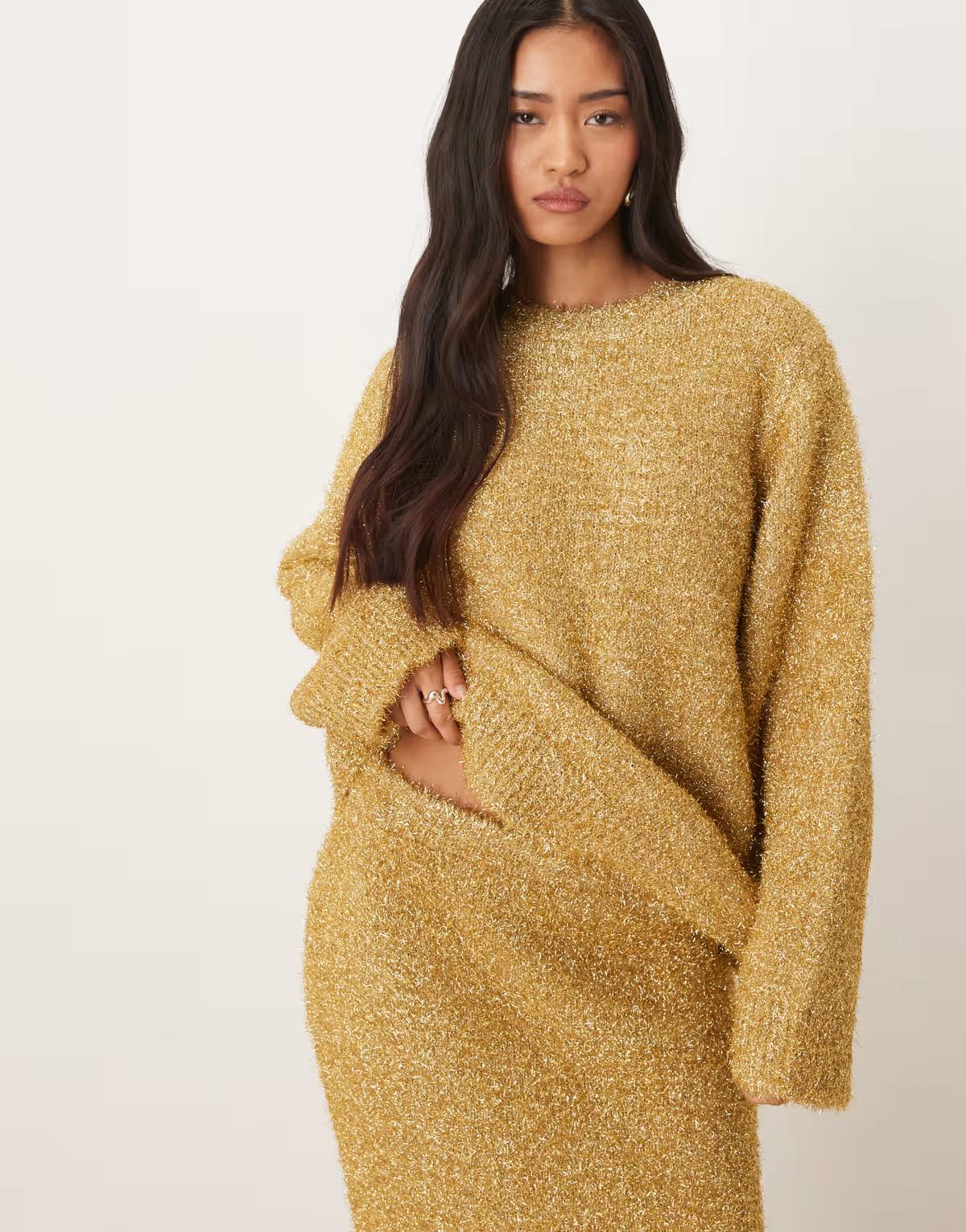 ASOS DESIGN co-ord tinsel oversized jumper in gold