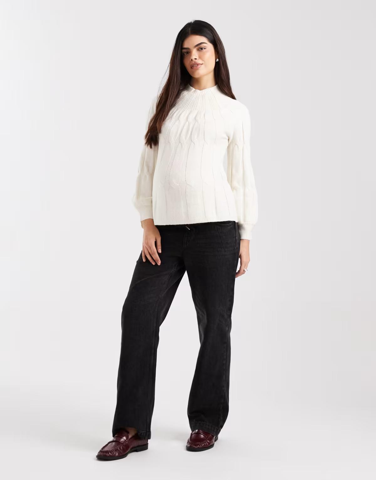 Vero Moda Maternity chunky cable knit high neck jumper in cream